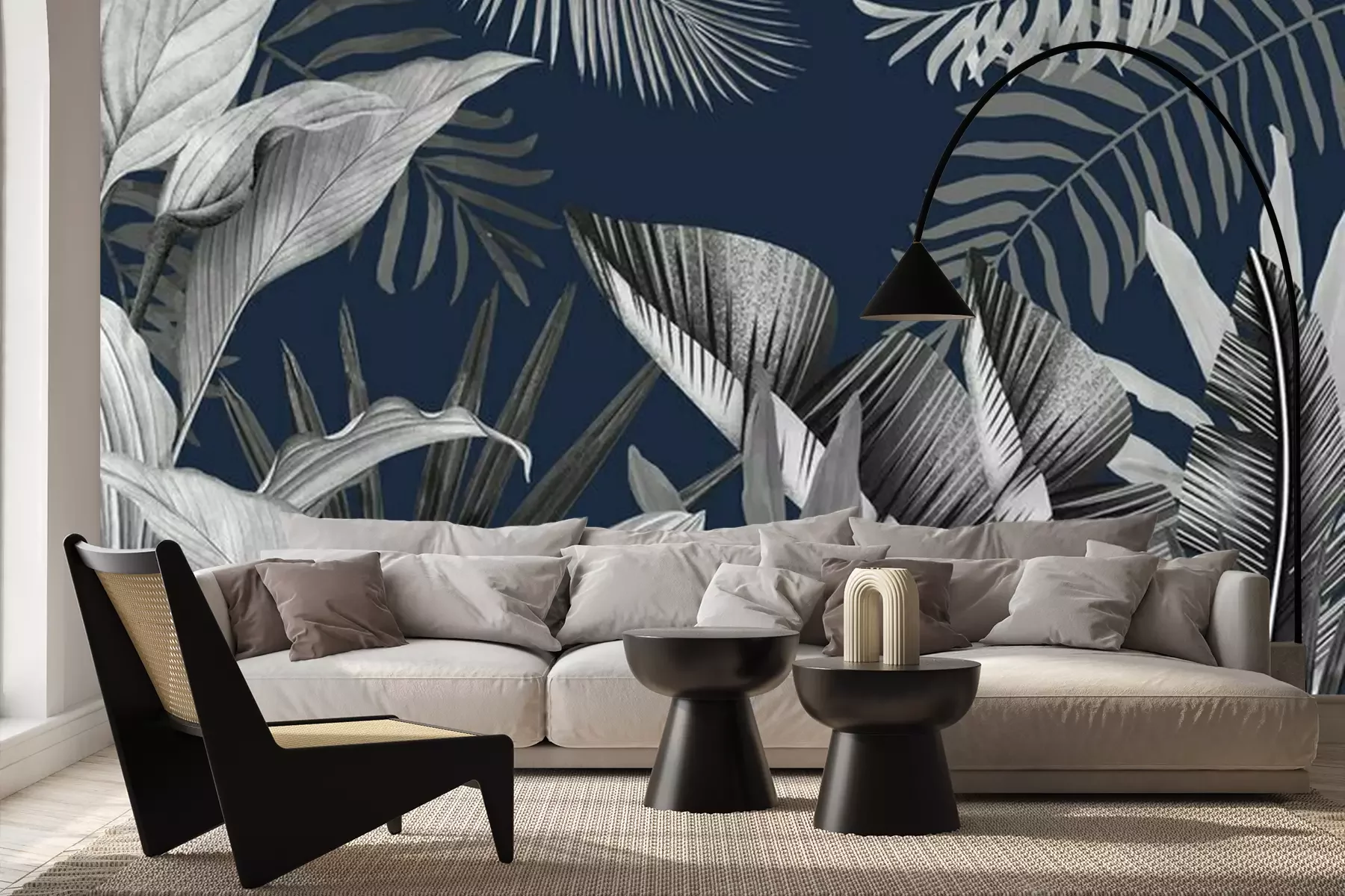 Die Beschreibung des von uns ausgewählten Produkts beginnen wir mit der Beantwortung der folgenden Frage: In wie vielen verschiedenen Arrangements bewährt sich eine solche Fototapete? Tropische Blätter sind, was viele überraschen mag, ein wirklich universelles Motiv. Sie können sowohl in eleganten als auch in minimalistischen Interieurs verwendet werden. Dies lässt sich am einfachsten anhand einiger Beispiele verdeutlichen. Aufgrund der gedämpften Farbgebung, die auf Schwarz und Grautönen basiert, ist dies ein hervorragender Deko-Akzent für ein Zimmer im industriellen Stil. Sowohl in Kombination mit einer Backstein- als auch mit einer Betonwand präsentiert sich hervorragend eine solche Fototapete. Tropische Blätter lockern den asketischen Charakter der Einrichtung auf und verleihen ihr ein gemütlicheres Aussehen. Eine völlig andere Lösung ist ein Zimmer im Glamour-Stil. In einem Raum mit vergoldeten Accessoires und einem Sofa in Malachitgrün, Kobaltblau oder Purpurrot wird das dunkle Pflanzenmotiv zu einer schönen Krönung der gesamten Einrichtung. In einem minimalistisch eingerichteten Interieur, wo eine solche Deko die Hauptrolle spielt, wird eine Fototapete Dschungel zu einer schnellen Möglichkeit, den Raum zu bereichern, dem etwas fehlte. Dies ist ein Motiv, das sich perfekt für das Wohnzimmer eignet. Es passt auch zum Schlafzimmer. So wird ein Raum, der zum Entspannen dient, mit Pflanzen gefüllt. Ein weiteres Beispiel ist das Home-Office. Hier bewährt sich hervorragend eine solche Fototapete. Tropische Blätter werden zum idealen Hintergrund für die tägliche Arbeit und schaffen günstige Bedingungen für die Konzentration. Das Muster ist weder monoton noch zu auffällig, um abzulenken. Dank der hohen Qualität unserer Produkte können sie sogar in so anspruchsvollen Bereichen wie dem Badezimmer verwendet werden. Ein entspannendes Bad inmitten üppiger Pflanzen? Die Lösung ist eine Fototapete! Tropische Blätter können die Wand schmücken, an der sich das Waschbecken befindet oder die Badewanne steht. Wie man sieht, handelt es sich um ein Muster mit wirklich vielen Anwendungsmöglichkeiten. Da die Natur nie aus der Mode kommt, kann man sicher sein, dass dies eine Lösung für viele Jahre ist, und zwar nicht nur für die eigenen vier Wände. Auch in Geschäftsräumen bewährt sich eine solche Fototapete. Dschungel kann eine Hotellobby, ein Restaurant, einen Schönheitssalon und sogar eine Yogaschule schmücken.