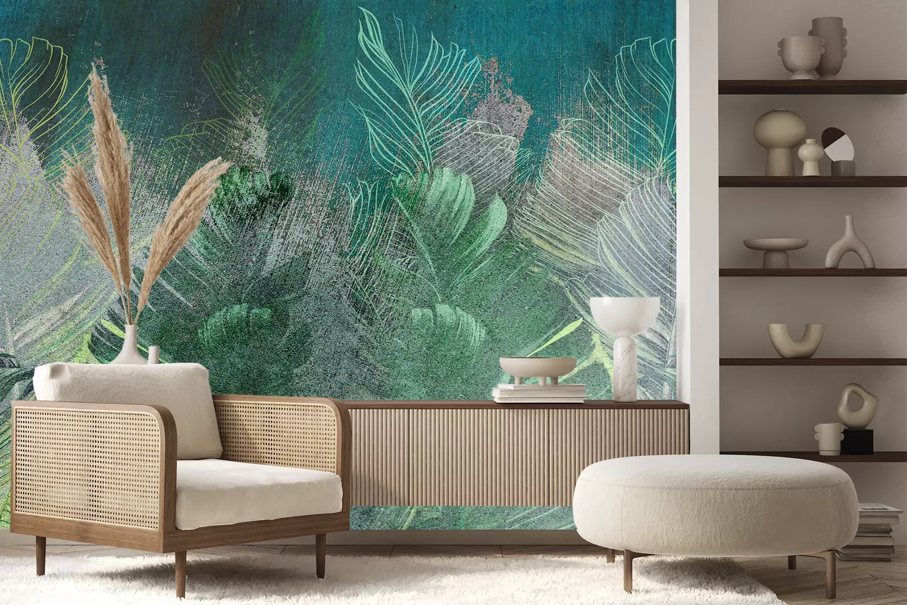 Abstrakte tropische Blätter auf BetonFototapete