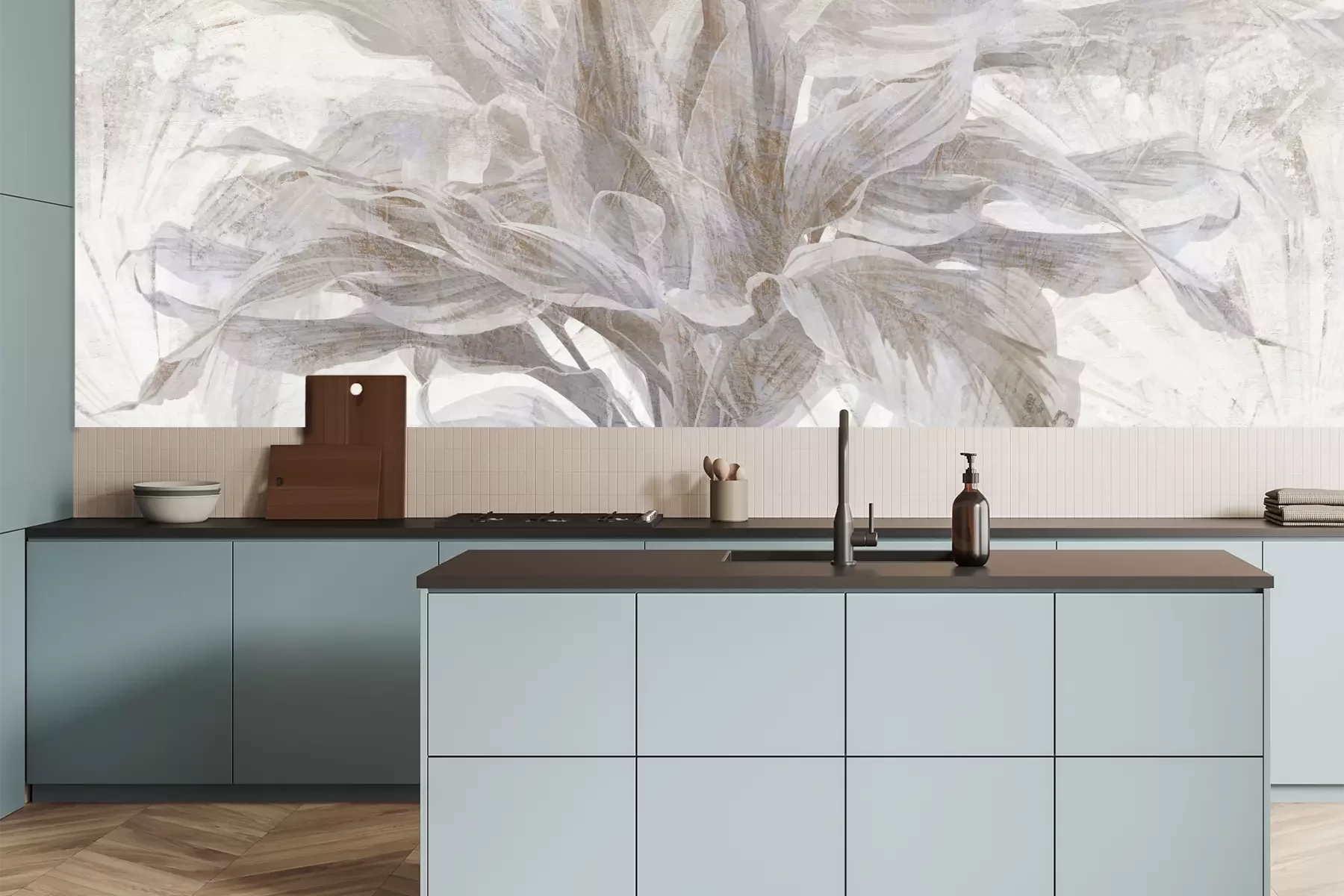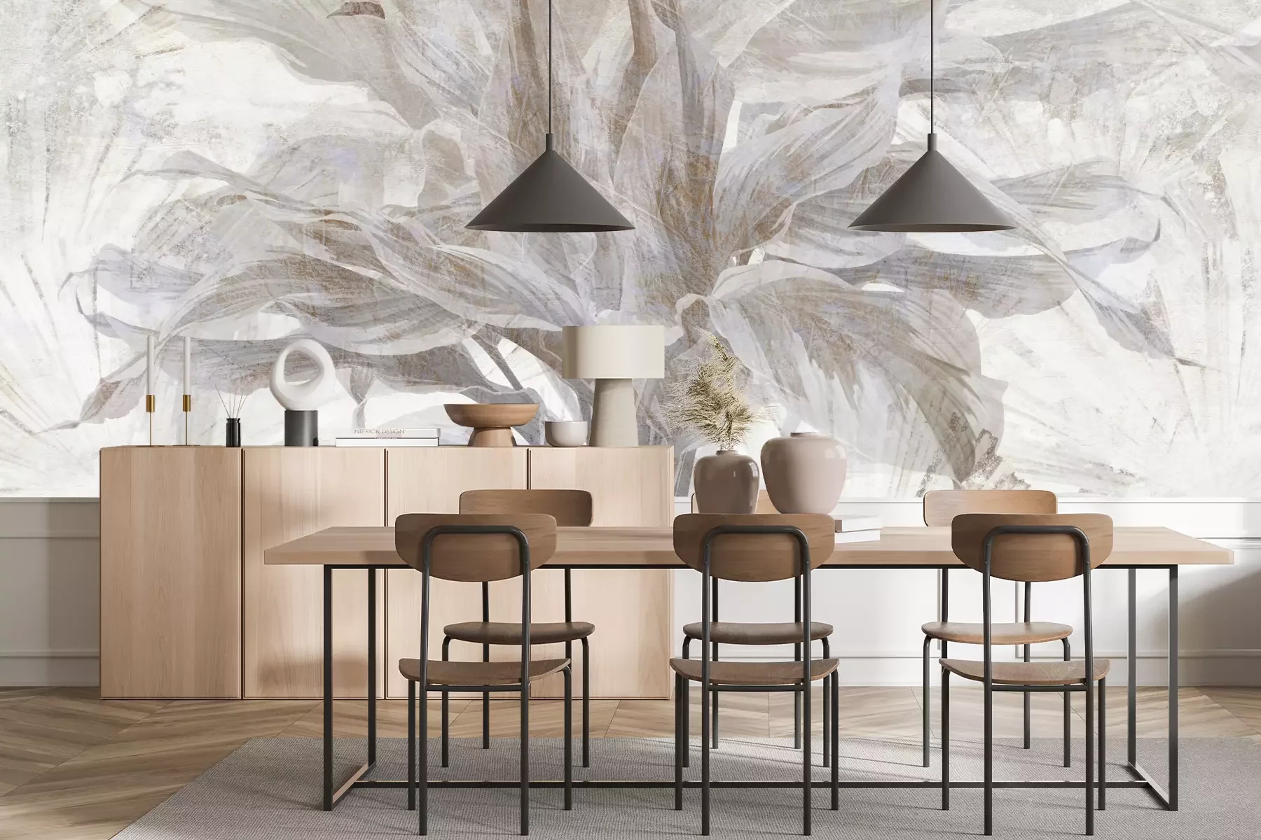 Das Material Premium+ besteht aus einer strukturierten Vinyl-Oberschicht und einem Trägermaterial (Vlies) mit einer Grammatur von 255 g/m², das kleine Unebenheiten der Wand zuverlässig kaschiert. Die feine Sandstruktur verleiht der Oberfläche eine luxuriöse Haptik, während das halbmatte Finish die Tiefe der Farben betont. Das Material ist dampfdurchlässig – so kann diese Fototapete auch in Küchen und Badezimmern eingesetzt werden. Die maximale Breite einer Tapetenbahn beträgt 100 cm. Bei größeren Abmessungen besteht die Fototapete aus mehreren gleich großen Bahnen. Der Kleber wird direkt auf die Wand aufgetragen, und die Fototapete wird auf Stoß angebracht, was für einen ästhetischen Effekt ohne sichtbare Fugen sorgt. Die Oberfläche ist pflegeleicht und kann bei Bedarf sanft mit einem feuchten Tuch abgewischt werden.