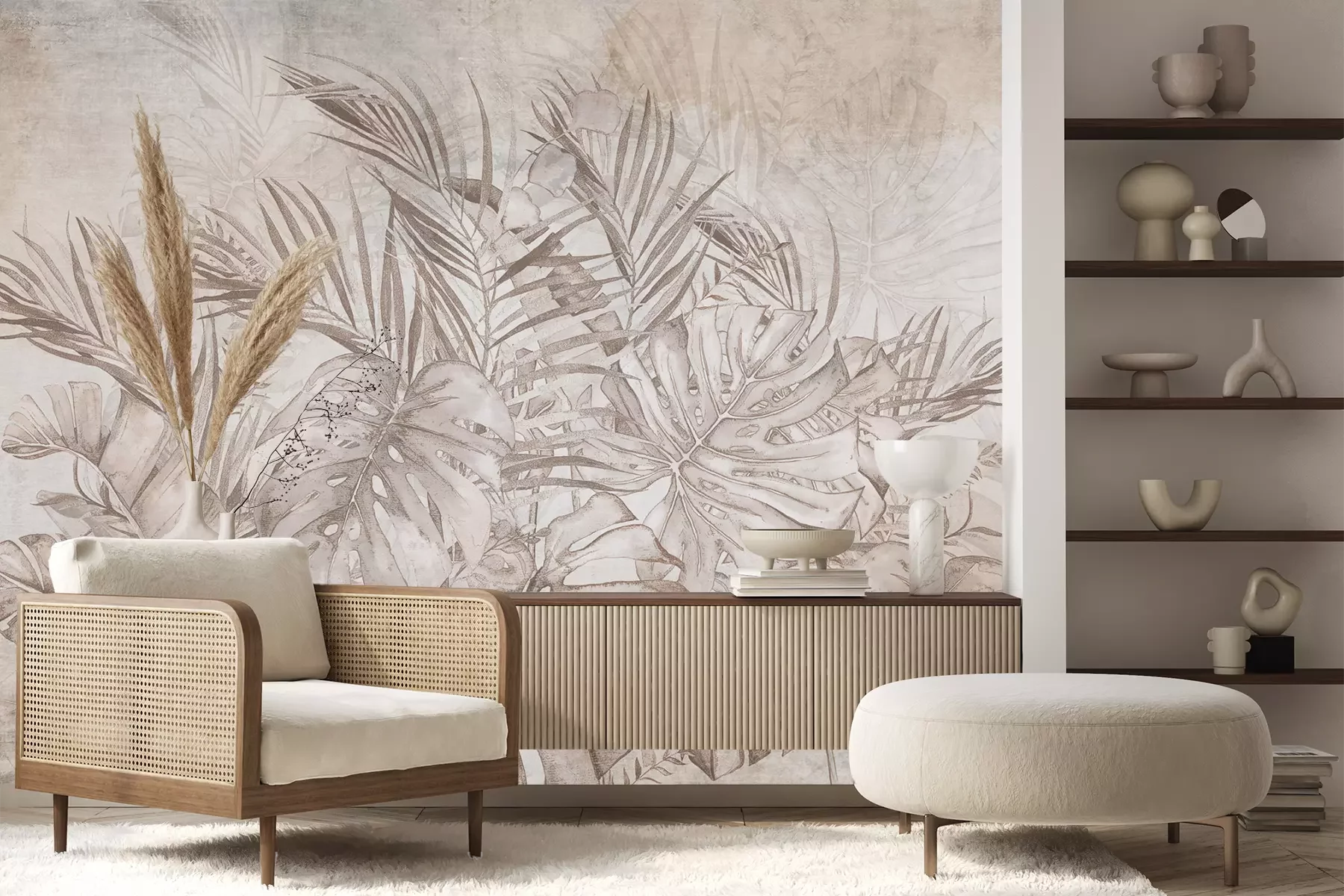 Das Material Premium+ besteht aus einer strukturierten Vinyl-Oberschicht und einem Trägermaterial (Vlies) mit einer Grammatur von 255 g/m², das kleine Unebenheiten der Wand zuverlässig kaschiert. Die feine Sandstruktur verleiht der Oberfläche eine luxuriöse Haptik, während das halbmatte Finish die Tiefe der Farben betont. Das Material ist dampfdurchlässig – so kann diese Fototapete auch in Küchen und Badezimmern eingesetzt werden. Die maximale Breite einer Tapetenbahn beträgt 100 cm. Bei größeren Abmessungen besteht die Fototapete aus mehreren gleich großen Bahnen. Der Kleber wird direkt auf die Wand aufgetragen, und die Fototapete wird auf Stoß angebracht, was für einen ästhetischen Effekt ohne sichtbare Fugen sorgt. Die Oberfläche ist pflegeleicht und kann bei Bedarf sanft mit einem feuchten Tuch abgewischt werden.