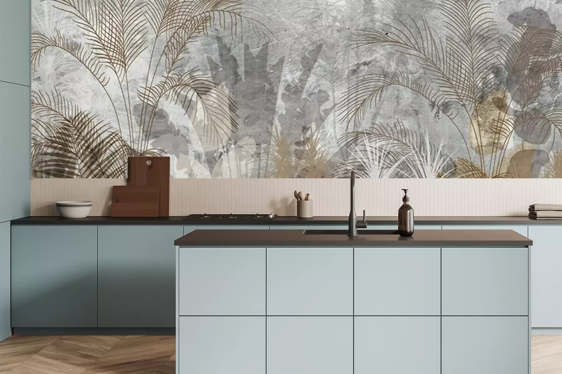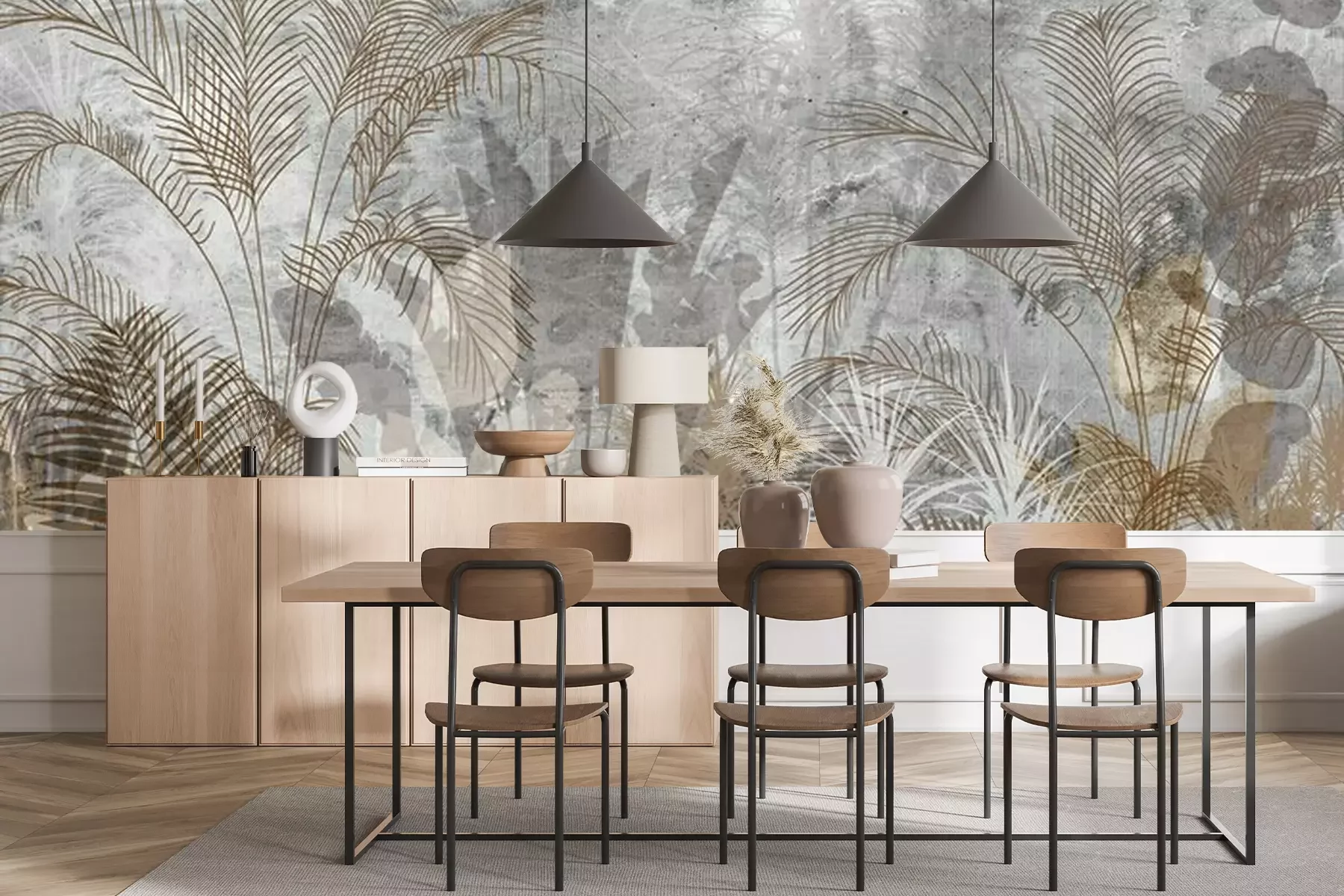 Tropische Bäume und Blätter im nebligen WaldFototapete