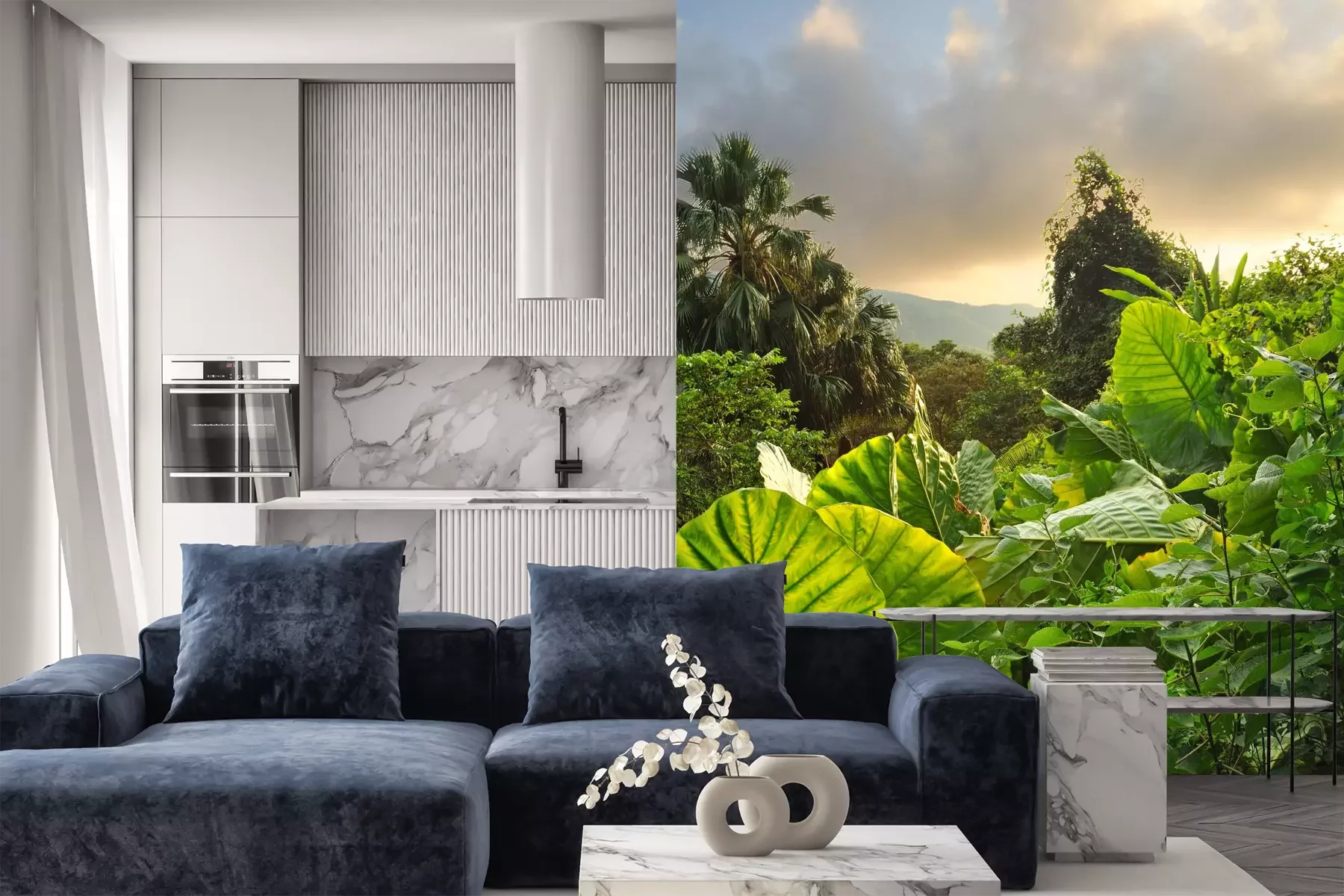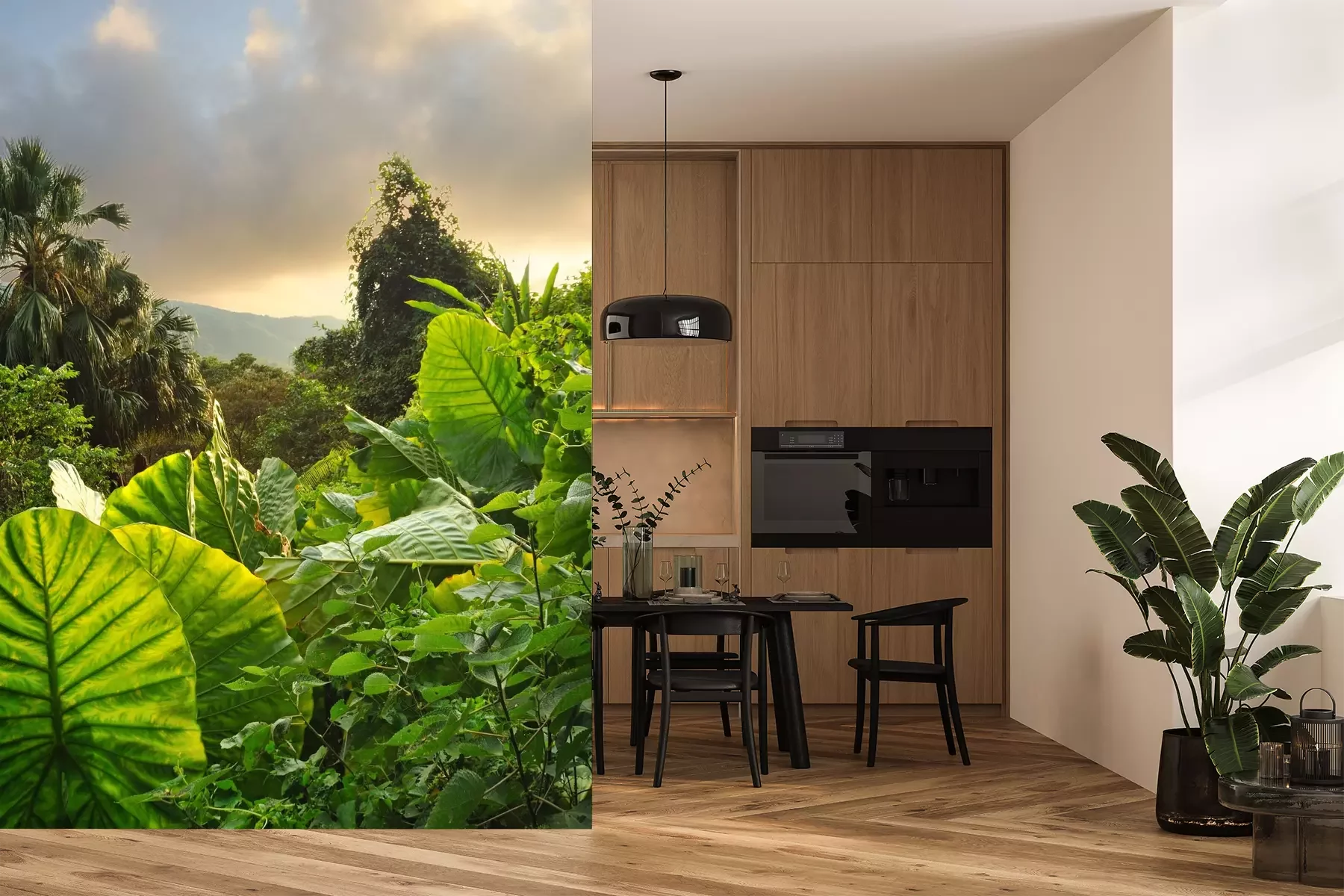 Das Material Premium+ besteht aus einer strukturierten Vinyl-Oberschicht und einem Trägermaterial (Vlies) mit einer Grammatur von 255 g/m², das kleine Unebenheiten der Wand zuverlässig kaschiert. Die feine Sandstruktur verleiht der Oberfläche eine luxuriöse Haptik, während das halbmatte Finish die Tiefe der Farben betont. Das Material ist dampfdurchlässig – so kann diese Fototapete auch in Küchen und Badezimmern eingesetzt werden. Die maximale Breite einer Tapetenbahn beträgt 100 cm. Bei größeren Abmessungen besteht die Fototapete aus mehreren gleich großen Bahnen. Der Kleber wird direkt auf die Wand aufgetragen, und die Fototapete wird auf Stoß angebracht, was für einen ästhetischen Effekt ohne sichtbare Fugen sorgt. Die Oberfläche ist pflegeleicht und kann bei Bedarf sanft mit einem feuchten Tuch abgewischt werden.