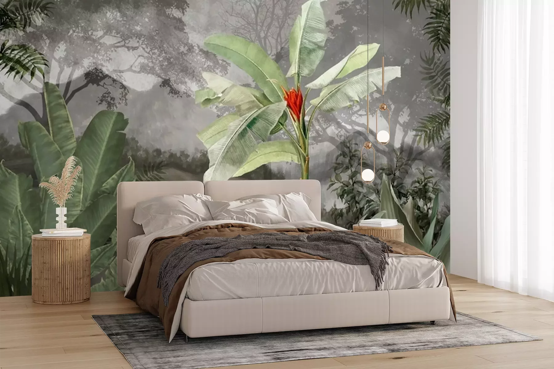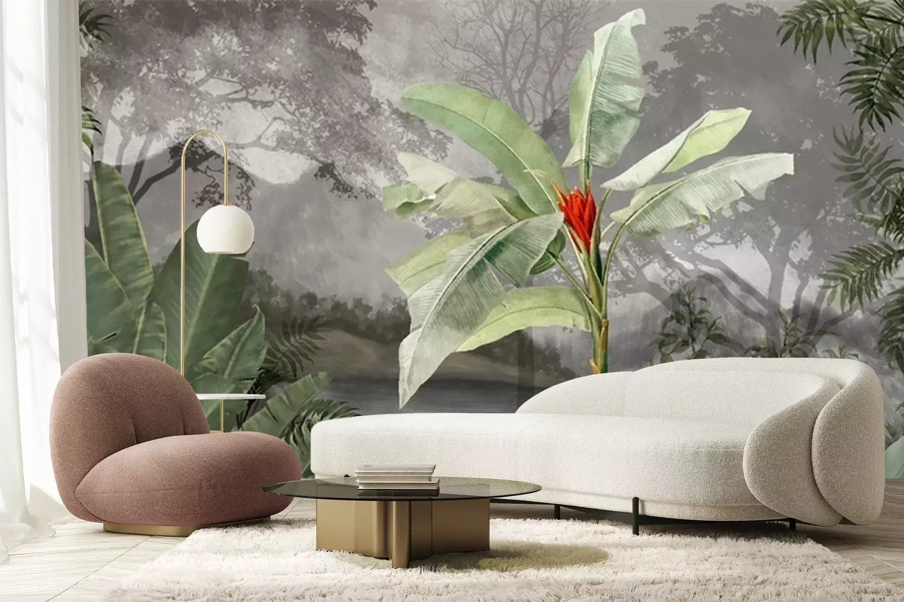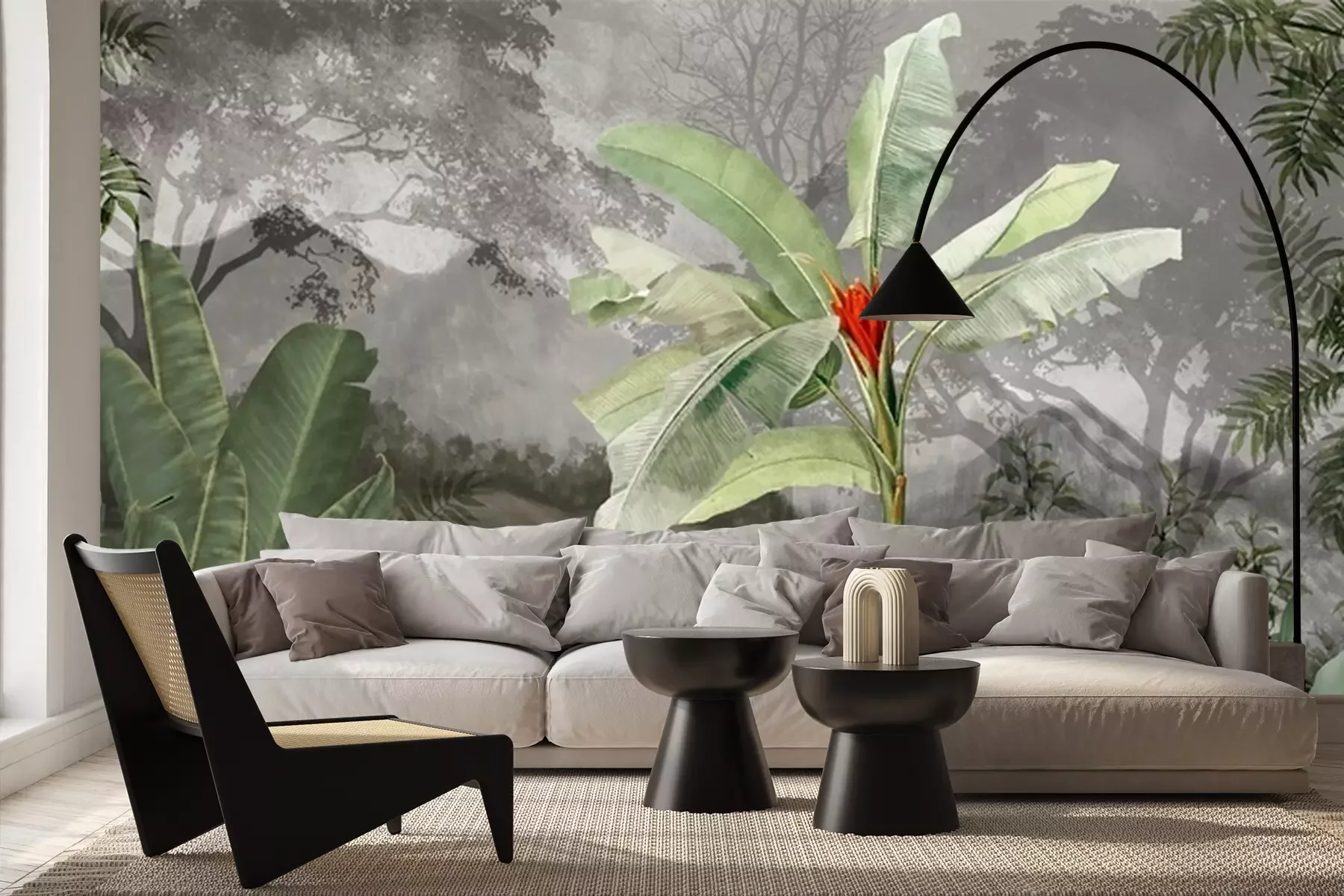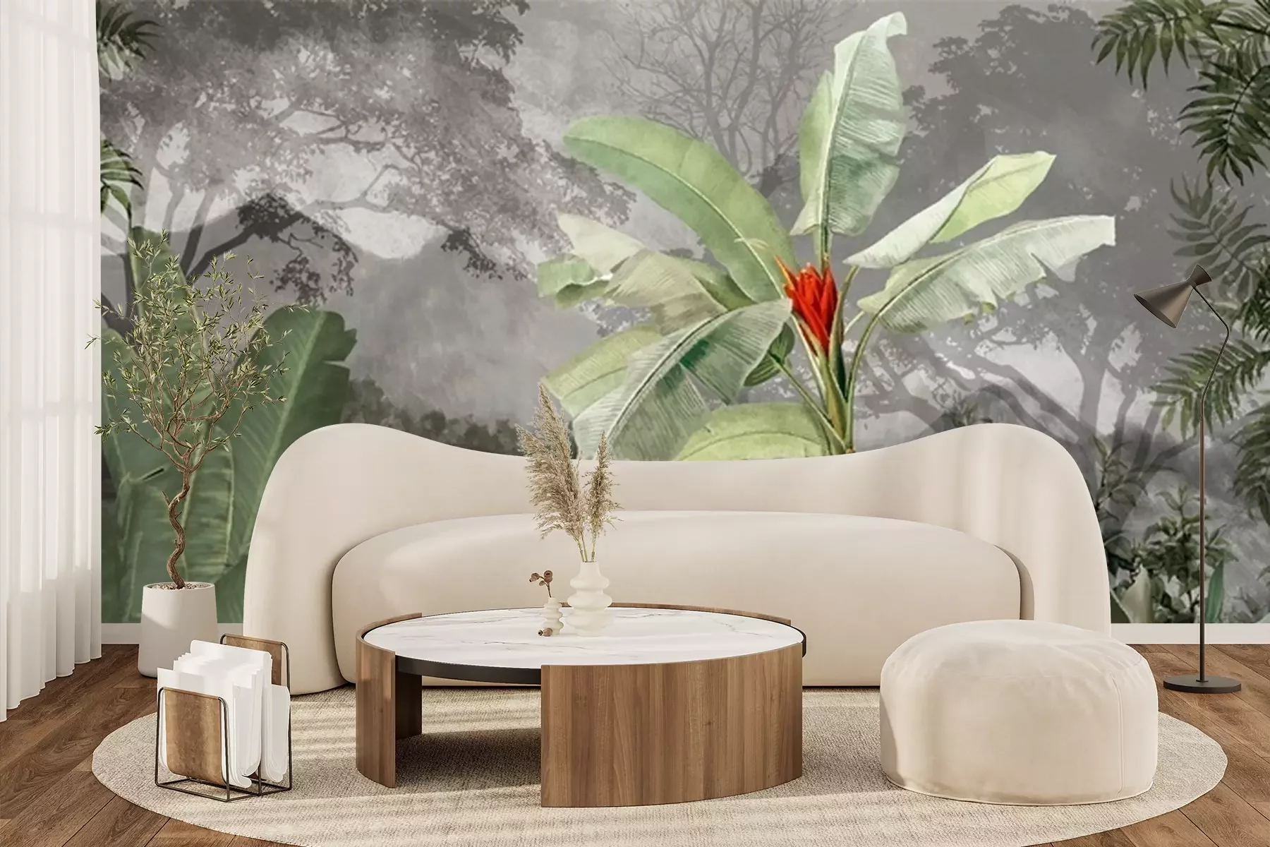 Fototapete Tropische grüne Vegetation auf grauem Hintergrund