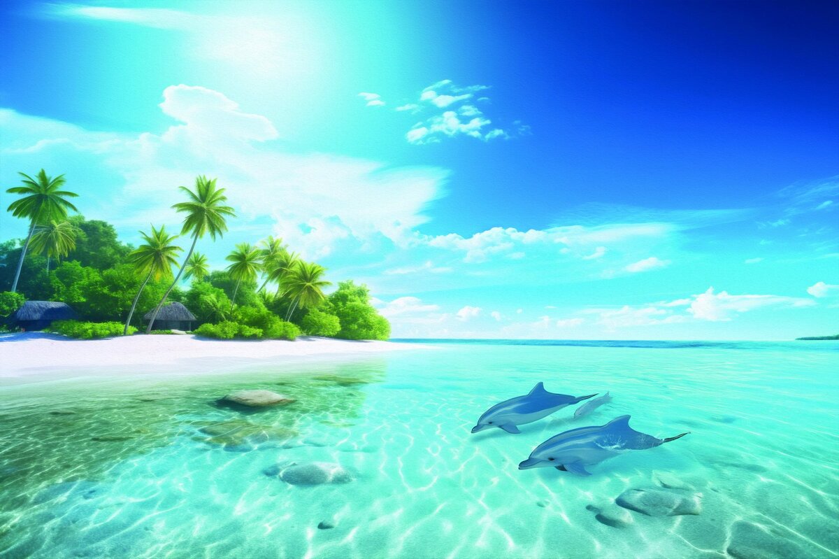 Fototapete: Tropische Insel mit Delfinen
