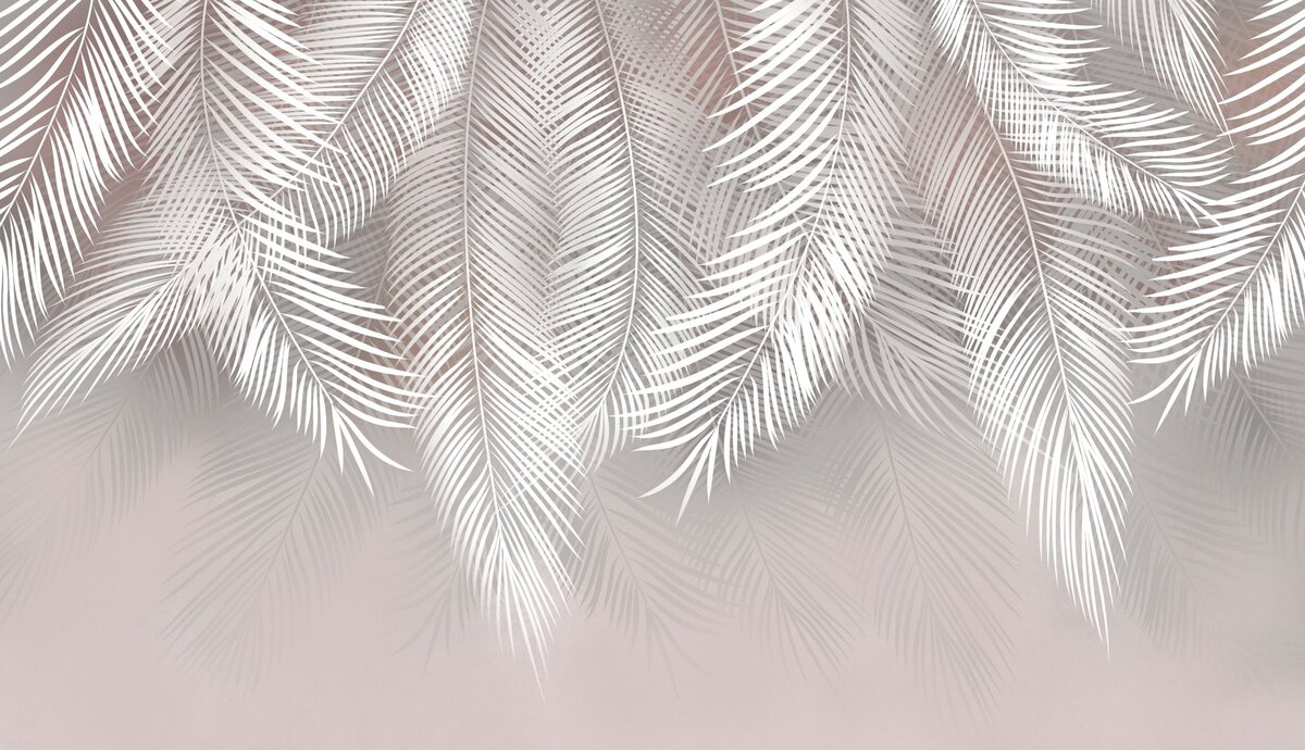 Fototapete: Tropische Palmblätter hängen von oben auf einem pastellfarbenen Hintergrund