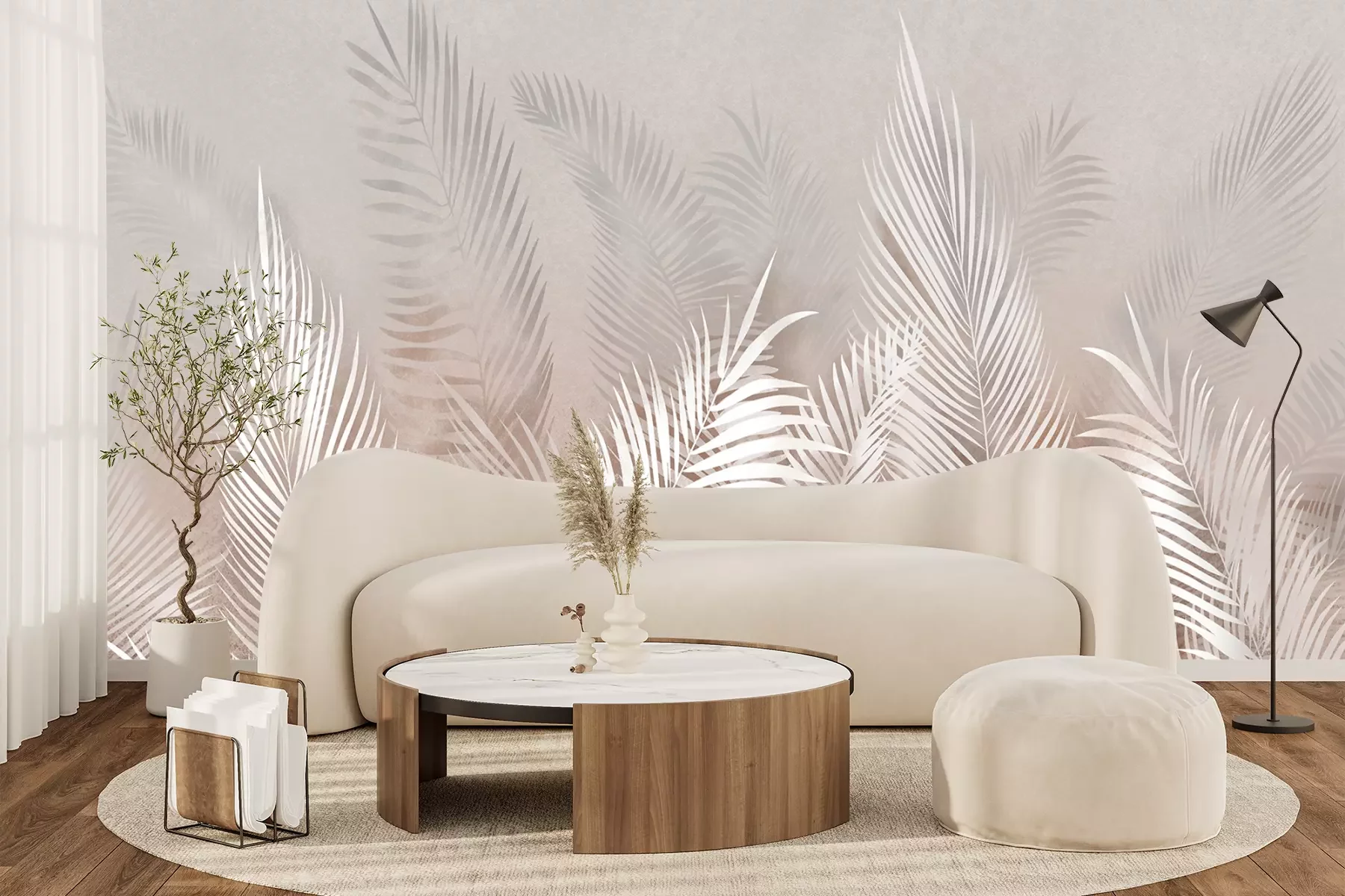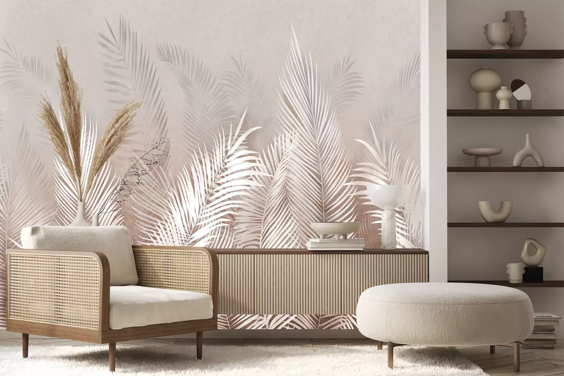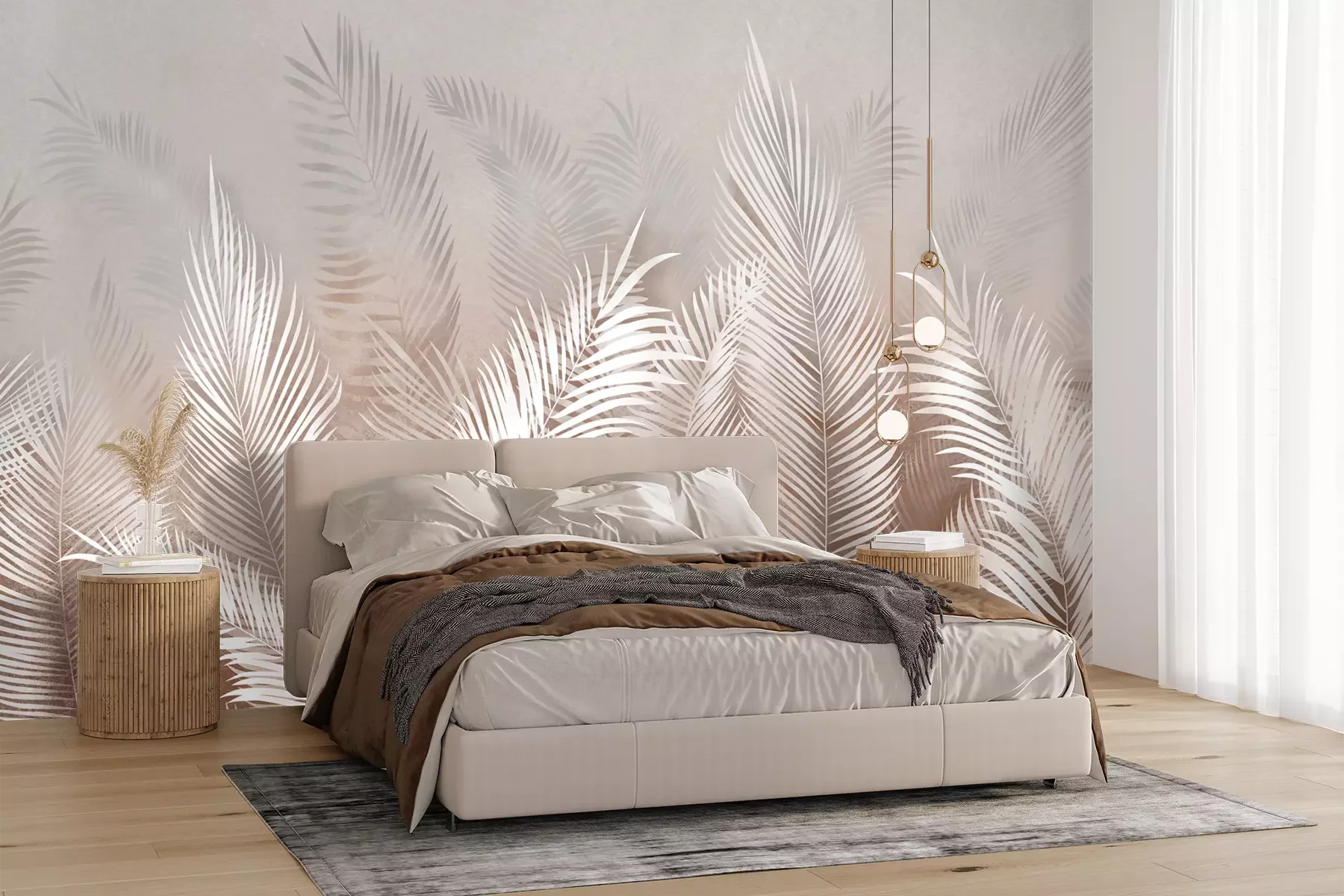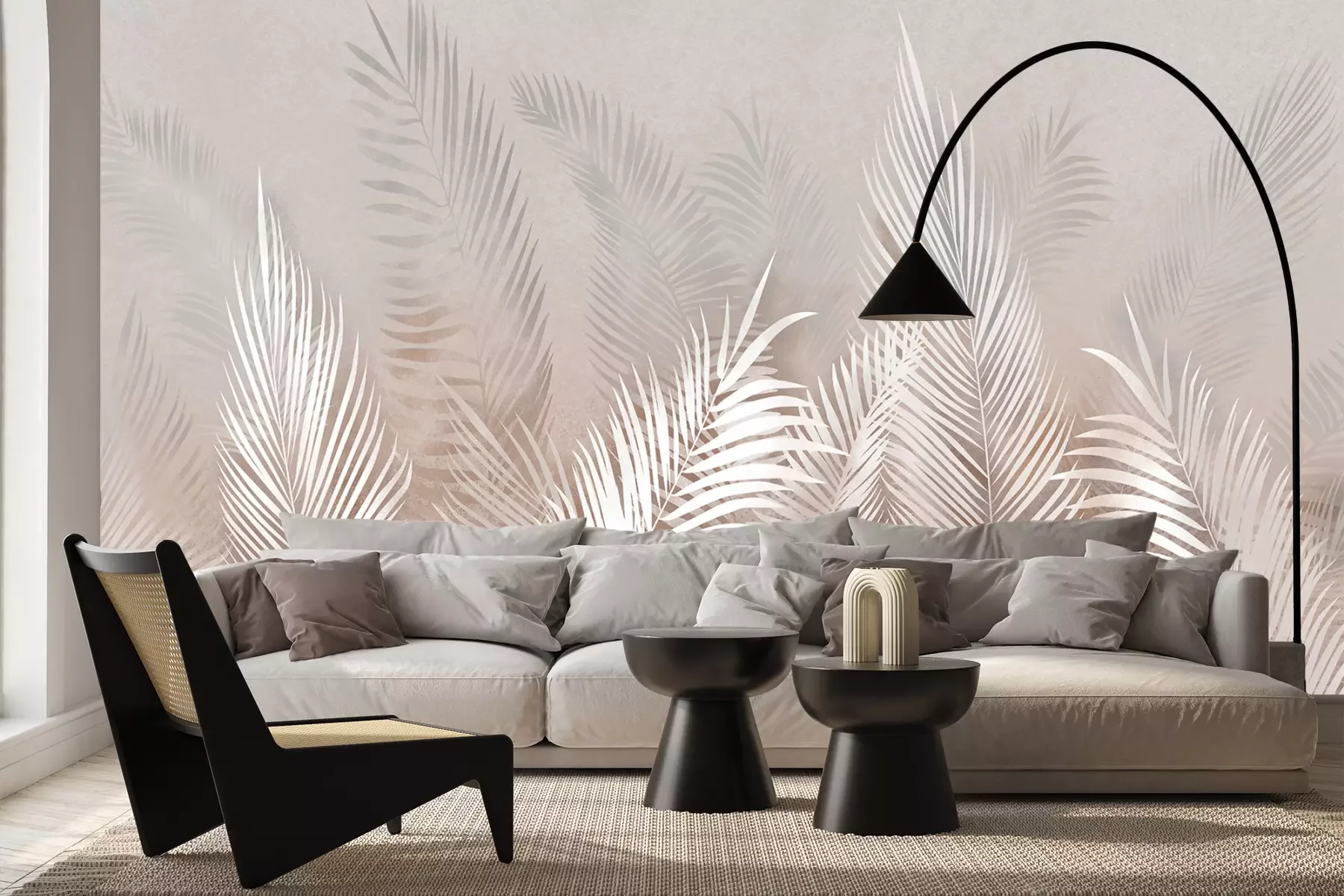 Grau-weiße tropische Blätter auf BetongrundWenn Sie von einem Interieur träumen, das zugleich elegant und gemütlich ist, wählen Sie die hier präsentierte beigefarbene Fototapete. Palmenblätter bringen einen Hauch von Natur in Ihre Einrichtung, schaffen eine beruhigende, harmonische Atmosphäre und werden zu einem zeitlosen Dekorationselement. Das subtile Muster erdrückt auch kleine Räume nicht und verändert ihren Charakter im Handumdrehen. Ein zusätzlicher Vorteil dieses Designs ist die räumliche Wirkung unserer Fototapete. Tropische Blätter in 3D-Perspektive verleihen dem Raum Tiefe und lassen ihn größer erscheinen, als er tatsächlich ist – ein einfacher Trick mit spektakulärem Ergebnis. Pflanzliche Motive sind äußerst vielseitig. So lässt sich unsere Deko in nahezu jeden Wohnbereich integrieren. Diese Fototapete tropische Blätter eignet sich hervorragend für das Wohn- und Schlafzimmer, das Esszimmer und den Flur sowie für die Küche und das Badezimmer. Die hervorragende Qualität unserer Materialien garantiert, dass die Bahnen unempfindlich gegenüber mechanischen Beschädigungen und Feuchtigkeit sind – auch nach vielen Jahren wirkt sich das nicht negativ auf das Aussehen der Dekoration aus, wie Fototapete. Palmenblätter harmonieren perfekt mit vielen Einrichtungsstilen – von Öko und Boho über Retro und Glamour bis hin zu minimalistischen oder Quiet-Luxury-Konzepten. Das macht dieses Design zu einer besonders vielseitigen Lösung. Besonders erwähnenswert ist auch die Komposition dieser Fototapete. Blätter können im unteren Bereich der Wand angebracht werden – oder umgekehrt, mit den Blättern oben. So entsteht eine eindrucksvolle, dekorative Girlande. Dies ist eine großartige Lösung – vor allem, wenn Möbel einen Teil der Wand verdecken und das Motiv trotzdem vollständig sichtbar bleiben soll. Die Möglichkeit, das Muster frei anzuordnen, macht diese Dekoration äußerst flexibel und praktisch. Unsere Fototapete Natur in Form eines blattreichen Musters ist nicht nur für Wohnräume, sondern auch für kommerzielle Bereiche wie Hotels, Restaurants oder Kosmetiksalons eine hervorragende Wahl. Dort stellt sie eine elegante und stilvolle Ergänzung der Einrichtung dar.