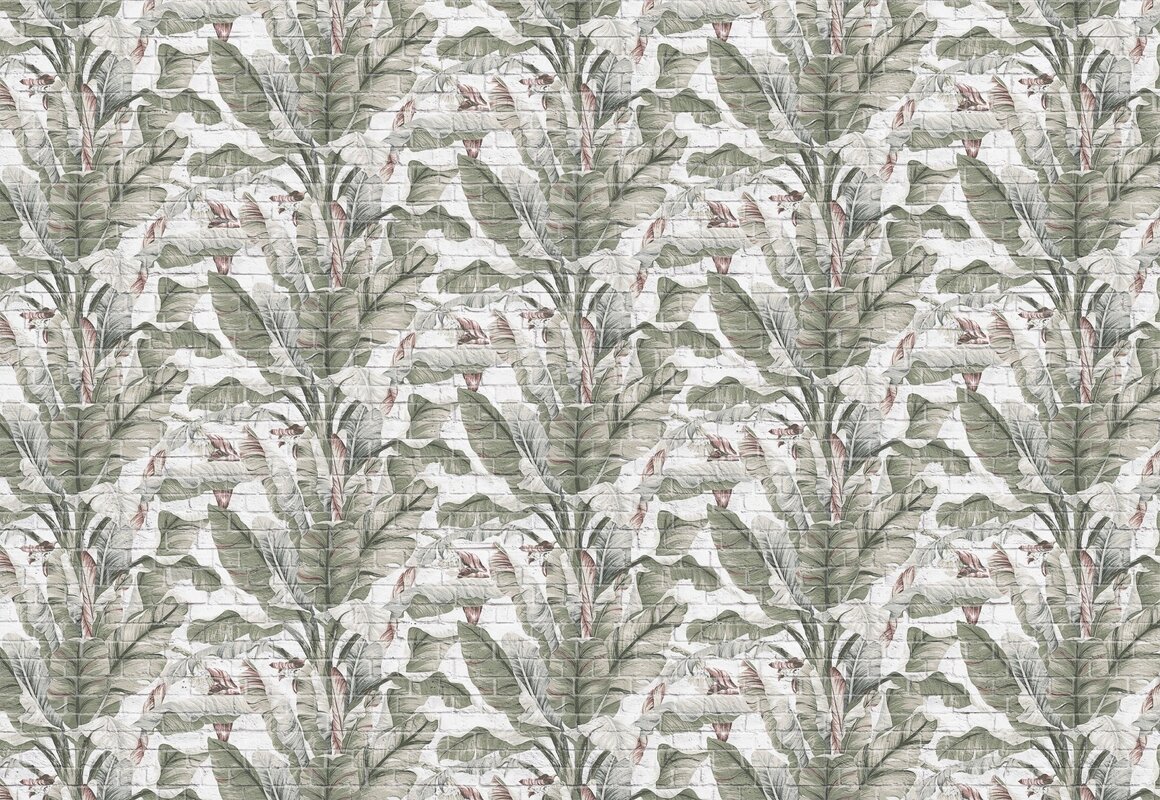 Fototapete: Tropische Pflanzen Bananenblätter Ziegelwand Dekoration
