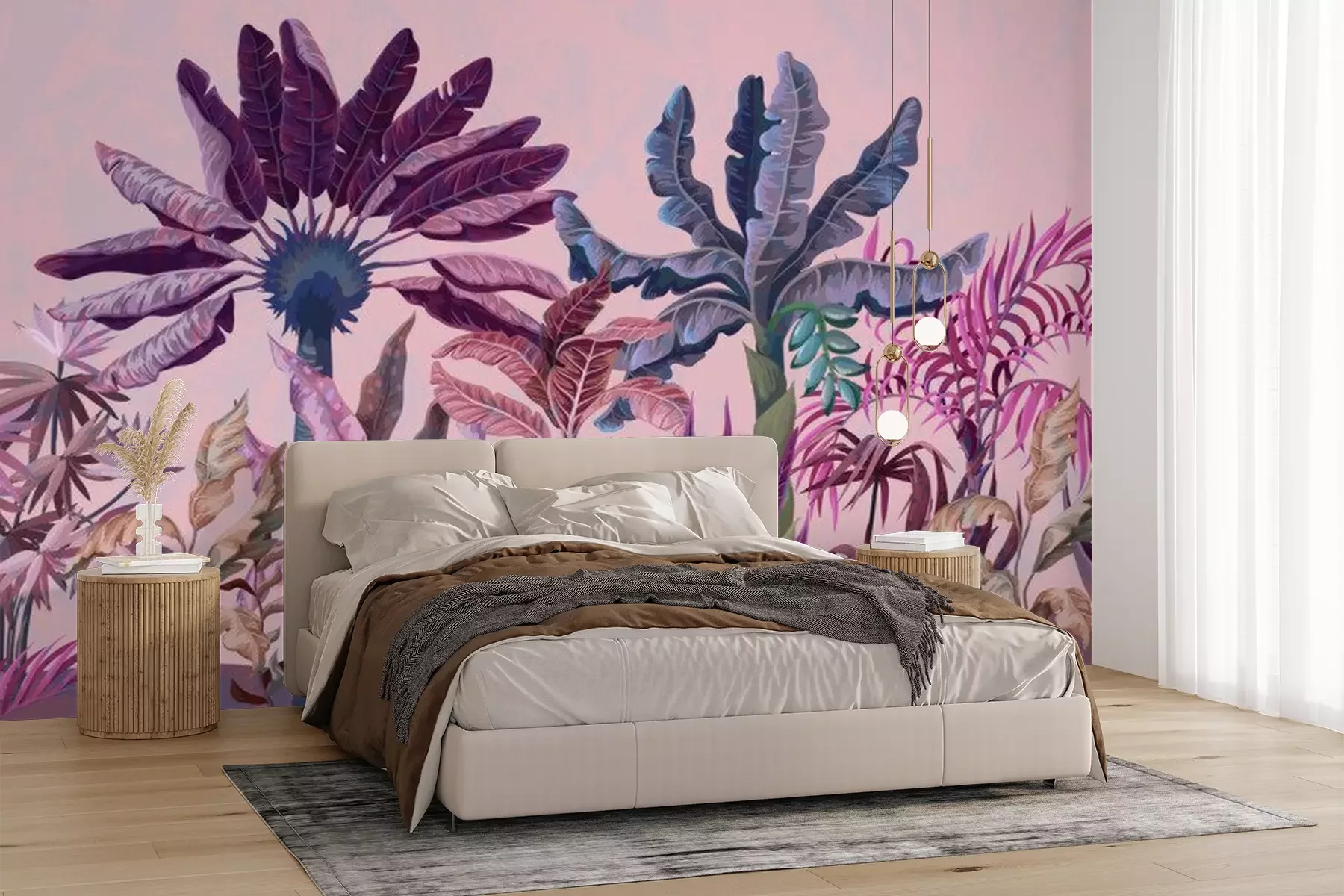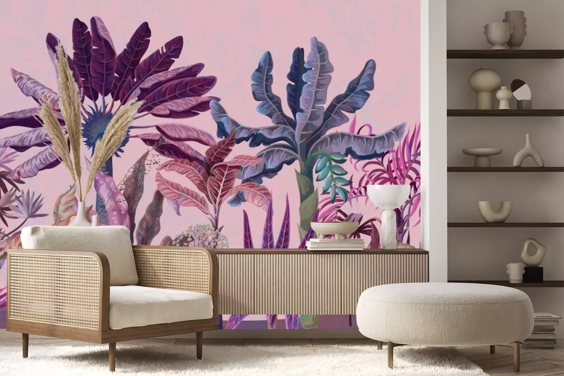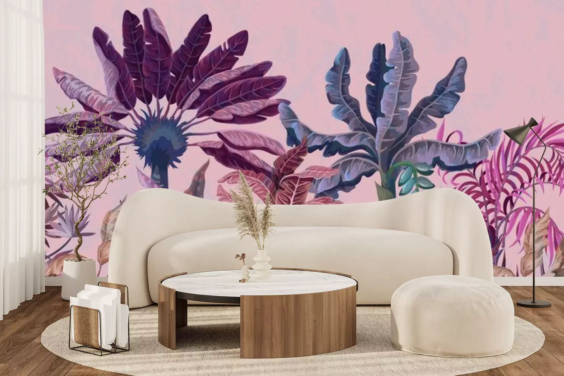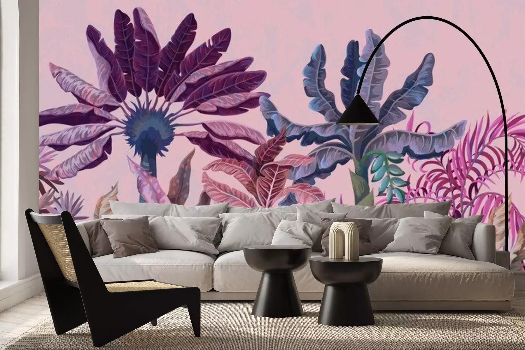 Fototapete Tropische Pflanzen im rosa Dschungel
