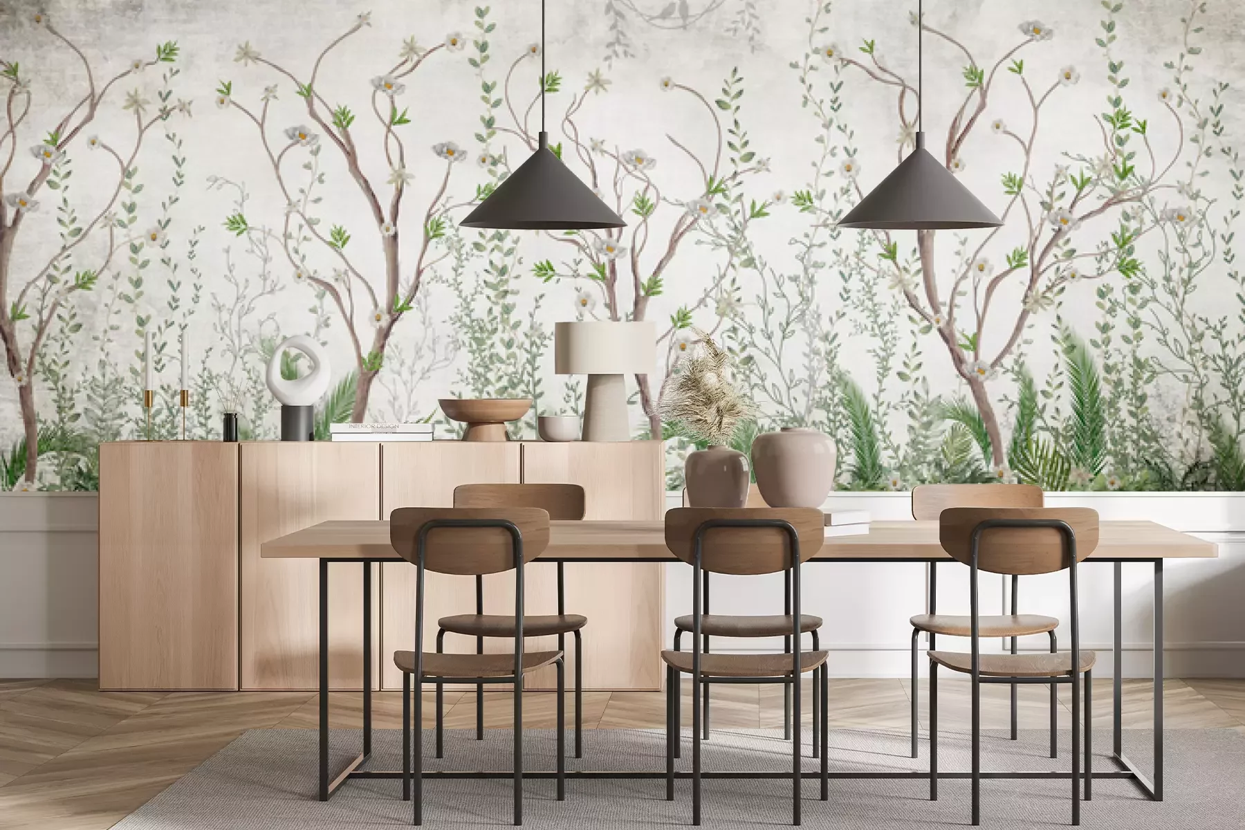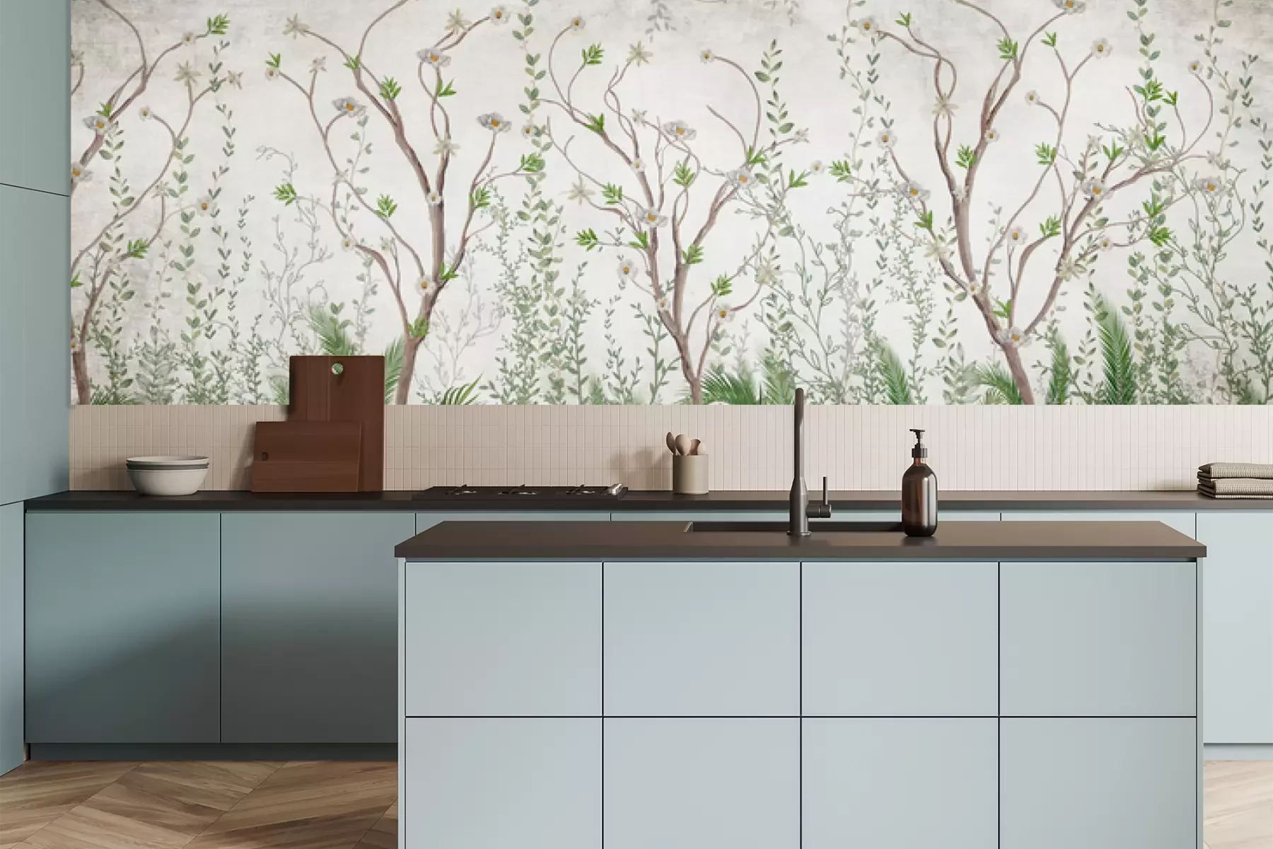 Das Material Premium+ besteht aus einer strukturierten Vinyl-Oberschicht und einem Trägermaterial (Vlies) mit einer Grammatur von 255 g/m², das kleine Unebenheiten der Wand zuverlässig kaschiert. Die feine Sandstruktur verleiht der Oberfläche eine luxuriöse Haptik, während das halbmatte Finish die Tiefe der Farben betont. Das Material ist dampfdurchlässig – so kann diese Fototapete auch in Küchen und Badezimmern eingesetzt werden. Die maximale Breite einer Tapetenbahn beträgt 100 cm. Bei größeren Abmessungen besteht die Fototapete aus mehreren gleich großen Bahnen. Der Kleber wird direkt auf die Wand aufgetragen, und die Fototapete wird auf Stoß angebracht, was für einen ästhetischen Effekt ohne sichtbare Fugen sorgt. Die Oberfläche ist pflegeleicht und kann bei Bedarf sanft mit einem feuchten Tuch abgewischt werden.