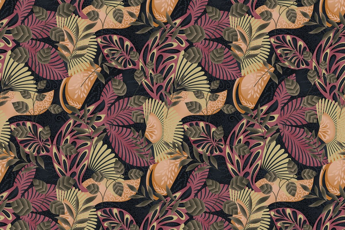 Fototapete: Tropische Pflanzen und Blätter auf dunklem Hintergrund