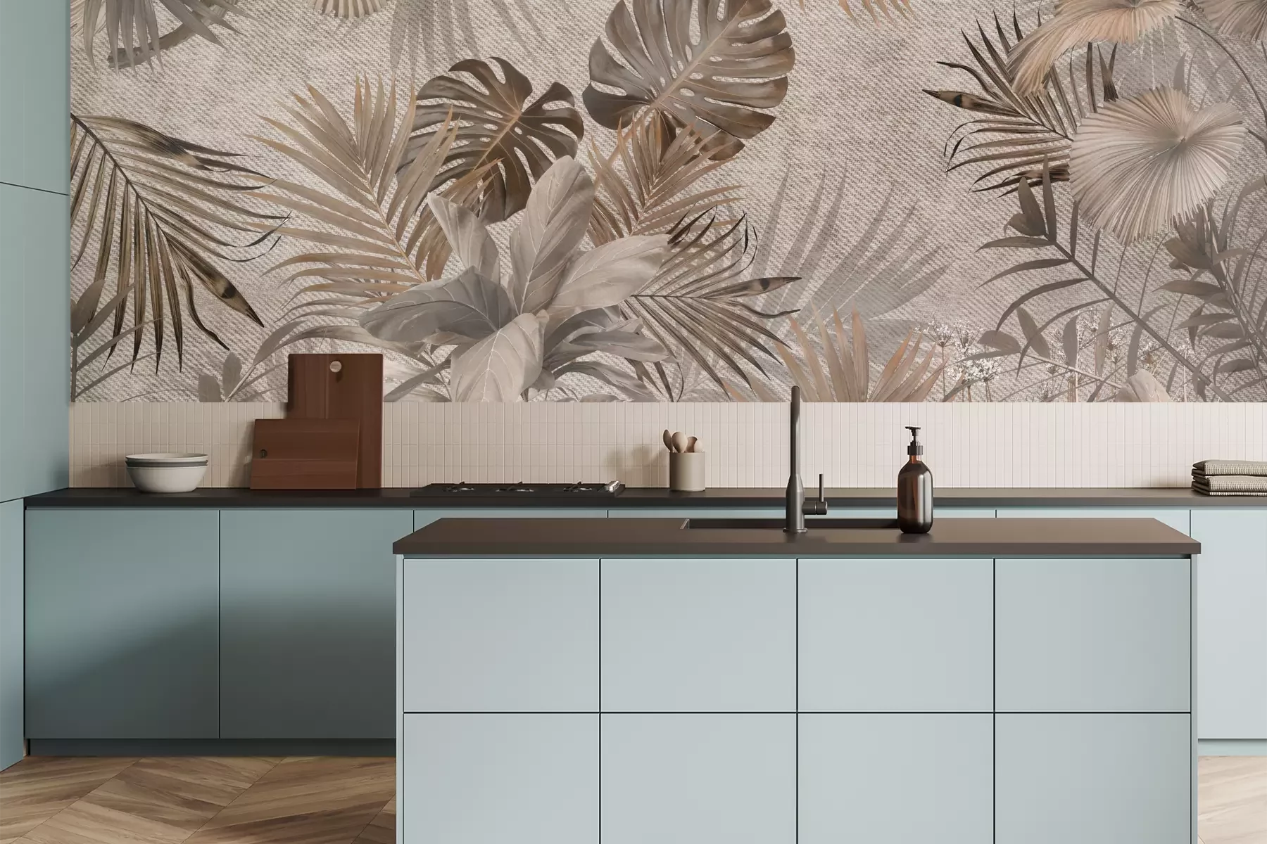 Das Material Premium+ besteht aus einer strukturierten Vinyl-Oberschicht und einem Trägermaterial (Vlies) mit einer Grammatur von 255 g/m², das kleine Unebenheiten der Wand zuverlässig kaschiert. Die feine Sandstruktur verleiht der Oberfläche eine luxuriöse Haptik, während das halbmatte Finish die Tiefe der Farben betont. Das Material ist dampfdurchlässig – so kann diese Fototapete auch in Küchen und Badezimmern eingesetzt werden. Die maximale Breite einer Tapetenbahn beträgt 100 cm. Bei größeren Abmessungen besteht die Fototapete aus mehreren gleich großen Bahnen. Der Kleber wird direkt auf die Wand aufgetragen, und die Fototapete wird auf Stoß angebracht, was für einen ästhetischen Effekt ohne sichtbare Fugen sorgt. Die Oberfläche ist pflegeleicht und kann bei Bedarf sanft mit einem feuchten Tuch abgewischt werden.