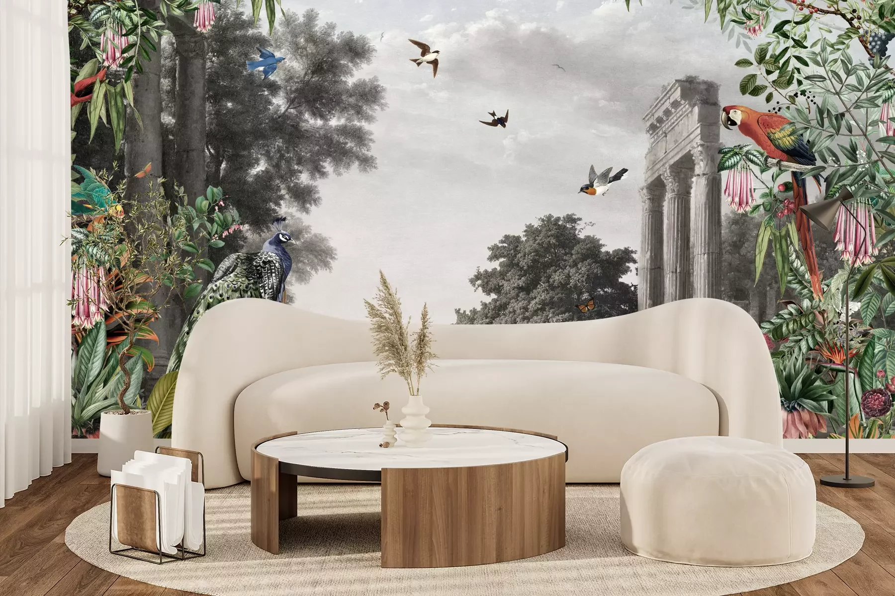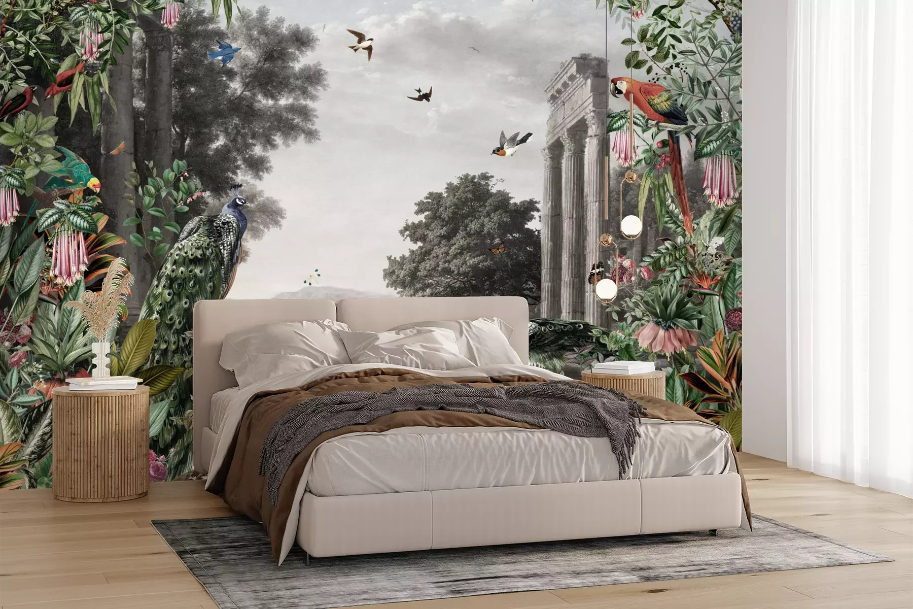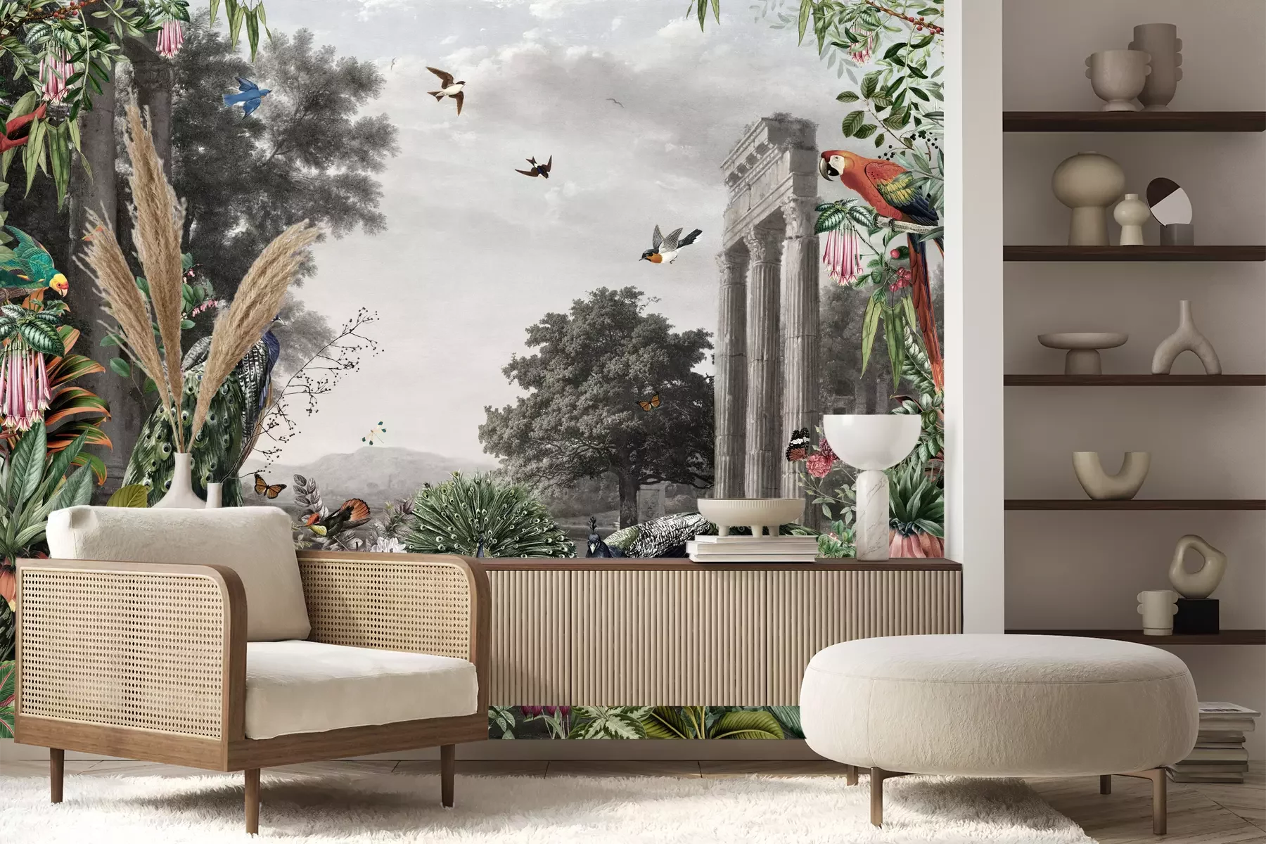 Das Material Premium+ besteht aus einer strukturierten Vinyl-Oberschicht und einem Trägermaterial (Vlies) mit einer Grammatur von 255 g/m², das kleine Unebenheiten der Wand zuverlässig kaschiert. Die feine Sandstruktur verleiht der Oberfläche eine luxuriöse Haptik, während das halbmatte Finish die Tiefe der Farben betont. Das Material ist dampfdurchlässig – so kann diese Fototapete auch in Küchen und Badezimmern eingesetzt werden. Die maximale Breite einer Tapetenbahn beträgt 100 cm. Bei größeren Abmessungen besteht die Fototapete aus mehreren gleich großen Bahnen. Der Kleber wird direkt auf die Wand aufgetragen, und die Fototapete wird auf Stoß angebracht, was für einen ästhetischen Effekt ohne sichtbare Fugen sorgt. Die Oberfläche ist pflegeleicht und kann bei Bedarf sanft mit einem feuchten Tuch abgewischt werden.