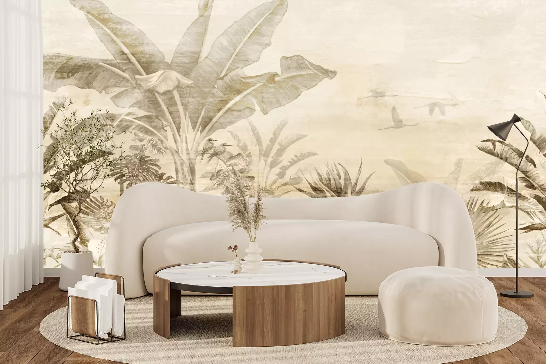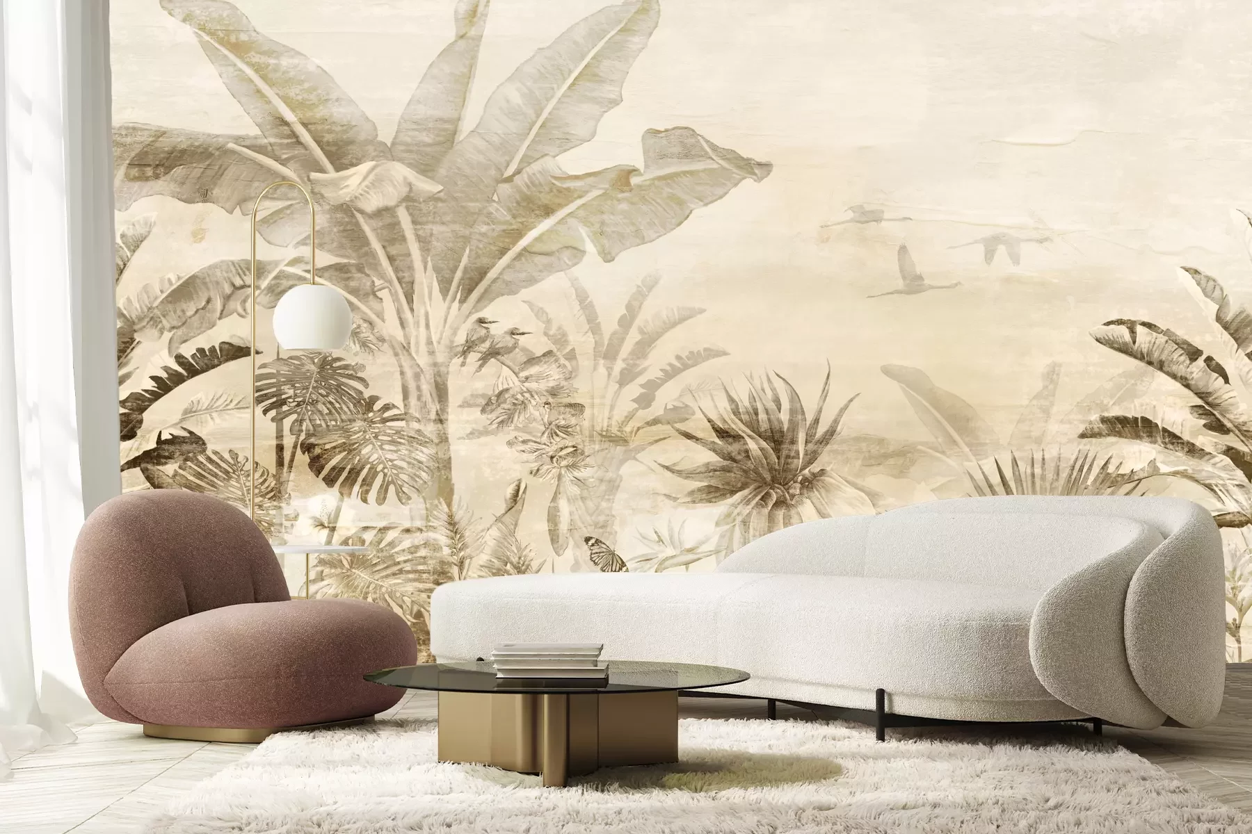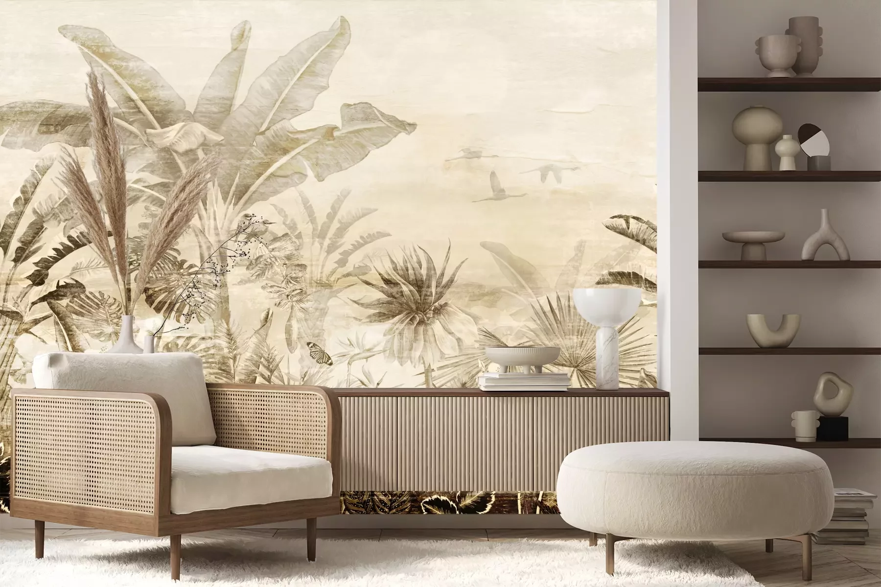 Das Material Premium+ besteht aus einer strukturierten Vinyl-Oberschicht und einem Trägermaterial (Vlies) mit einer Grammatur von 255 g/m², das kleine Unebenheiten der Wand zuverlässig kaschiert. Die feine Sandstruktur verleiht der Oberfläche eine luxuriöse Haptik, während das halbmatte Finish die Tiefe der Farben betont. Das Material ist dampfdurchlässig – so kann diese Fototapete auch in Küchen und Badezimmern eingesetzt werden. Die maximale Breite einer Tapetenbahn beträgt 100 cm. Bei größeren Abmessungen besteht die Fototapete aus mehreren gleich großen Bahnen. Der Kleber wird direkt auf die Wand aufgetragen, und die Fototapete wird auf Stoß angebracht, was für einen ästhetischen Effekt ohne sichtbare Fugen sorgt. Die Oberfläche ist pflegeleicht und kann bei Bedarf sanft mit einem feuchten Tuch abgewischt werden.