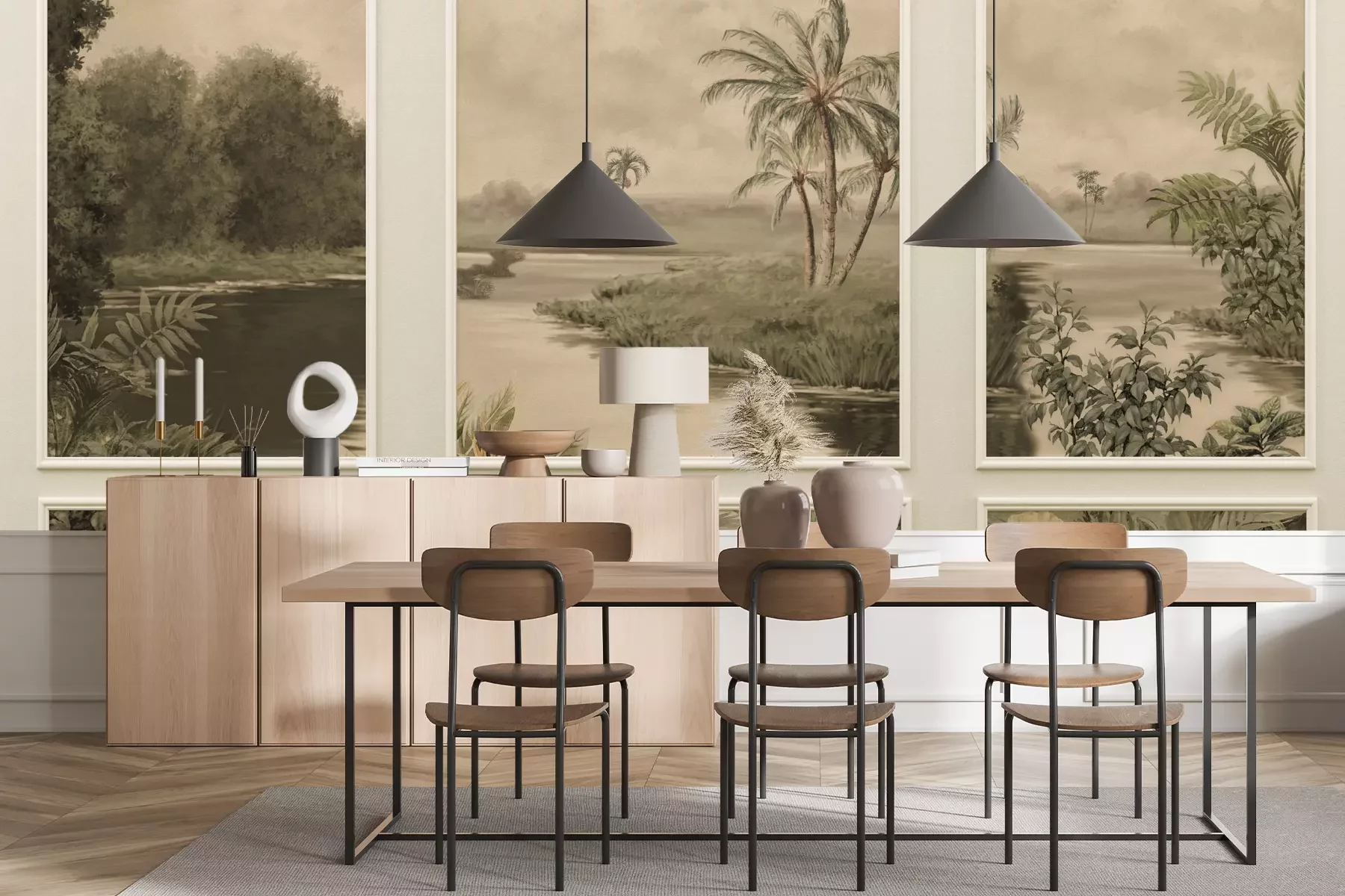 Das Material Premium+ besteht aus einer strukturierten Vinyl-Oberschicht und einem Trägermaterial (Vlies) mit einer Grammatur von 255 g/m², das kleine Unebenheiten der Wand zuverlässig kaschiert. Die feine Sandstruktur verleiht der Oberfläche eine luxuriöse Haptik, während das halbmatte Finish die Tiefe der Farben betont. Das Material ist dampfdurchlässig – so kann diese Fototapete auch in Küchen und Badezimmern eingesetzt werden. Die maximale Breite einer Tapetenbahn beträgt 100 cm. Bei größeren Abmessungen besteht die Fototapete aus mehreren gleich großen Bahnen. Der Kleber wird direkt auf die Wand aufgetragen, und die Fototapete wird auf Stoß angebracht, was für einen ästhetischen Effekt ohne sichtbare Fugen sorgt. Die Oberfläche ist pflegeleicht und kann bei Bedarf sanft mit einem feuchten Tuch abgewischt werden.