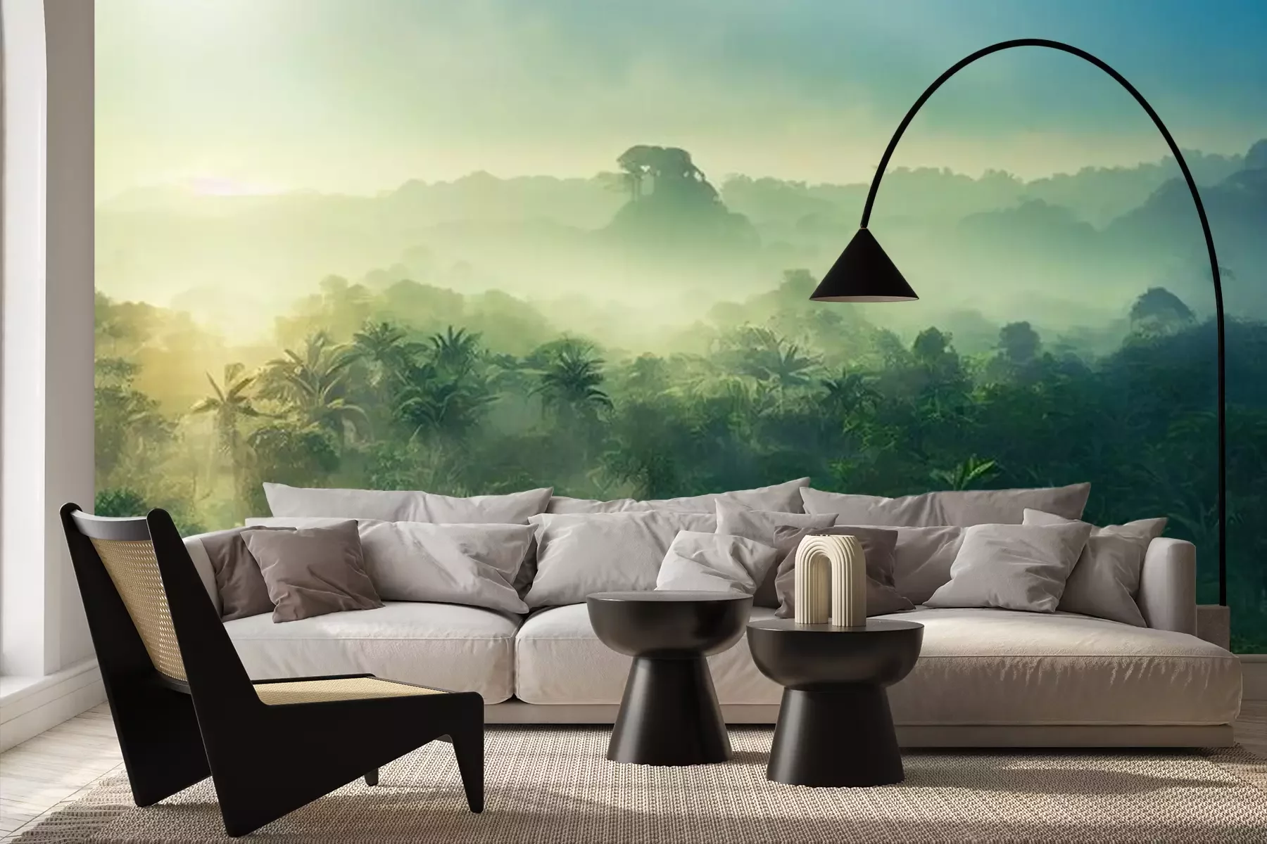 Das Material Premium+ besteht aus einer strukturierten Vinyl-Oberschicht und einem Trägermaterial (Vlies) mit einer Grammatur von 255 g/m², das kleine Unebenheiten der Wand zuverlässig kaschiert. Die feine Sandstruktur verleiht der Oberfläche eine luxuriöse Haptik, während das halbmatte Finish die Tiefe der Farben betont. Das Material ist dampfdurchlässig – so kann diese Fototapete auch in Küchen und Badezimmern eingesetzt werden. Die maximale Breite einer Tapetenbahn beträgt 100 cm. Bei größeren Abmessungen besteht die Fototapete aus mehreren gleich großen Bahnen. Der Kleber wird direkt auf die Wand aufgetragen, und die Fototapete wird auf Stoß angebracht, was für einen ästhetischen Effekt ohne sichtbare Fugen sorgt. Die Oberfläche ist pflegeleicht und kann bei Bedarf sanft mit einem feuchten Tuch abgewischt werden.