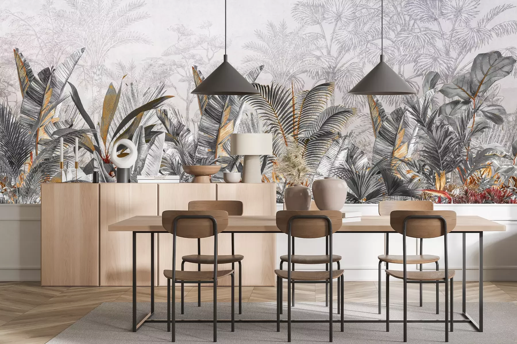 Das Material Premium+ besteht aus einer strukturierten Vinyl-Oberschicht und einem Trägermaterial (Vlies) mit einer Grammatur von 255 g/m², das kleine Unebenheiten der Wand zuverlässig kaschiert. Die feine Sandstruktur verleiht der Oberfläche eine luxuriöse Haptik, während das halbmatte Finish die Tiefe der Farben betont. Das Material ist dampfdurchlässig – so kann diese Fototapete auch in Küchen und Badezimmern eingesetzt werden. Die maximale Breite einer Tapetenbahn beträgt 100 cm. Bei größeren Abmessungen besteht die Fototapete aus mehreren gleich großen Bahnen. Der Kleber wird direkt auf die Wand aufgetragen, und die Fototapete wird auf Stoß angebracht, was für einen ästhetischen Effekt ohne sichtbare Fugen sorgt. Die Oberfläche ist pflegeleicht und kann bei Bedarf sanft mit einem feuchten Tuch abgewischt werden.