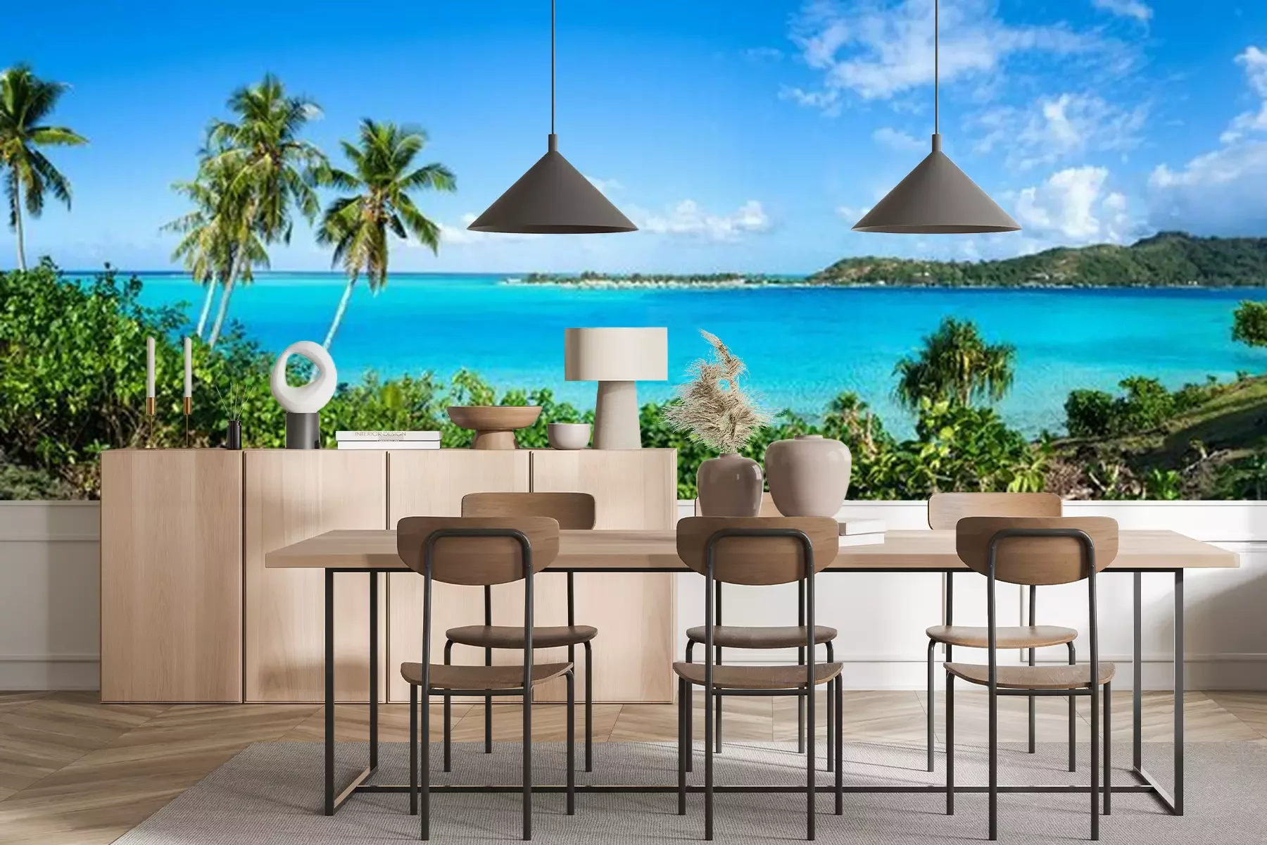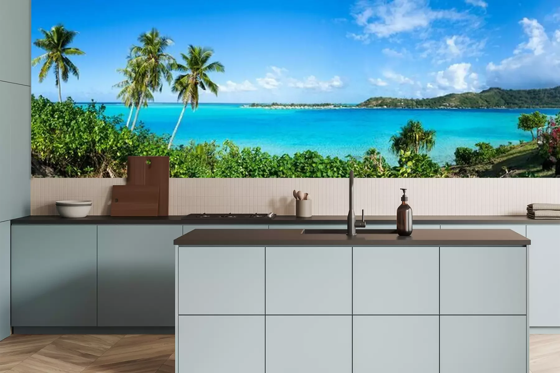 Strand Panorama mit Meer und PalmenProblemlose Lieferung durch vertrauenswürdige Spediteure