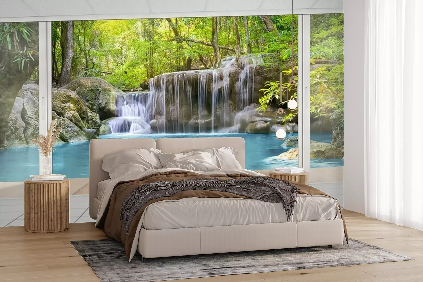 Die Fototapeten werden in Bahnen geliefert. Die Größe und die Anzahl der Bahnen, aus denen die gesamte Fototapete besteht, hängen vom gewählten Material ab. Wenn die Größe die maximale Breite des Materials überschreitet, besteht der Ausdruck aus mehreren gleich großen Bahnen.