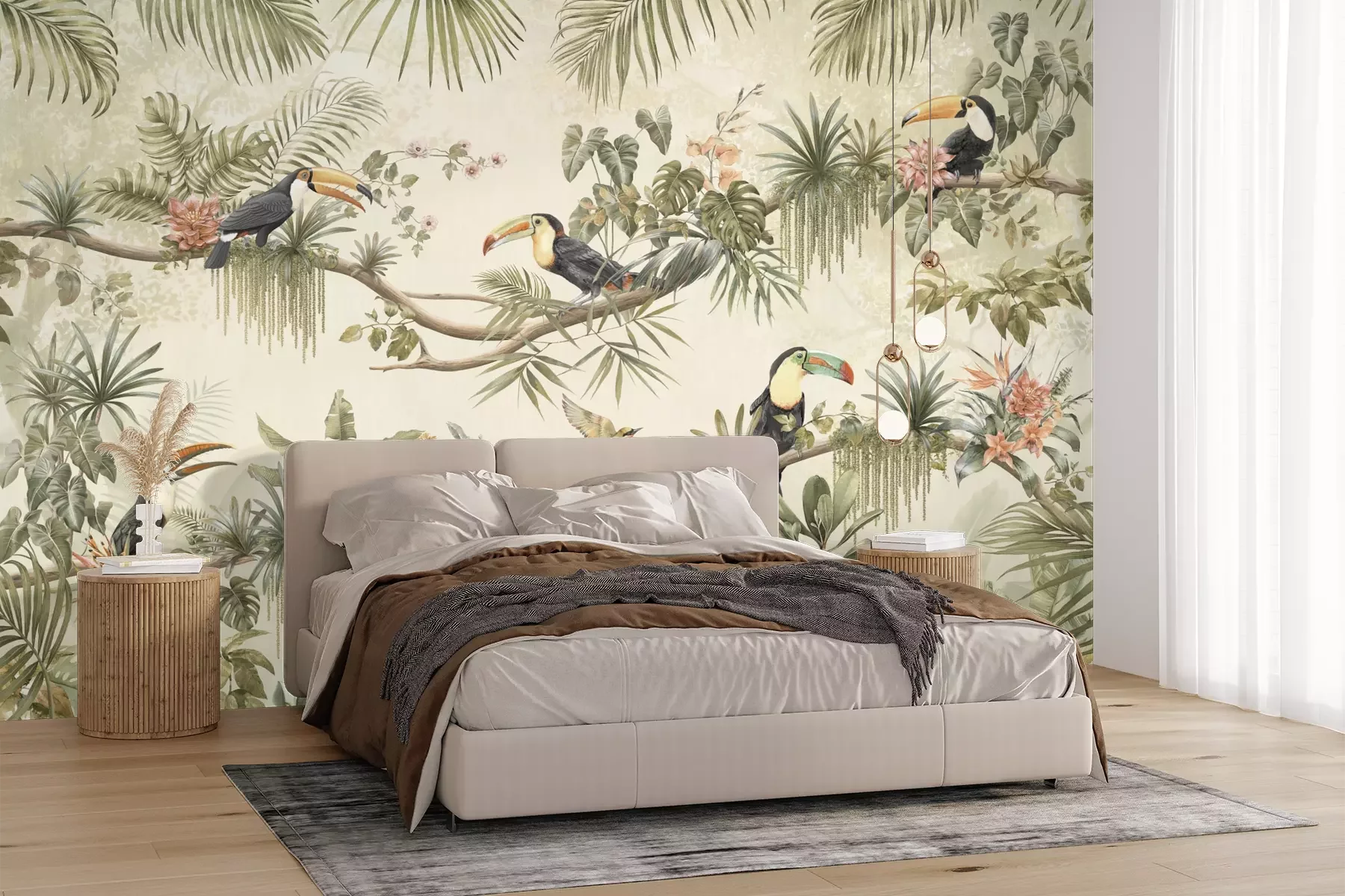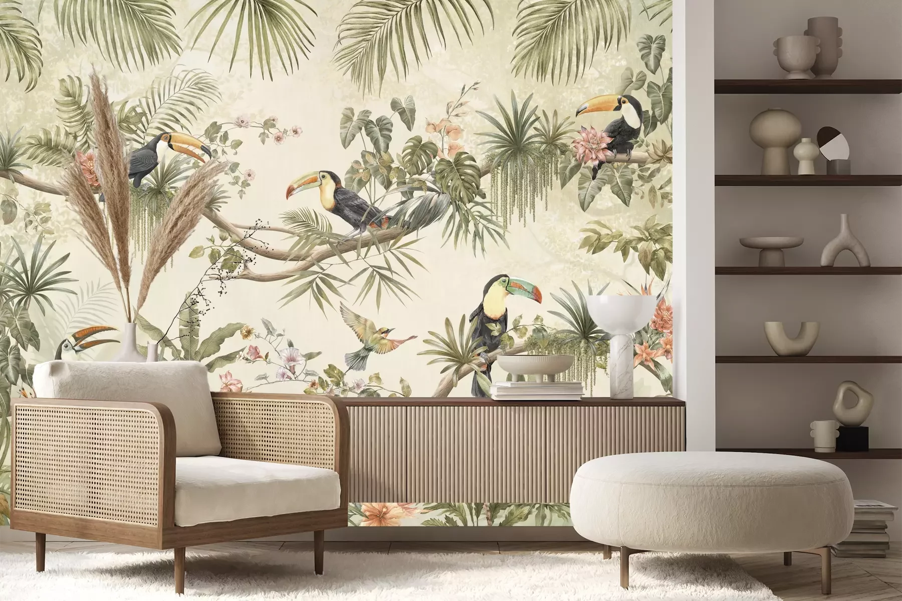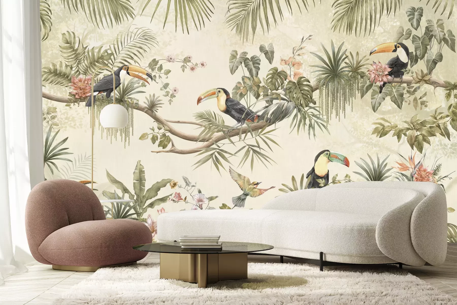 Das Material Premium+ besteht aus einer strukturierten Vinyl-Oberschicht und einem Trägermaterial (Vlies) mit einer Grammatur von 255 g/m², das kleine Unebenheiten der Wand zuverlässig kaschiert. Die feine Sandstruktur verleiht der Oberfläche eine luxuriöse Haptik, während das halbmatte Finish die Tiefe der Farben betont. Das Material ist dampfdurchlässig – so kann diese Fototapete auch in Küchen und Badezimmern eingesetzt werden. Die maximale Breite einer Tapetenbahn beträgt 100 cm. Bei größeren Abmessungen besteht die Fototapete aus mehreren gleich großen Bahnen. Der Kleber wird direkt auf die Wand aufgetragen, und die Fototapete wird auf Stoß angebracht, was für einen ästhetischen Effekt ohne sichtbare Fugen sorgt. Die Oberfläche ist pflegeleicht und kann bei Bedarf sanft mit einem feuchten Tuch abgewischt werden.
