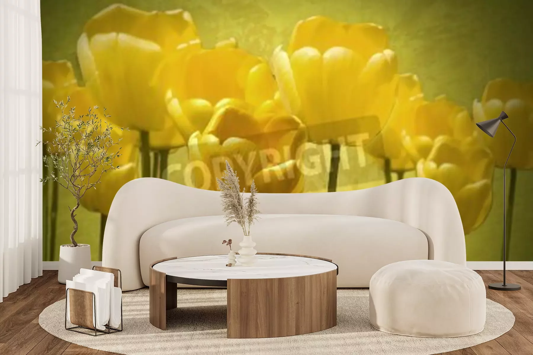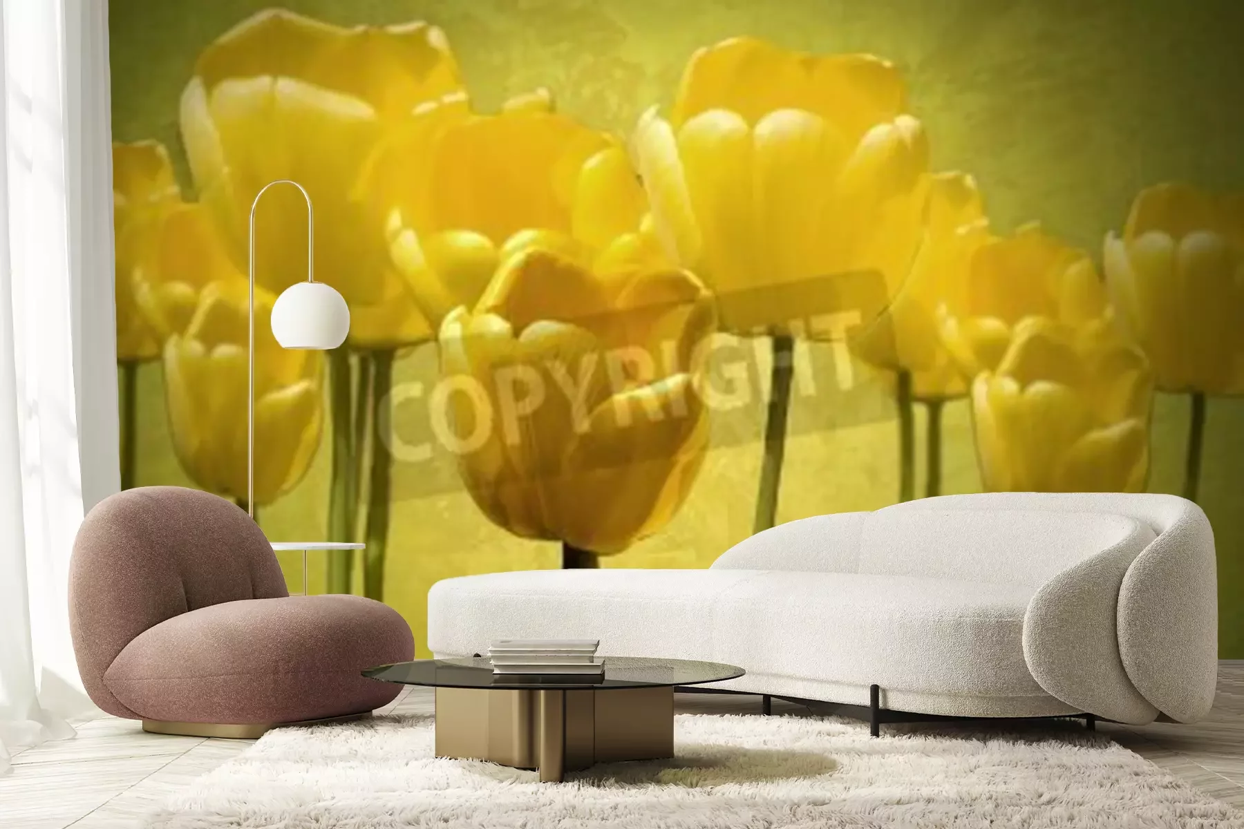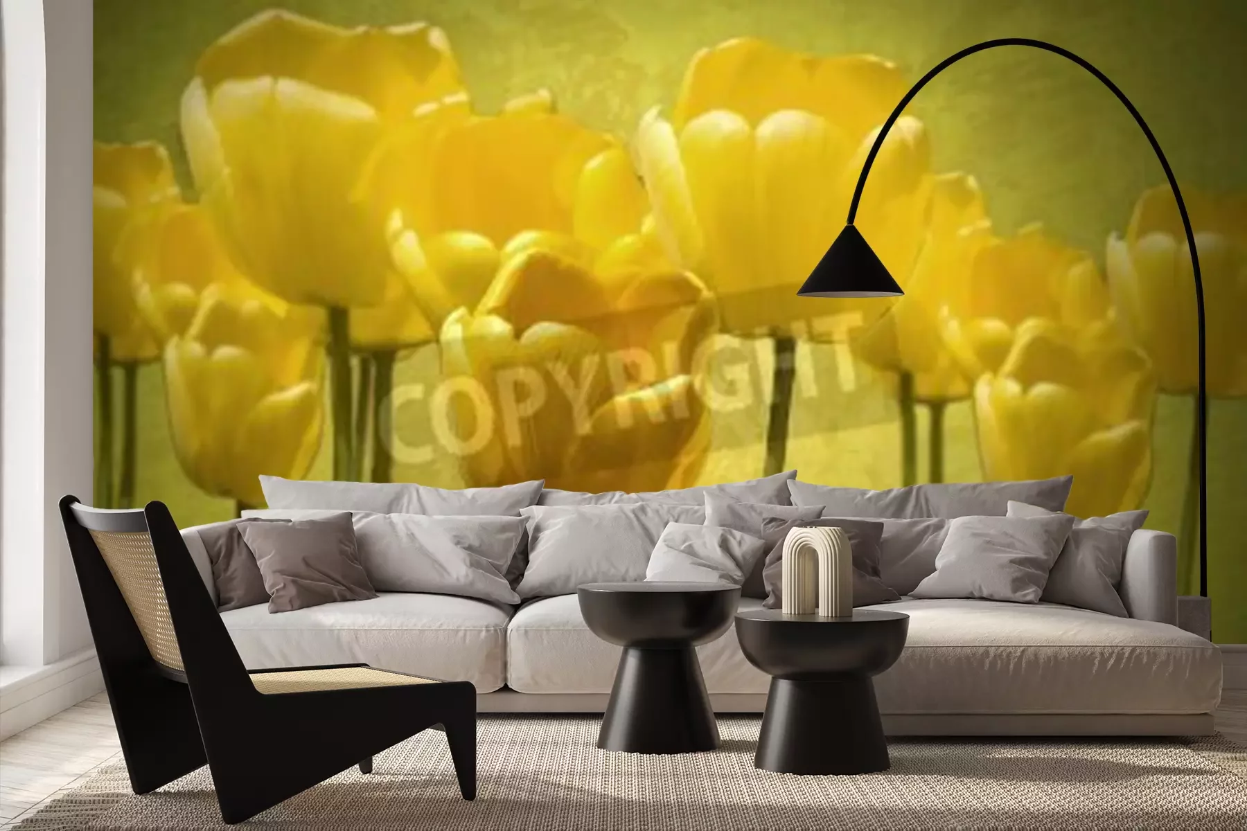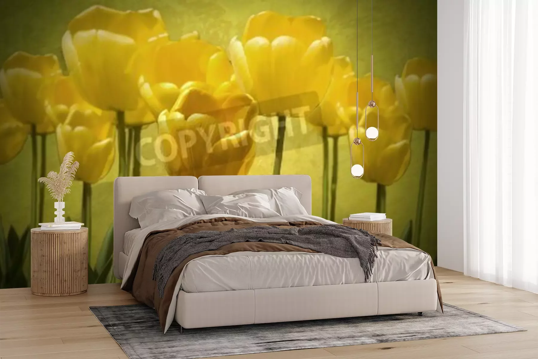 Fototapete Tulpen auf einem Weinlesehintergrund