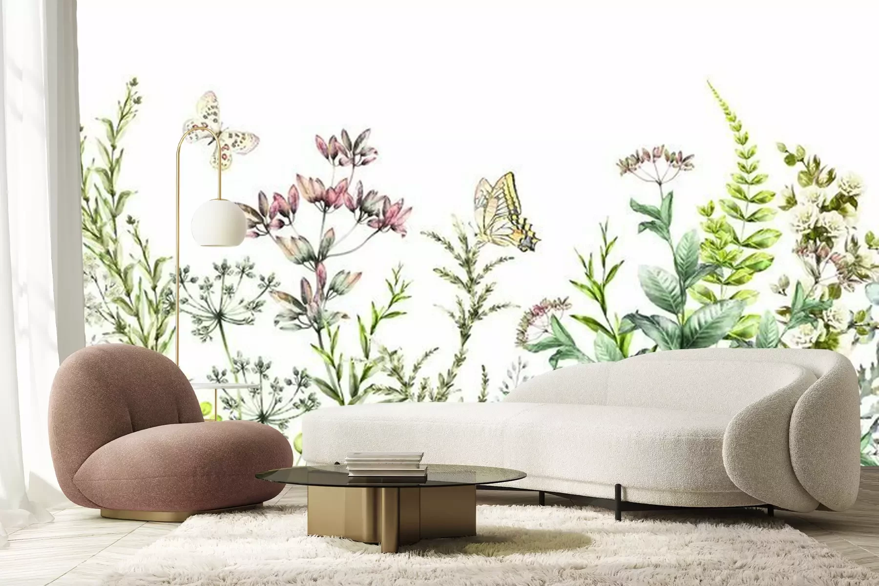 Fototapete Über Feldpflanzen fliegende Schmetterlinge