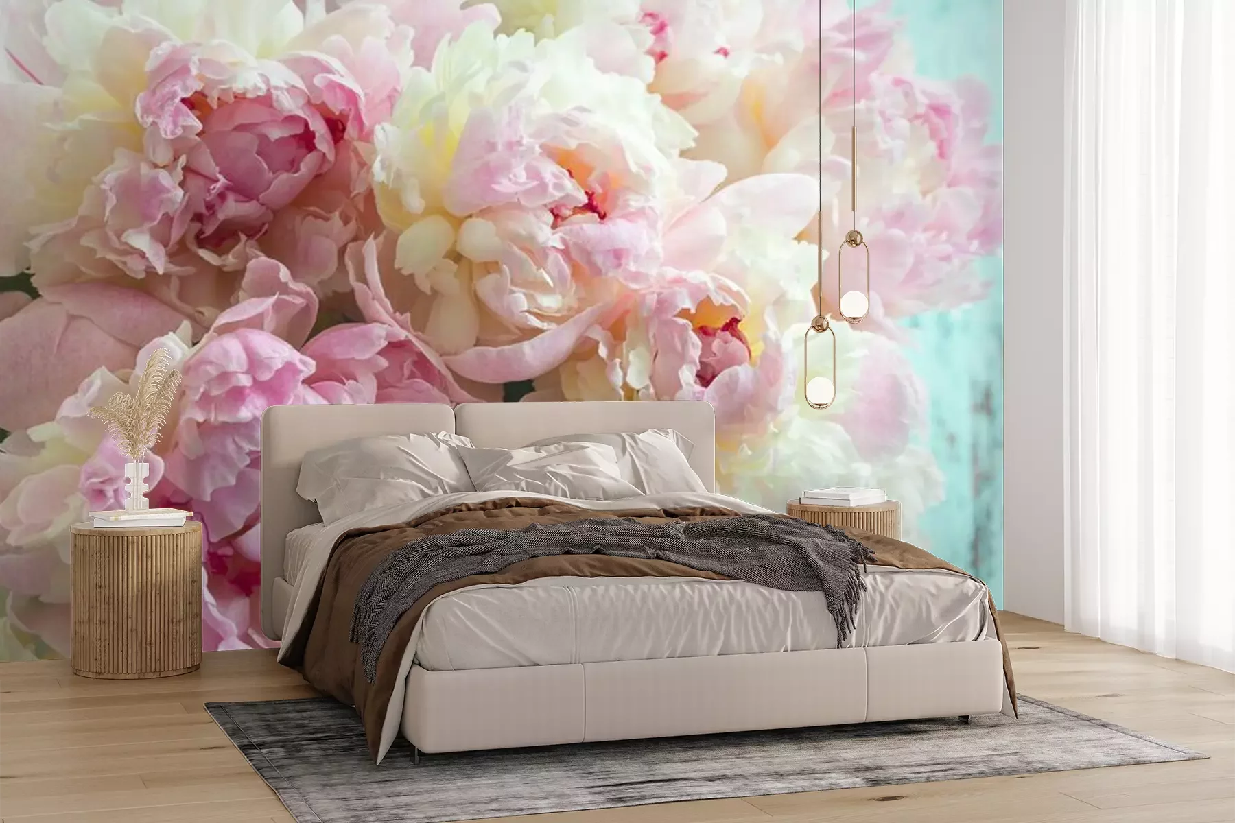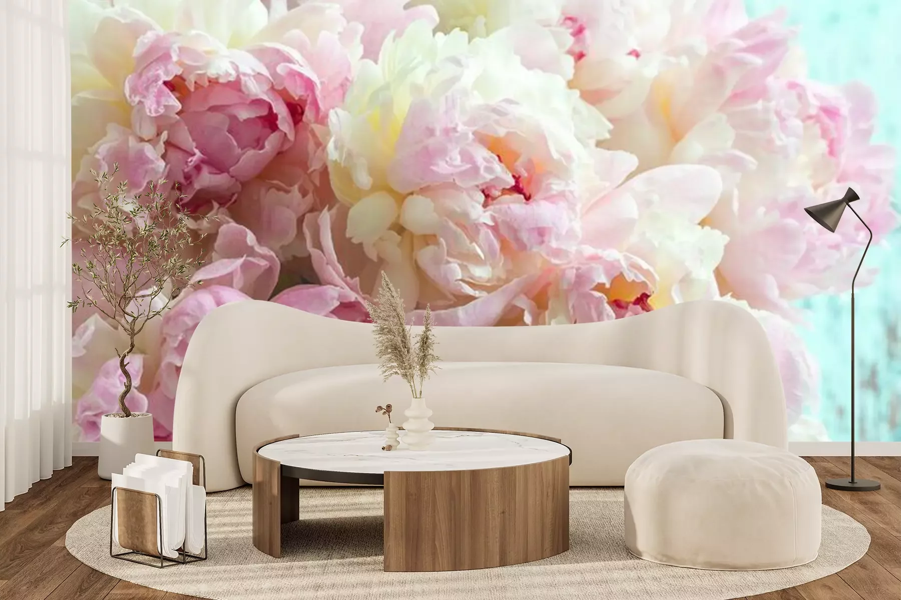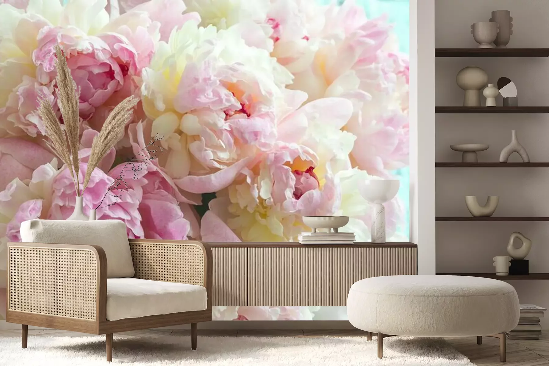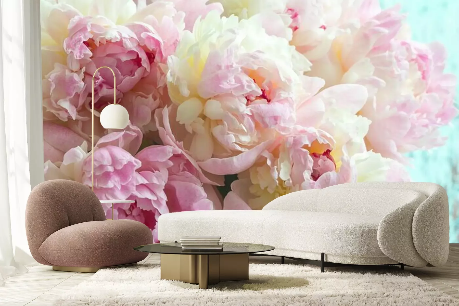 Flaumige rosa Pfingstrosen blüht HintergrundFototapete
