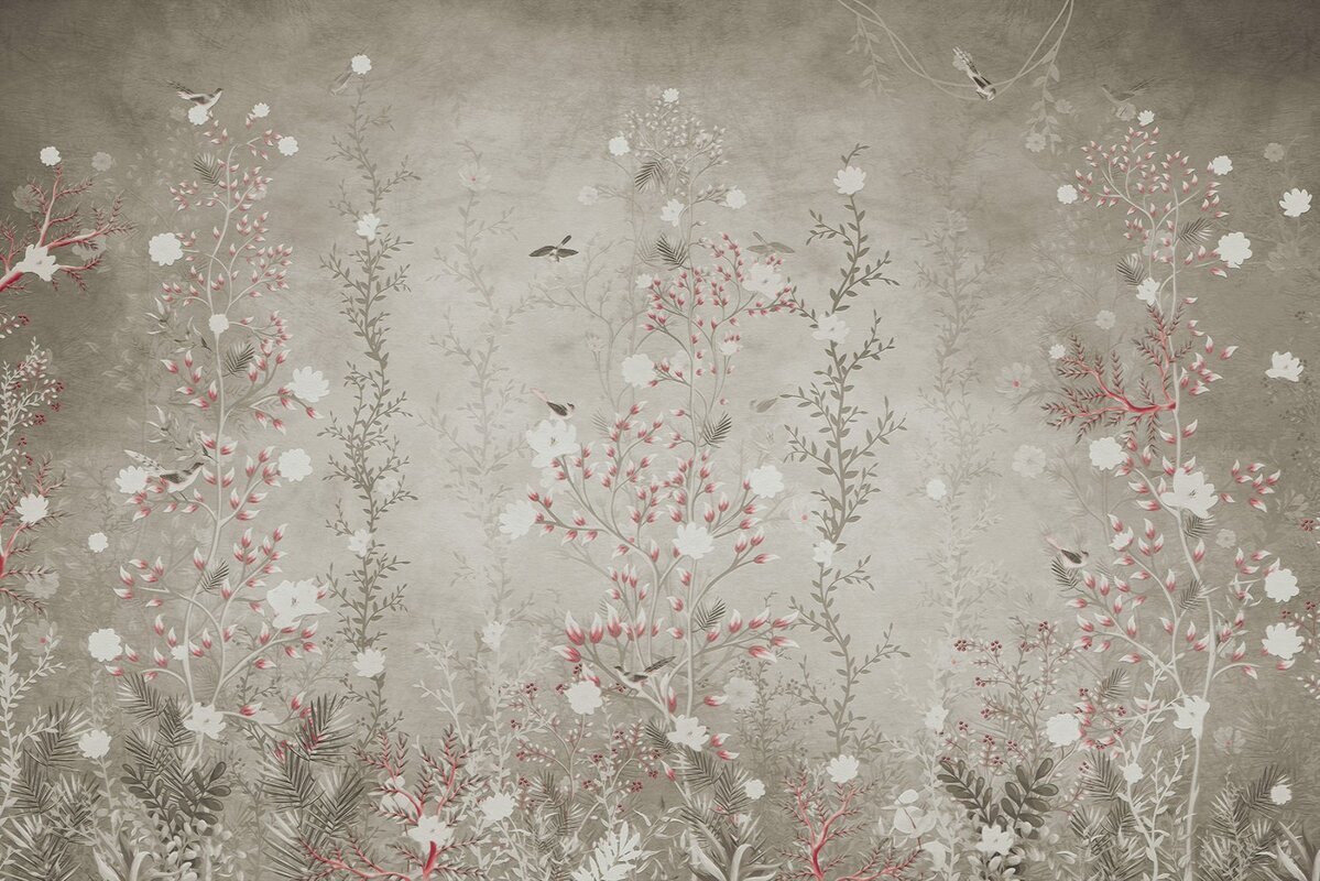Fototapete: Üppige Vegetation auf der Wiese mit Vögeln