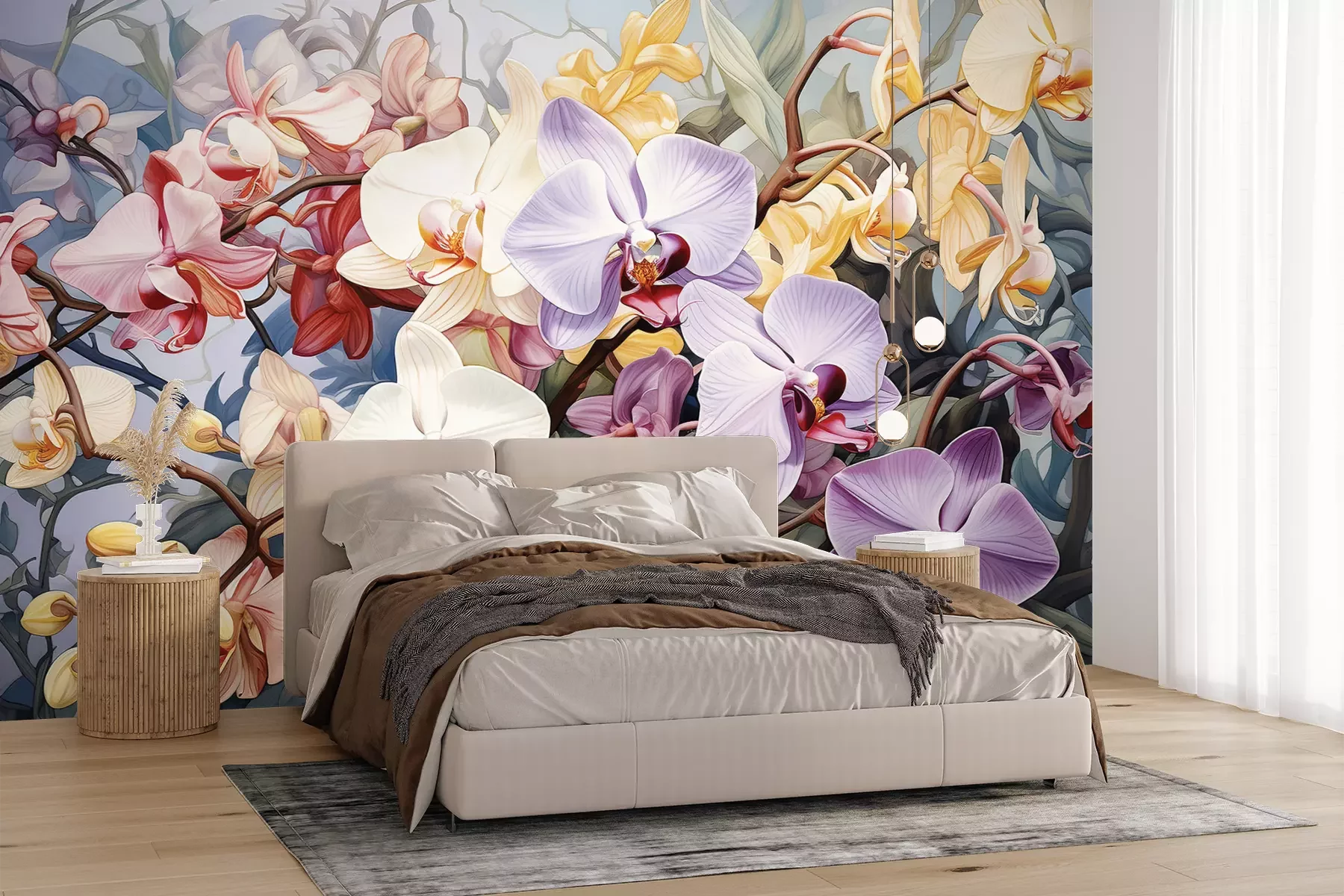 Die Fototapeten werden in Bahnen geliefert. Die Größe und die Anzahl der Bahnen, aus denen die gesamte Fototapete besteht, hängen vom gewählten Material ab. Wenn die Größe die maximale Breite des Materials überschreitet, besteht der Ausdruck aus mehreren gleich großen Bahnen.
