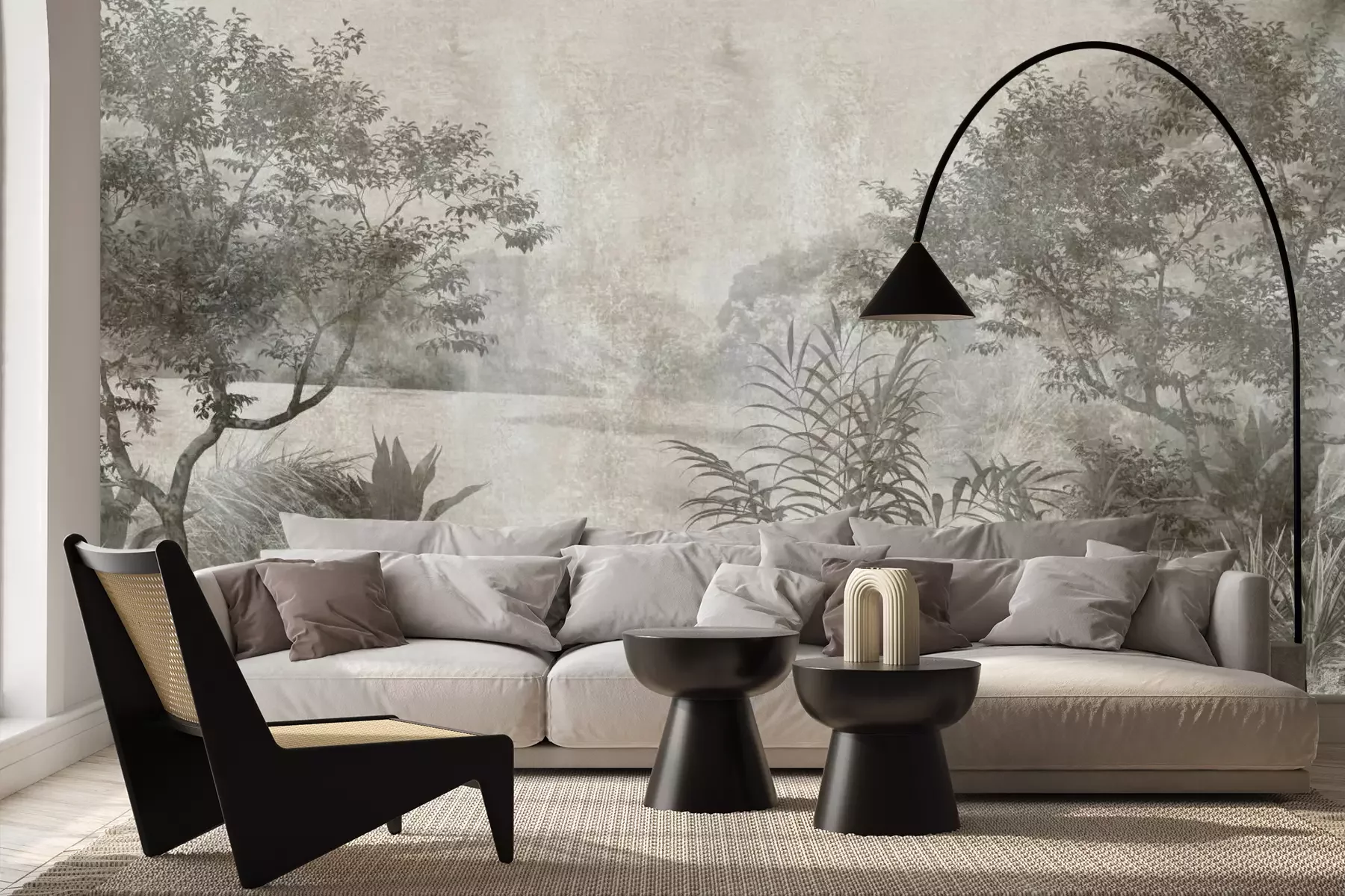 Das Material Premium+ besteht aus einer strukturierten Vinyl-Oberschicht und einem Trägermaterial (Vlies) mit einer Grammatur von 255 g/m², das kleine Unebenheiten der Wand zuverlässig kaschiert. Die feine Sandstruktur verleiht der Oberfläche eine luxuriöse Haptik, während das halbmatte Finish die Tiefe der Farben betont. Das Material ist dampfdurchlässig – so kann diese Fototapete auch in Küchen und Badezimmern eingesetzt werden. Die maximale Breite einer Tapetenbahn beträgt 100 cm. Bei größeren Abmessungen besteht die Fototapete aus mehreren gleich großen Bahnen. Der Kleber wird direkt auf die Wand aufgetragen, und die Fototapete wird auf Stoß angebracht, was für einen ästhetischen Effekt ohne sichtbare Fugen sorgt. Die Oberfläche ist pflegeleicht und kann bei Bedarf sanft mit einem feuchten Tuch abgewischt werden.