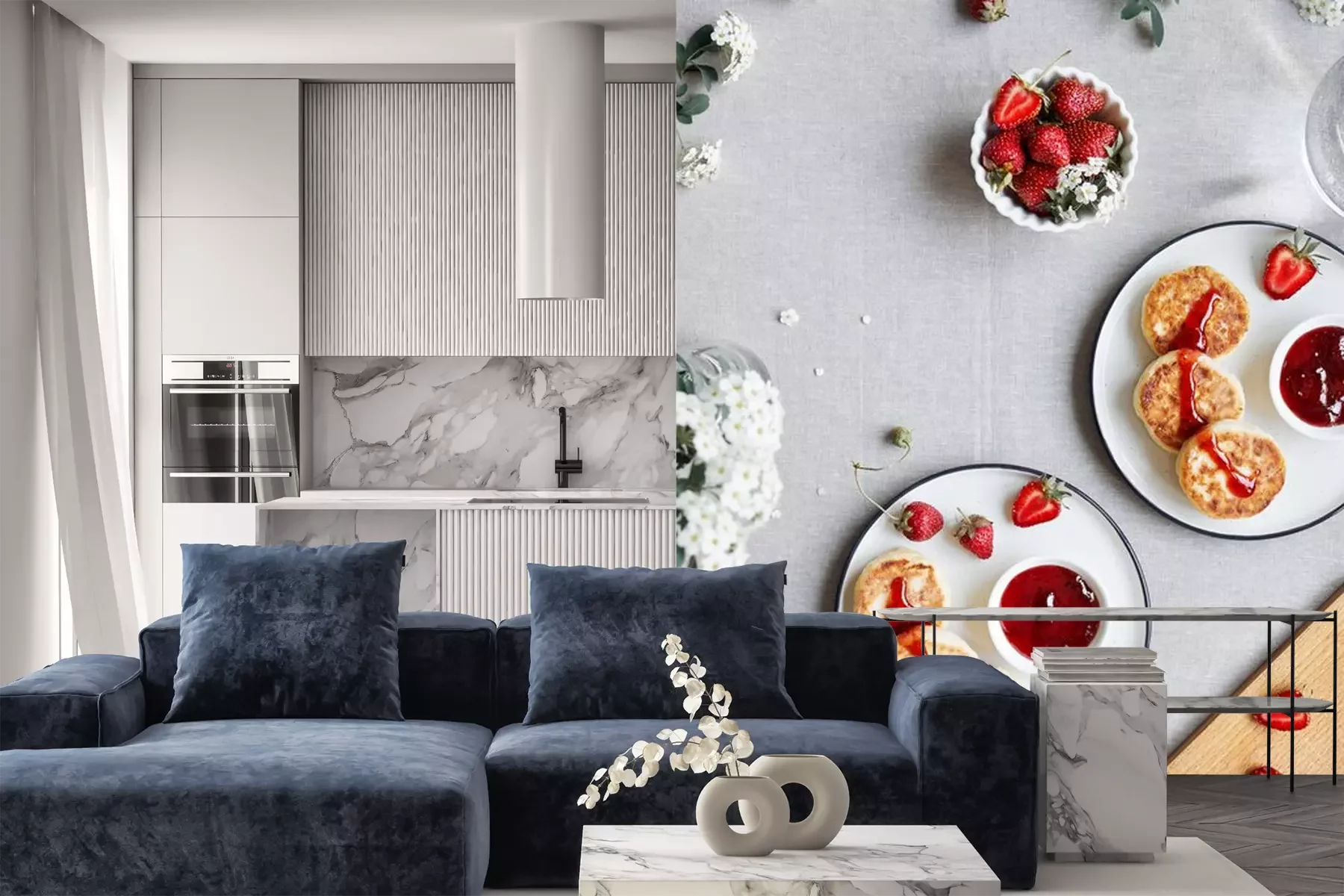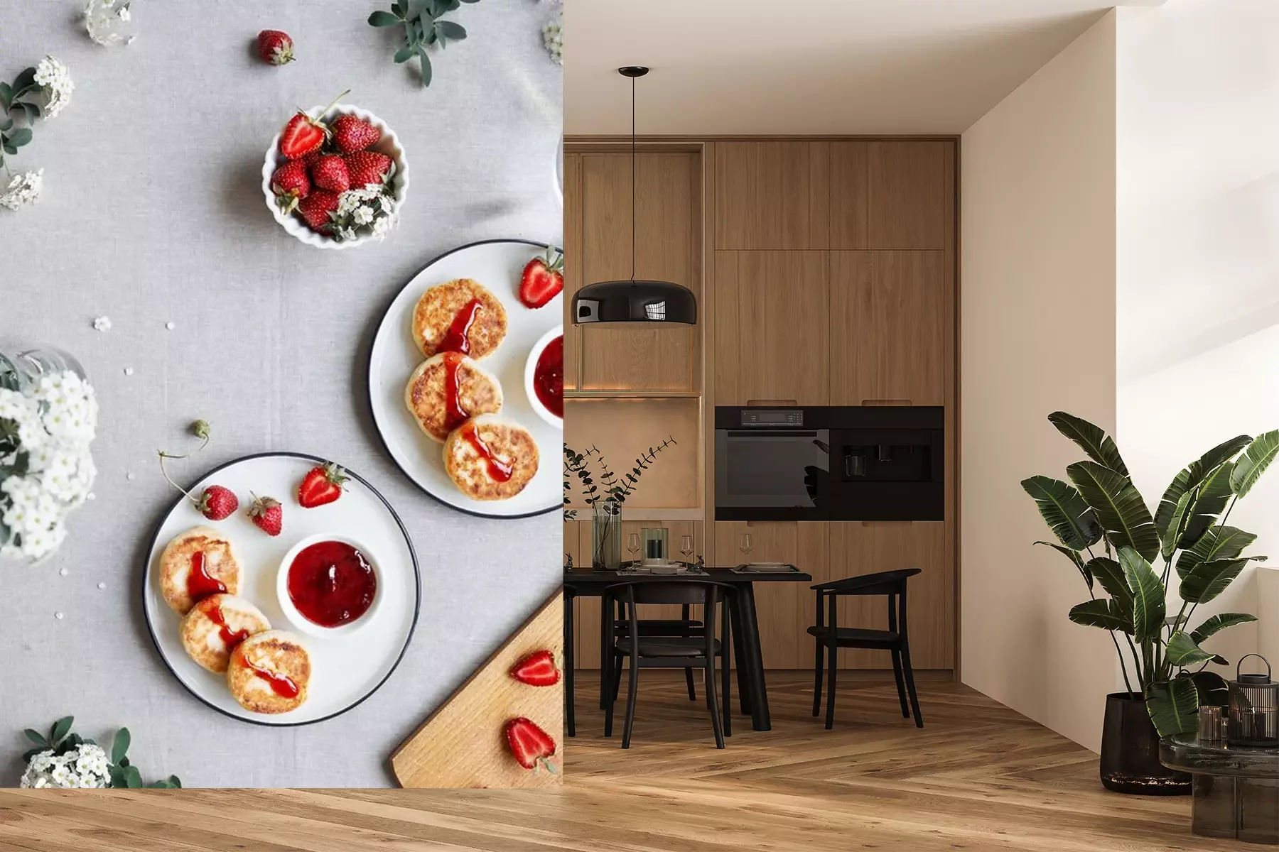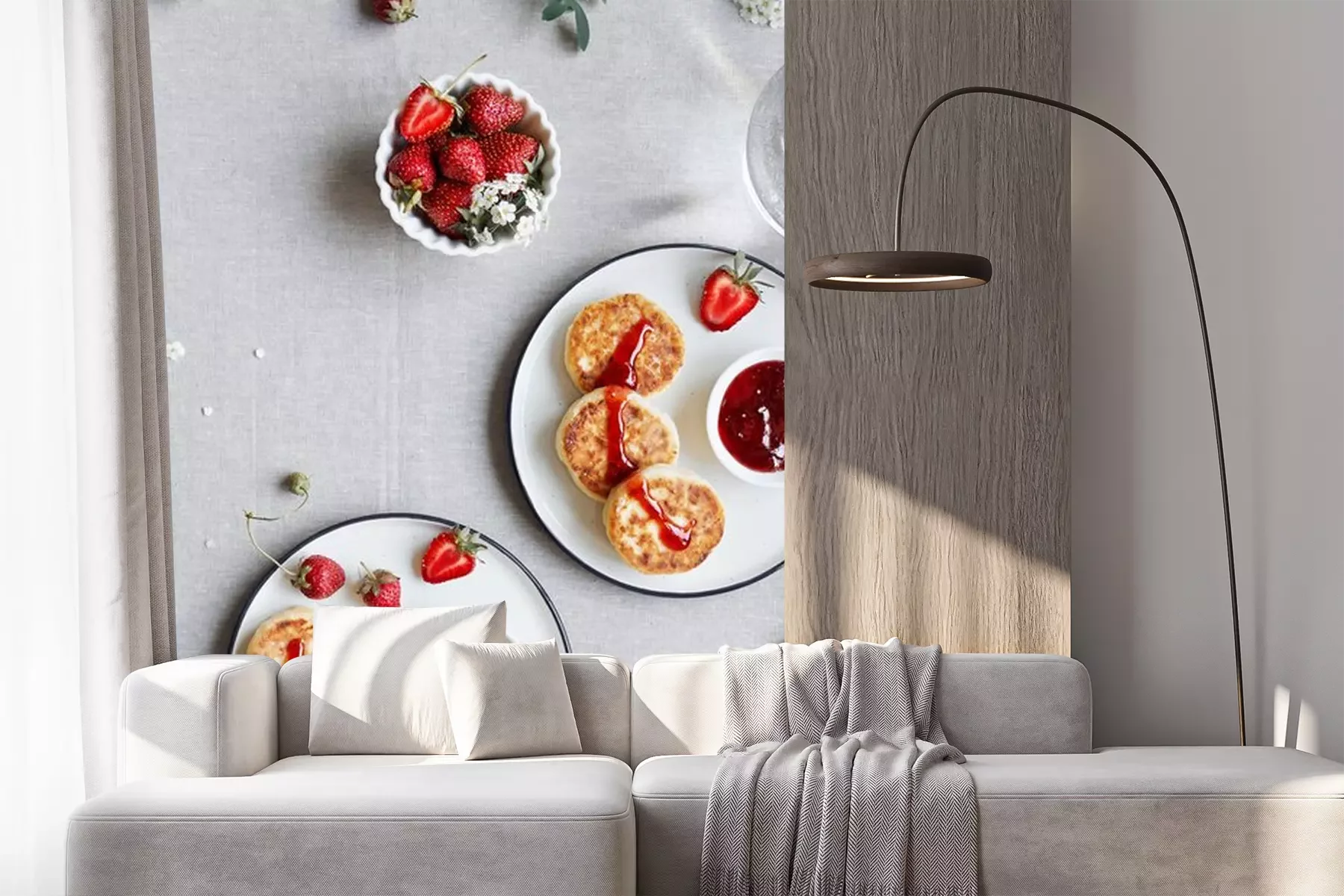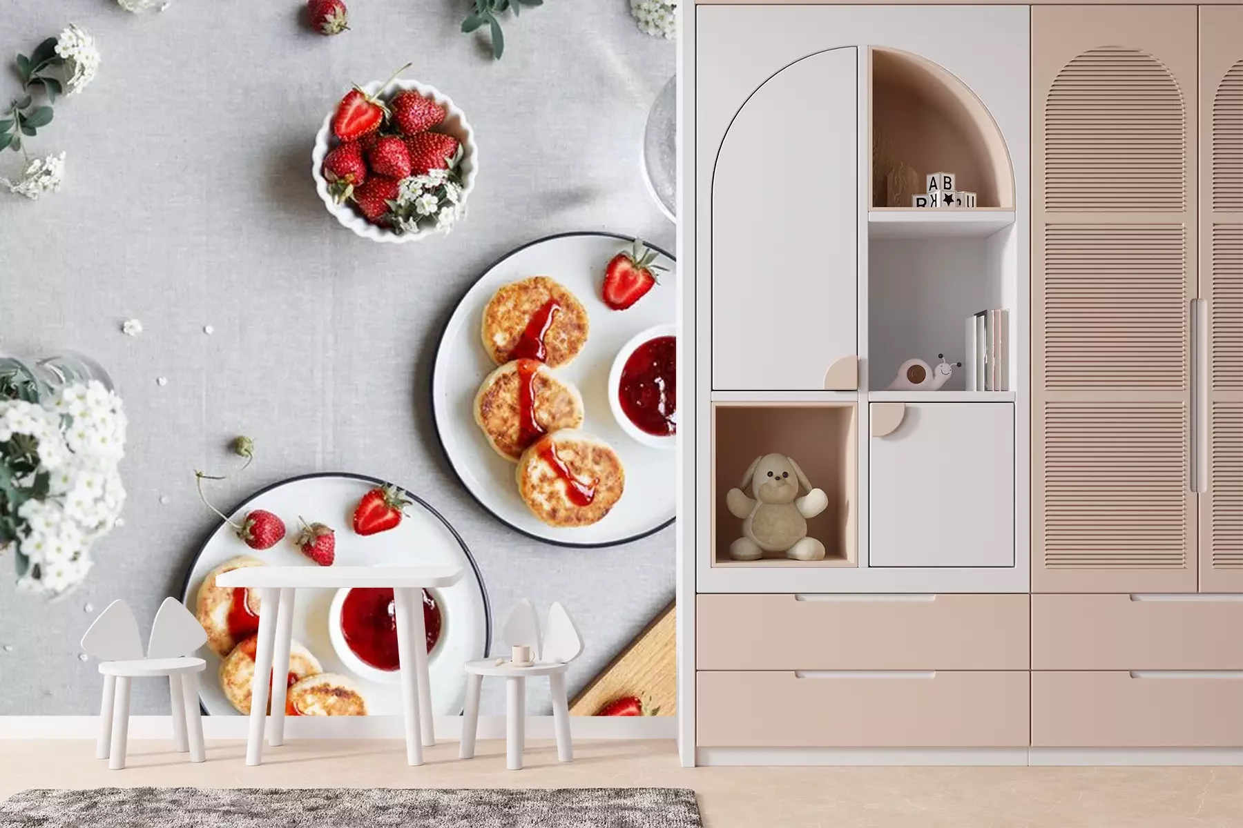 Fototapete Ukrainische Pfannkuchen mit Käse und Obst