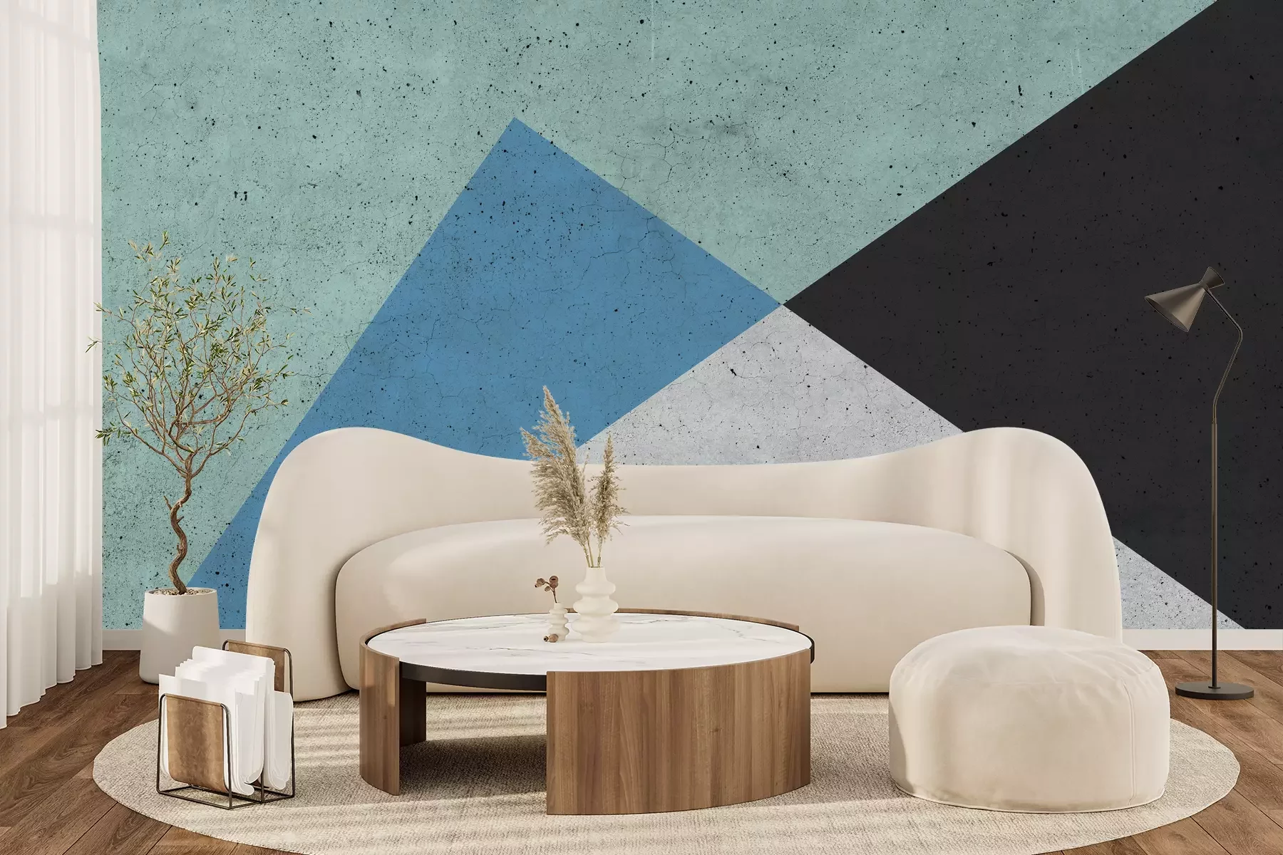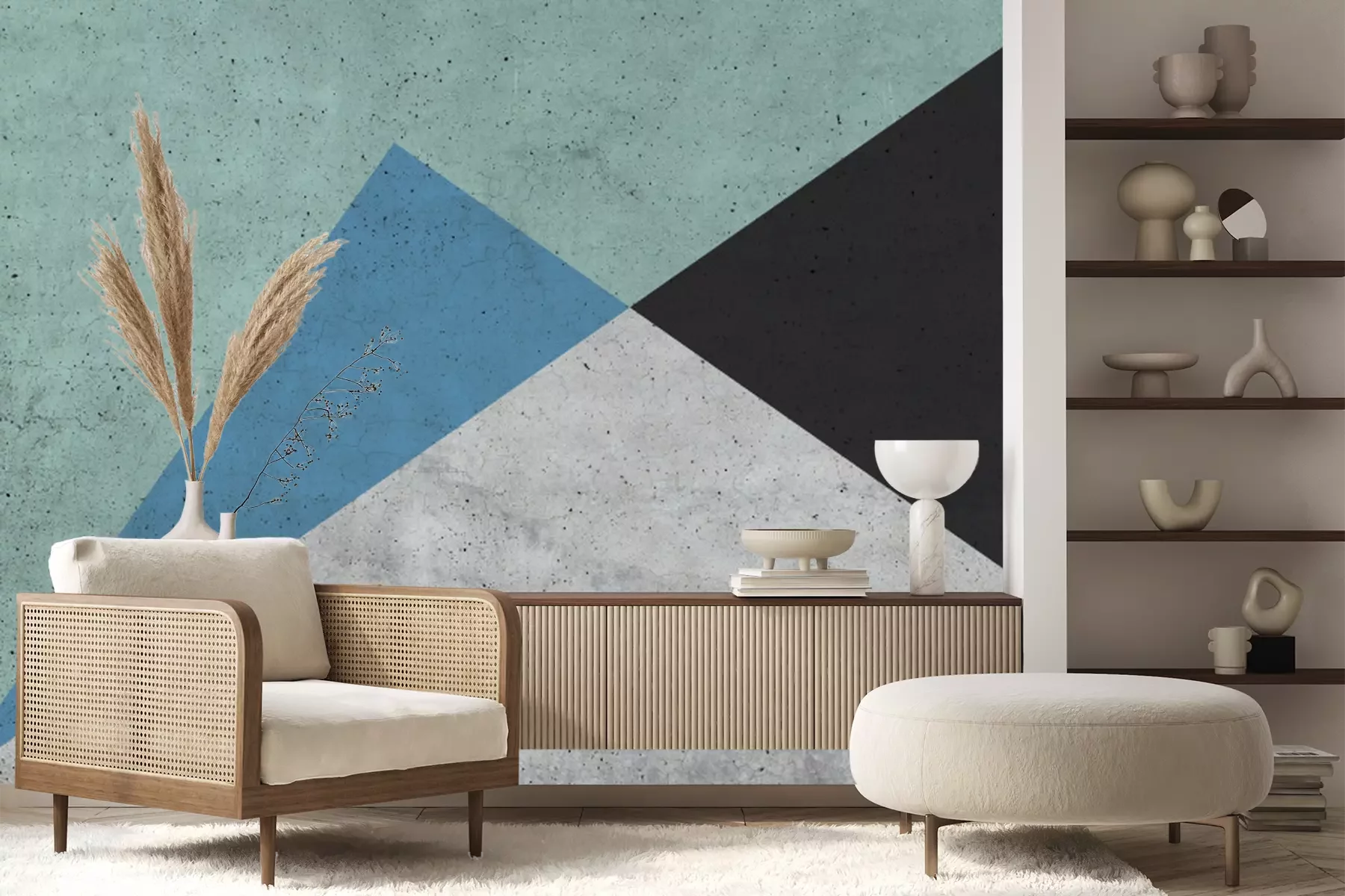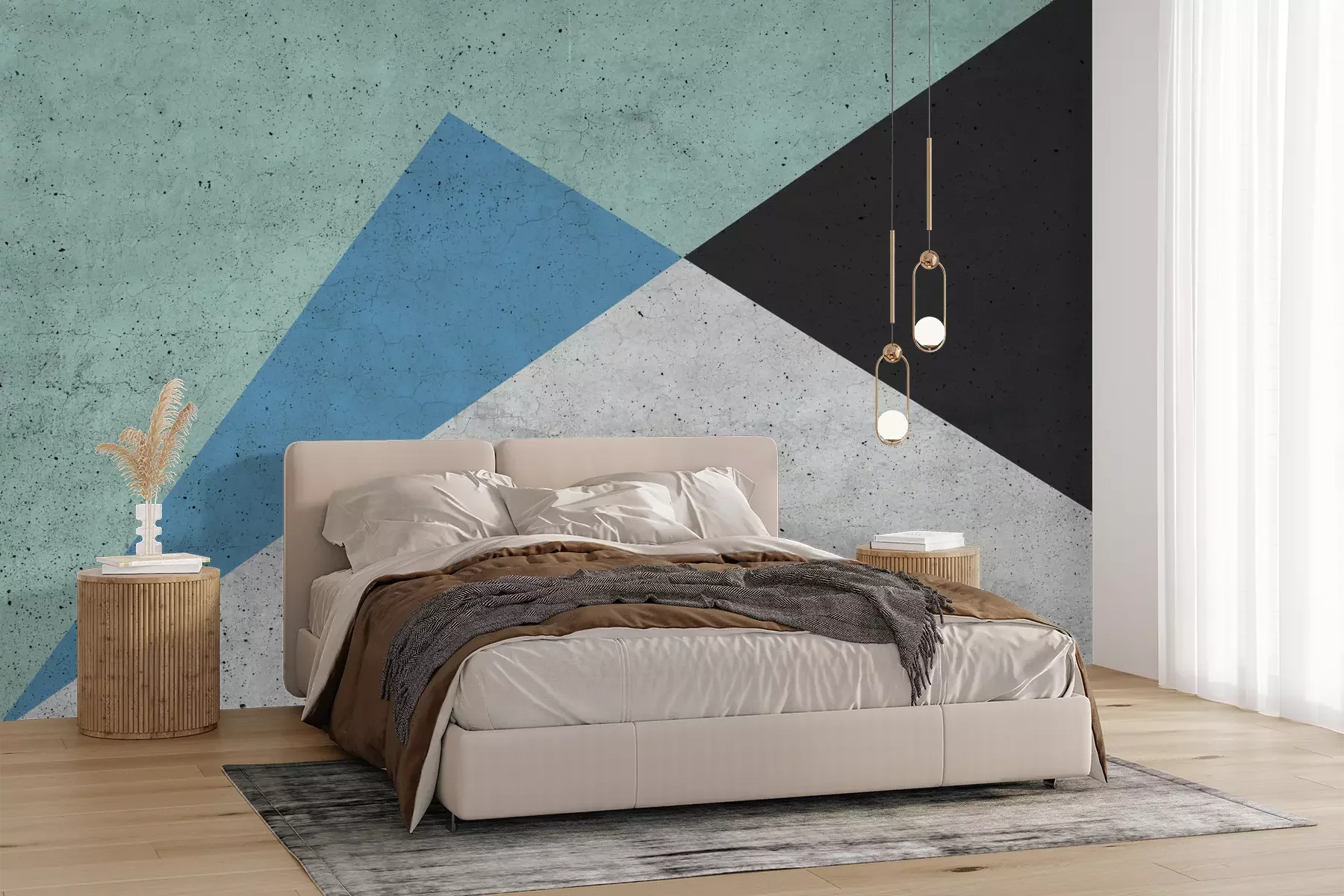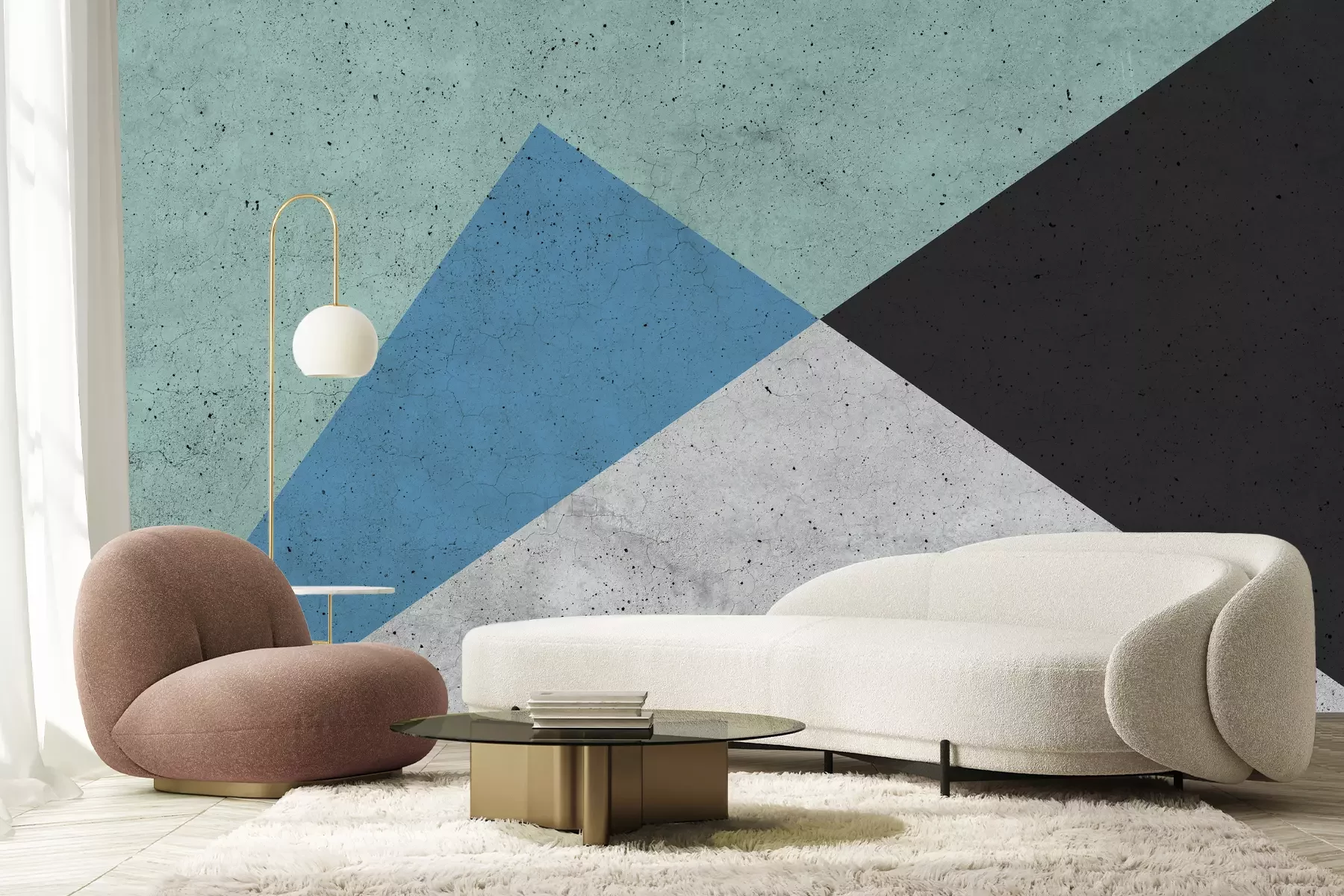 Ungleichseitige dreiecke mit grünem schwerpunkt auf betongrund