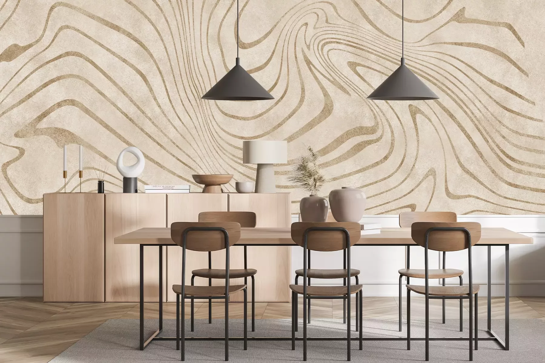 Das Material Premium+ besteht aus einer strukturierten Vinyl-Oberschicht und einem Trägermaterial (Vlies) mit einer Grammatur von 255 g/m², das kleine Unebenheiten der Wand zuverlässig kaschiert. Die feine Sandstruktur verleiht der Oberfläche eine luxuriöse Haptik, während das halbmatte Finish die Tiefe der Farben betont. Das Material ist dampfdurchlässig – so kann diese Fototapete auch in Küchen und Badezimmern eingesetzt werden. Die maximale Breite einer Tapetenbahn beträgt 100 cm. Bei größeren Abmessungen besteht die Fototapete aus mehreren gleich großen Bahnen. Der Kleber wird direkt auf die Wand aufgetragen, und die Fototapete wird auf Stoß angebracht, was für einen ästhetischen Effekt ohne sichtbare Fugen sorgt. Die Oberfläche ist pflegeleicht und kann bei Bedarf sanft mit einem feuchten Tuch abgewischt werden.