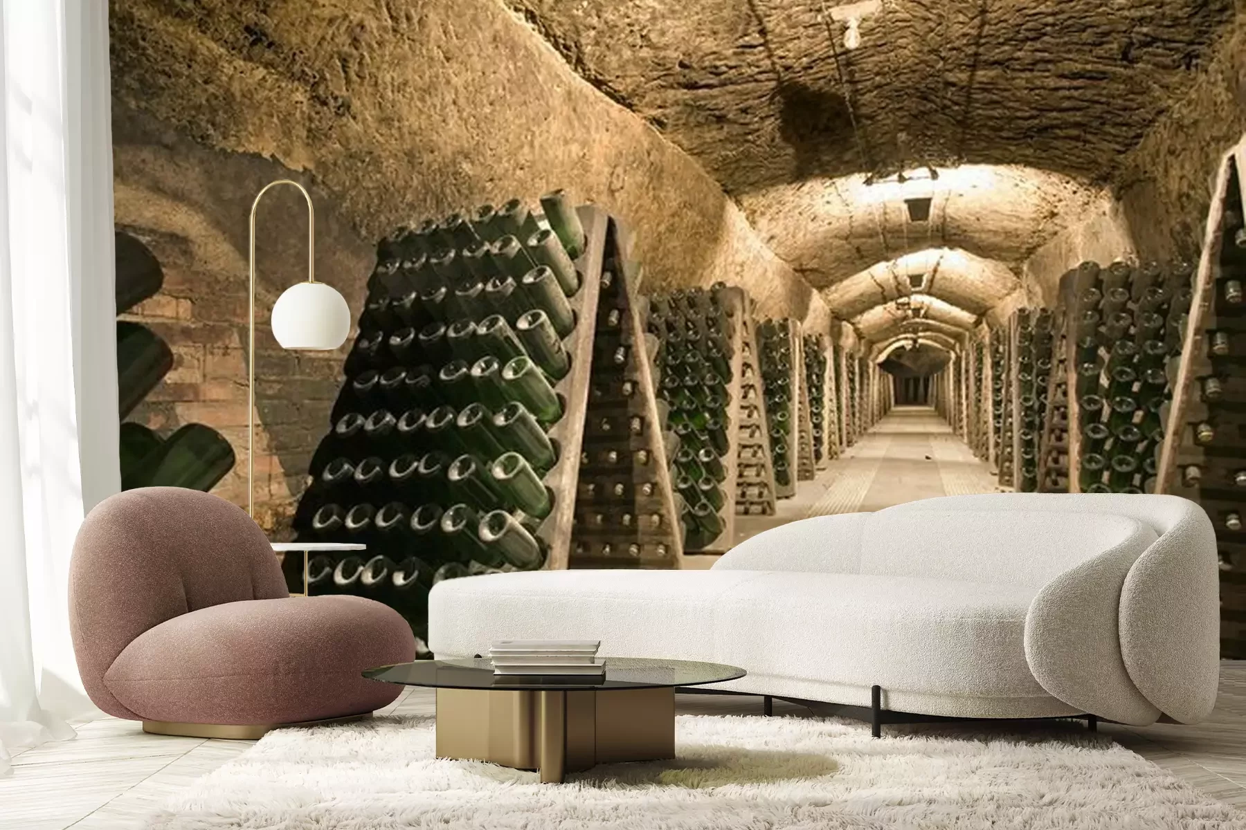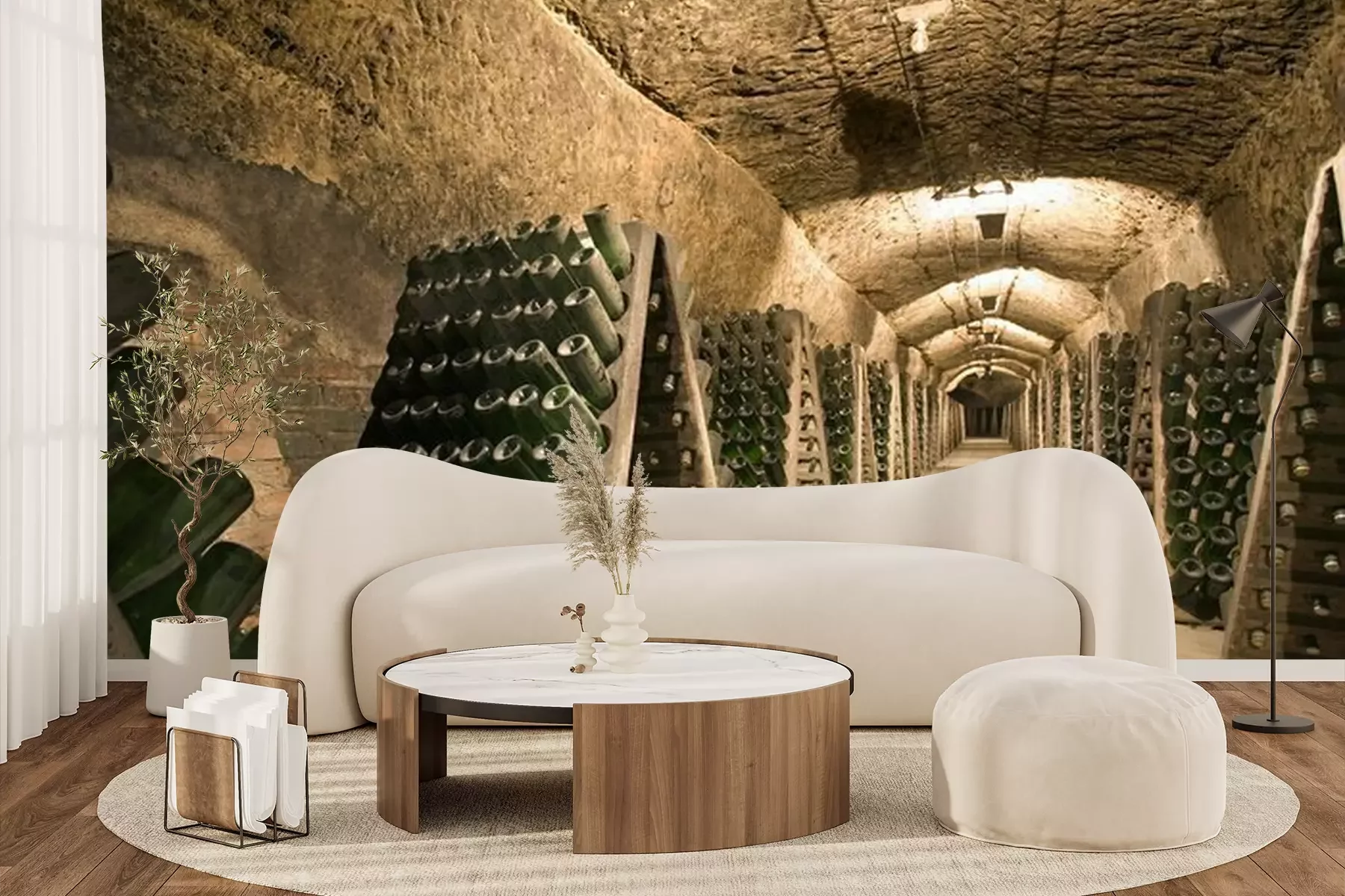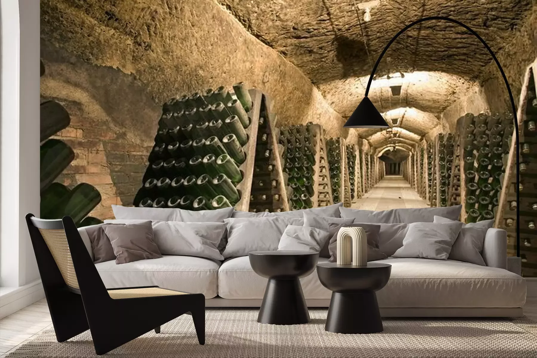 Fototapete Unterirdischer Keller mit Weinflaschen