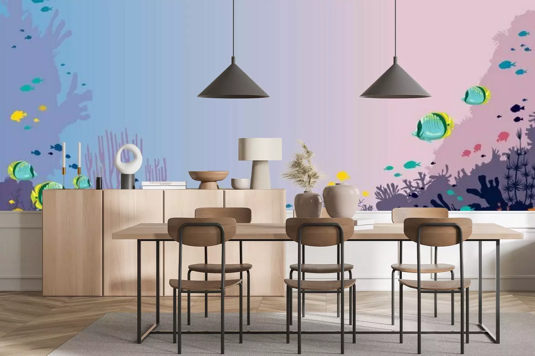 Fototapete Unterwasser-Ozeanboden im grafischen Stil