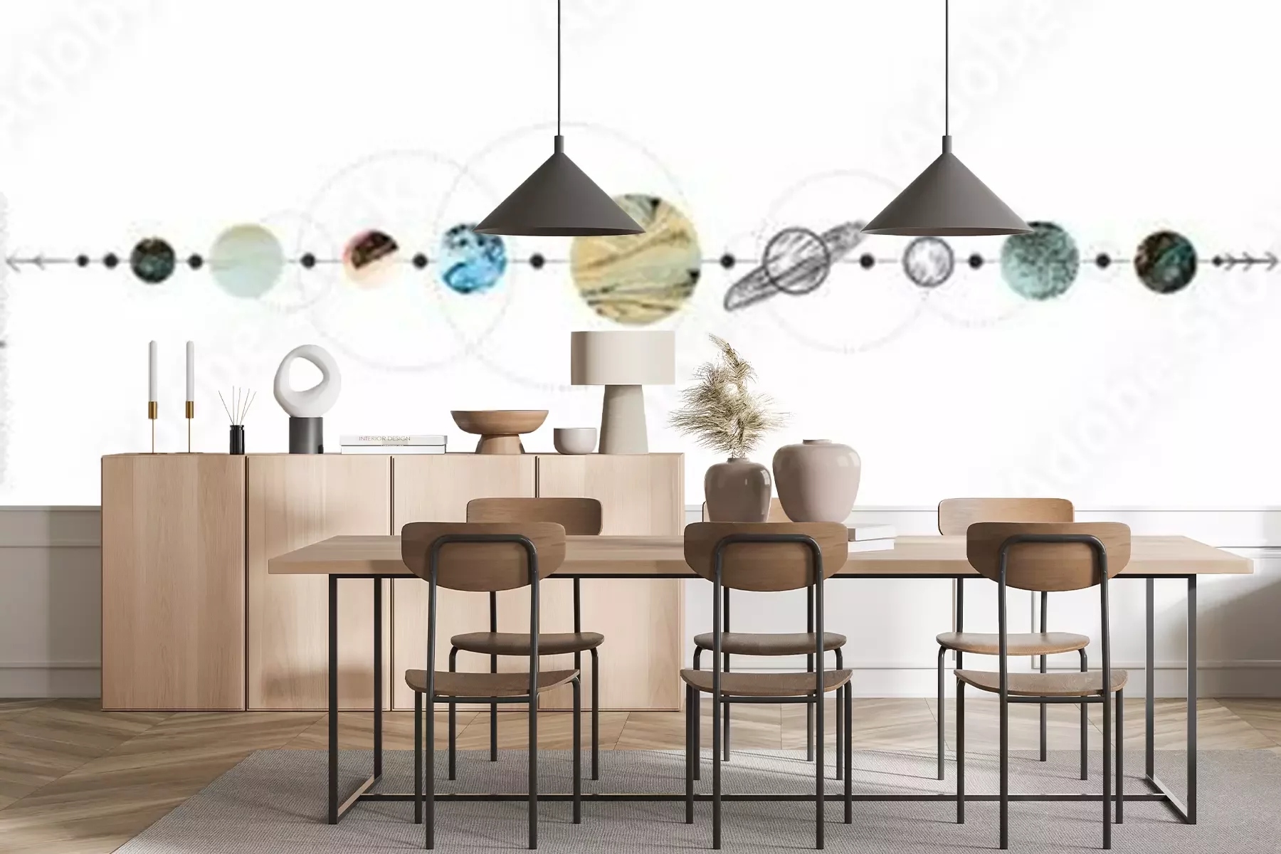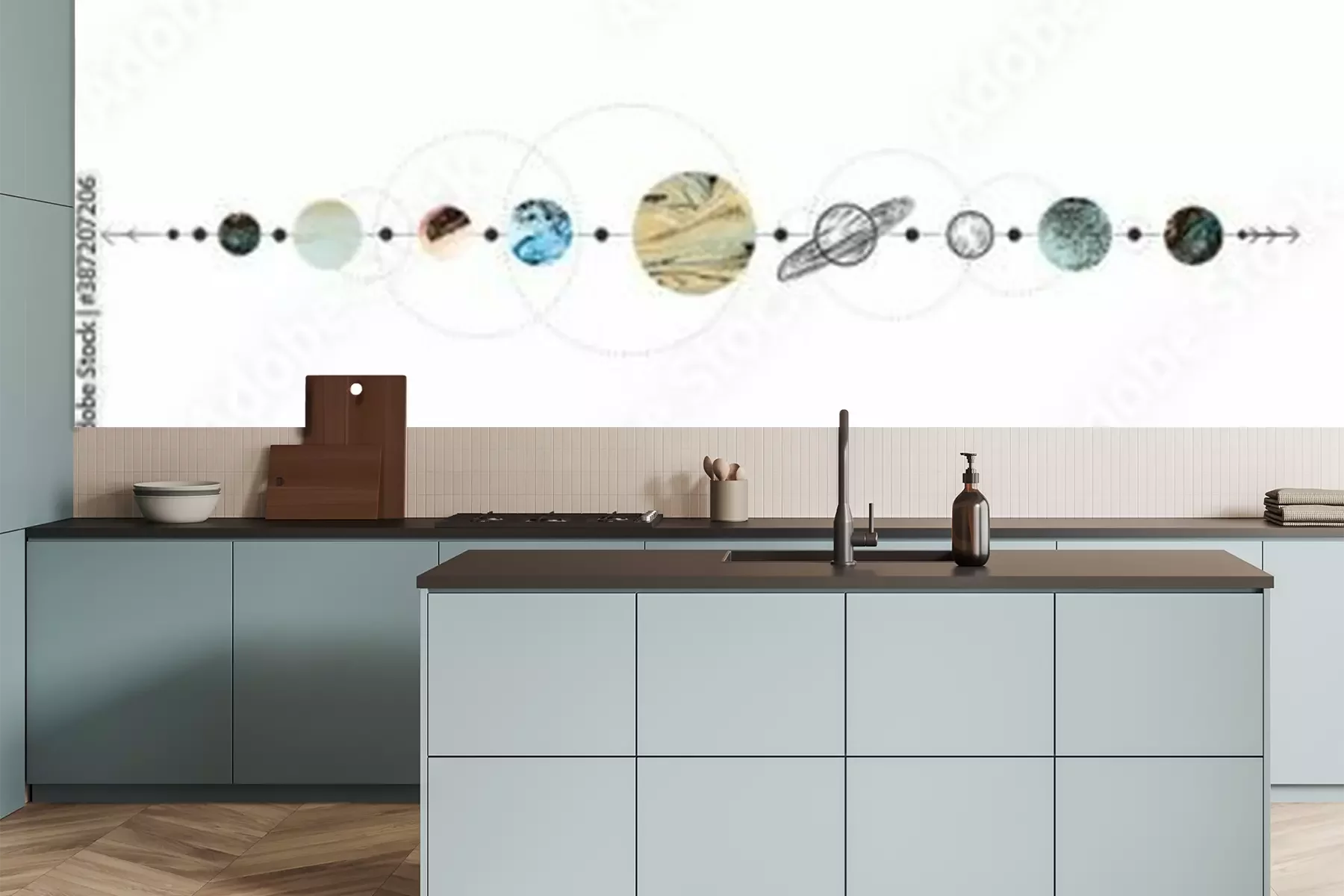 Fototapete Vector illustration set of moon phases. Different stages of moonlight activity in vintage engraving style. Zodiac Signs