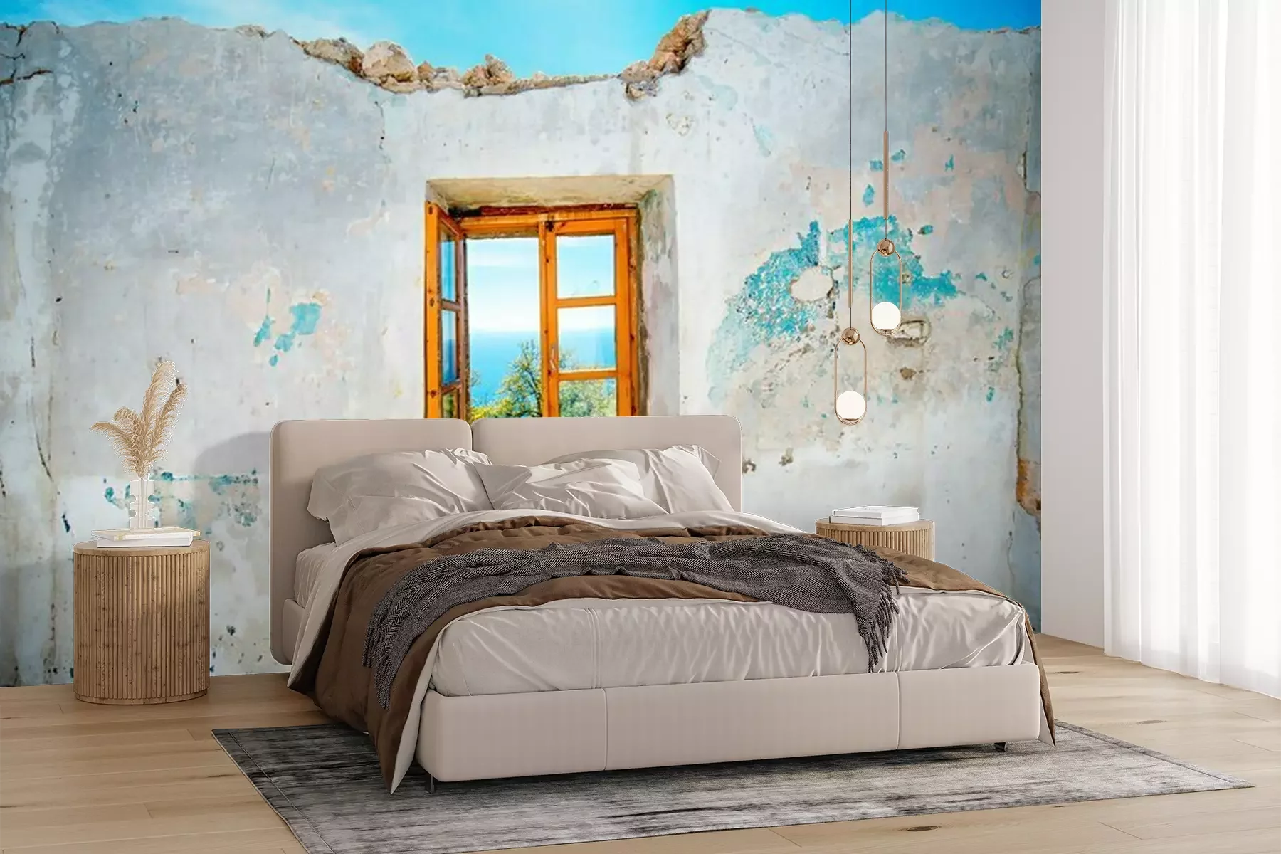 Die Fototapeten werden in Bahnen geliefert. Die Größe und die Anzahl der Bahnen, aus denen die gesamte Fototapete besteht, hängen vom gewählten Material ab. Wenn die Größe die maximale Breite des Materials überschreitet, besteht der Ausdruck aus mehreren gleich großen Bahnen.
