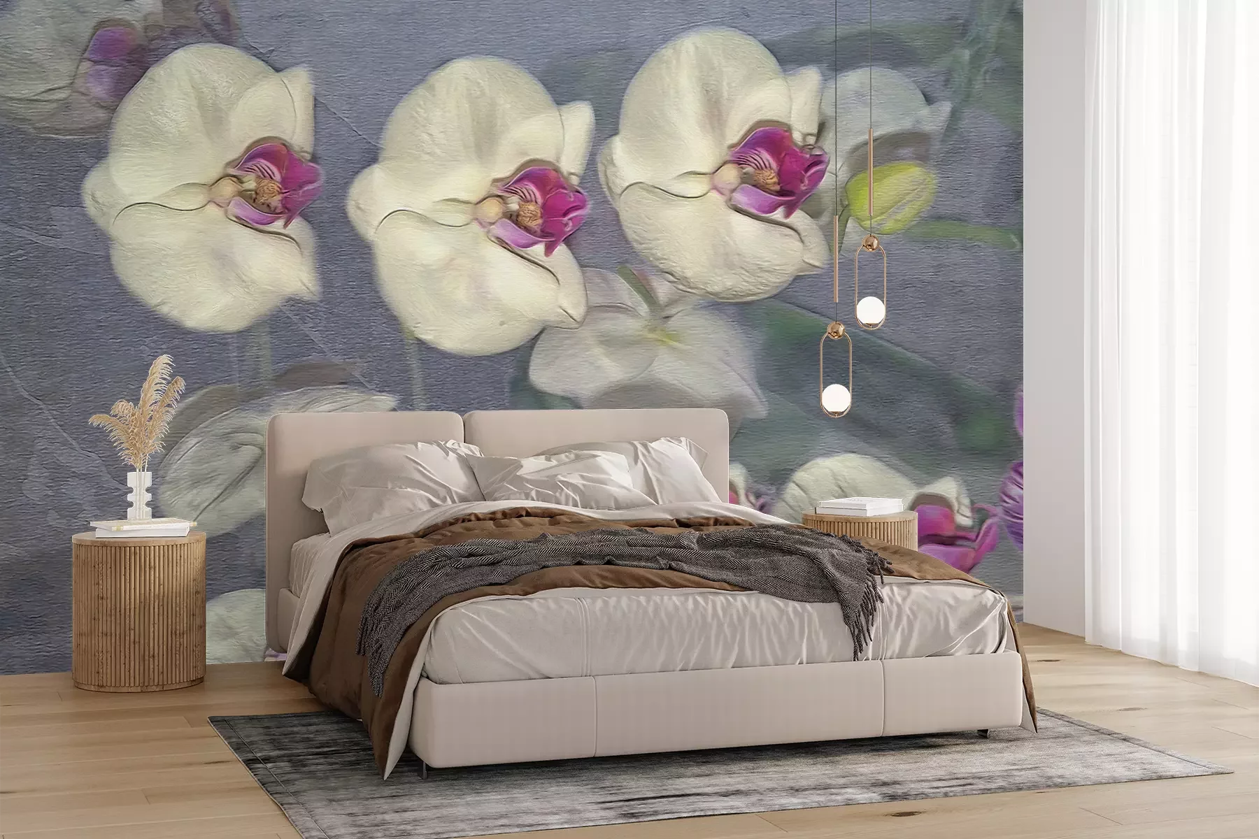 Die Fototapeten werden in Bahnen geliefert. Die Größe und die Anzahl der Bahnen, aus denen die gesamte Fototapete besteht, hängen vom gewählten Material ab. Wenn die Größe die maximale Breite des Materials überschreitet, besteht der Ausdruck aus mehreren gleich großen Bahnen.