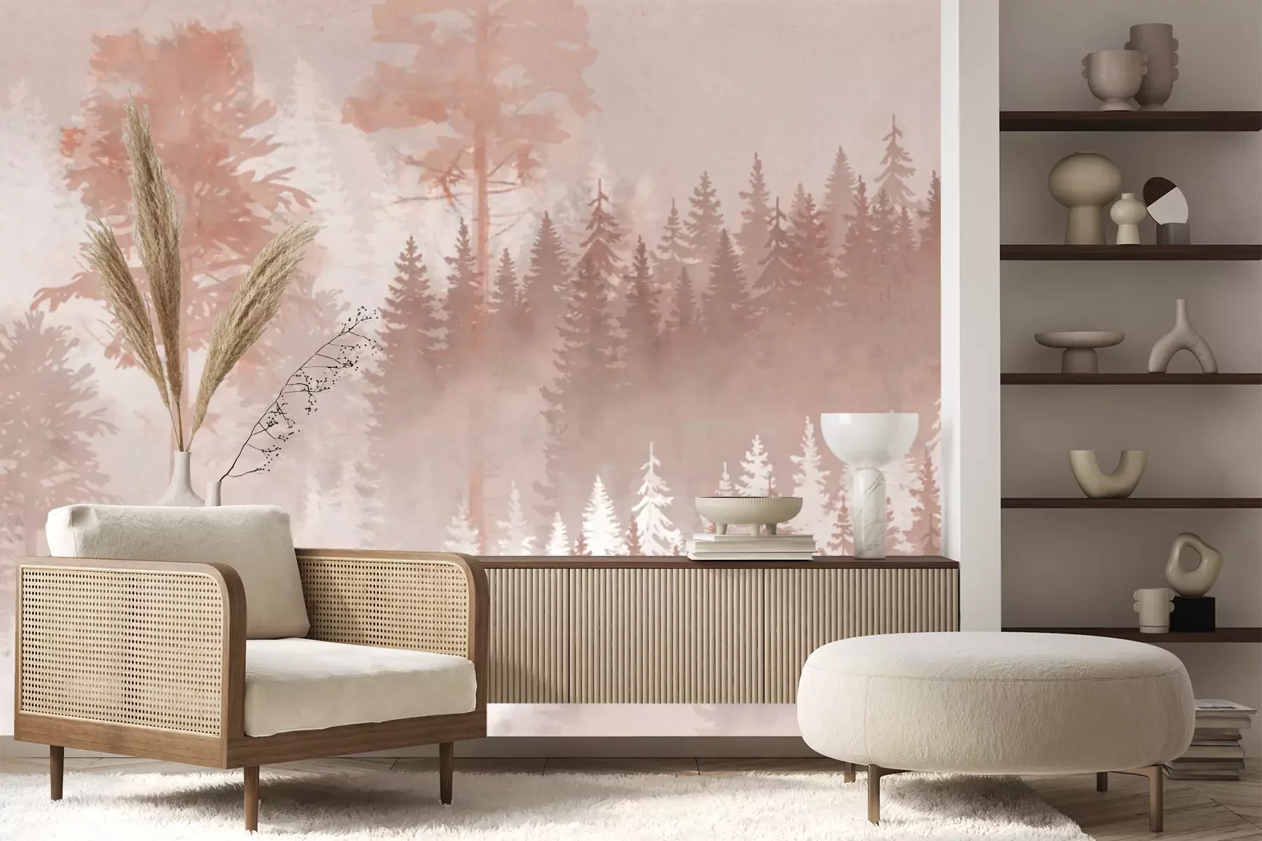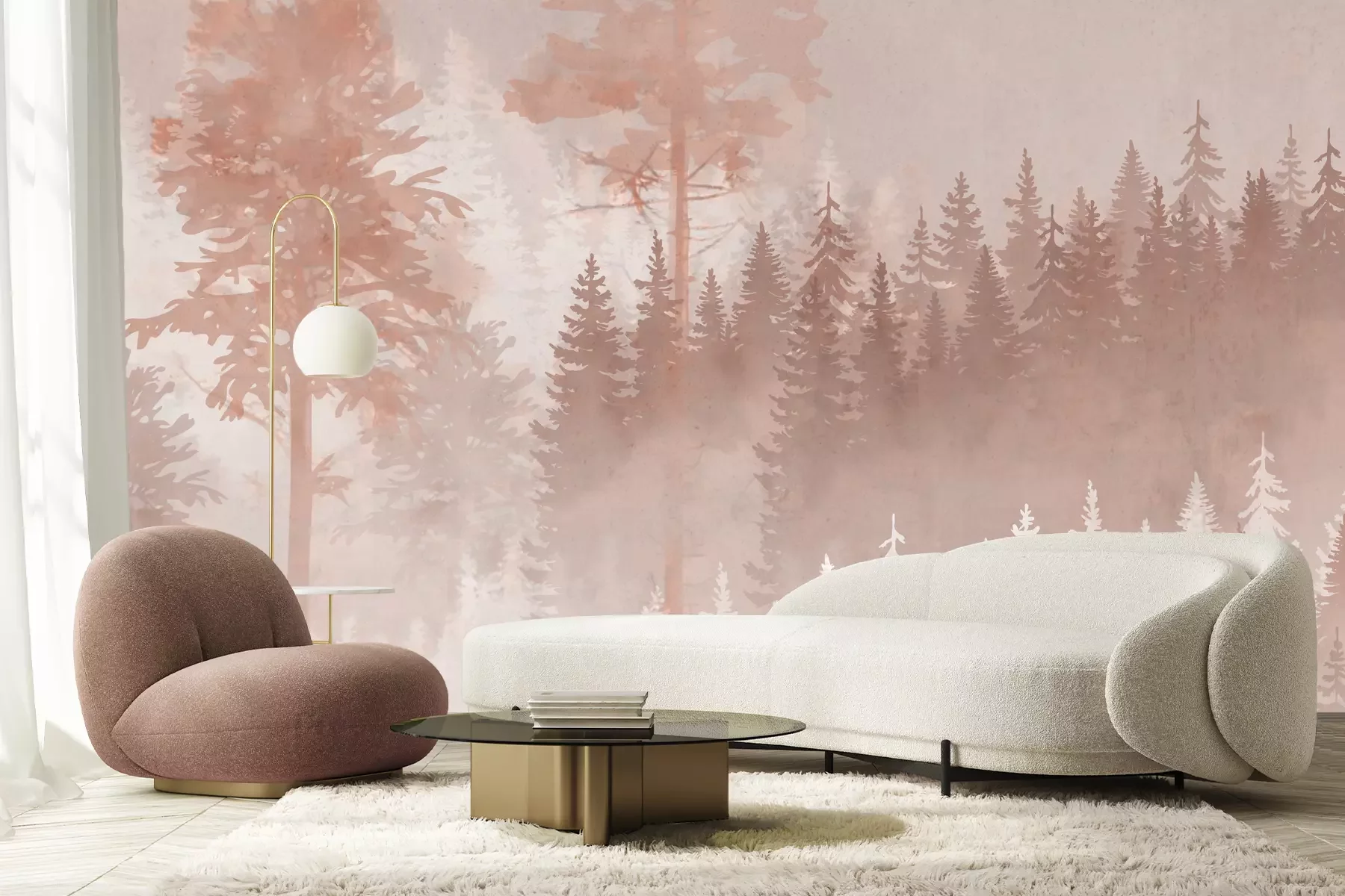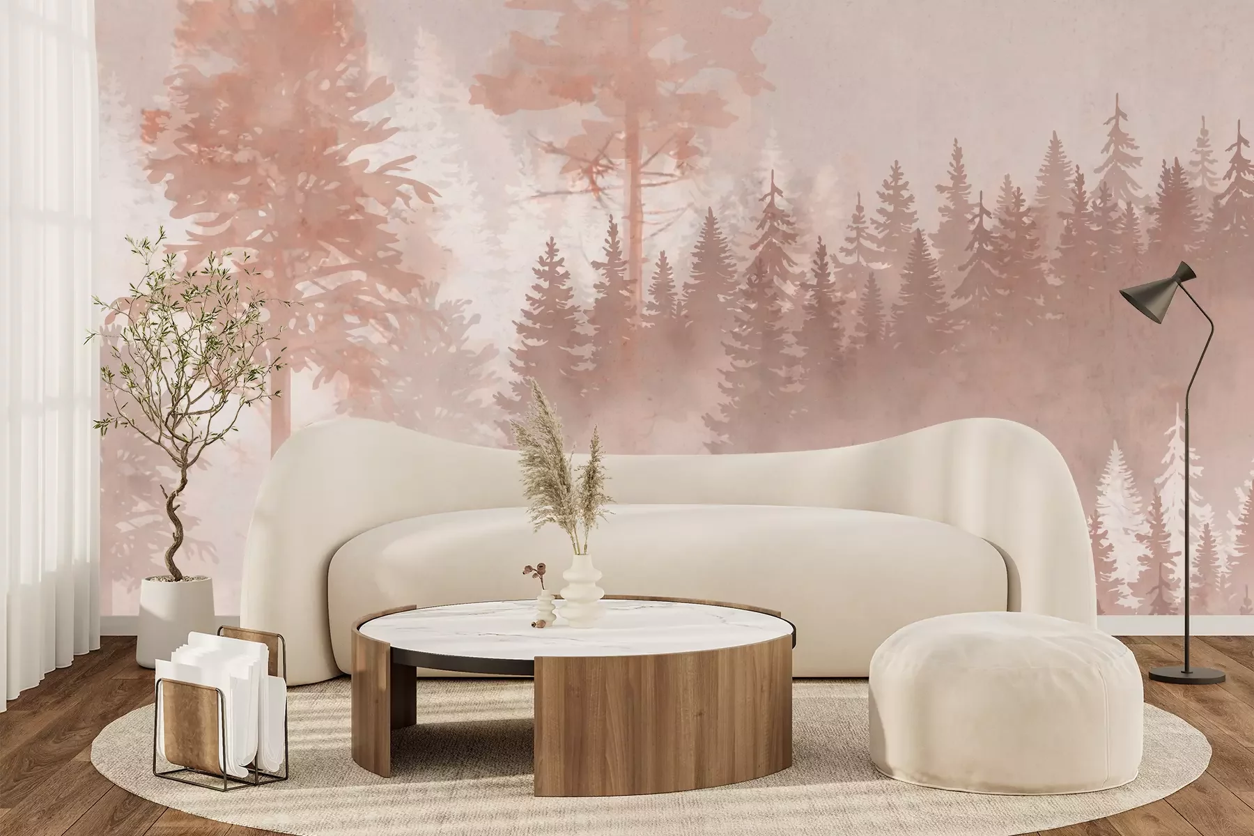 Verschwommener wald, aquarell-landschaft