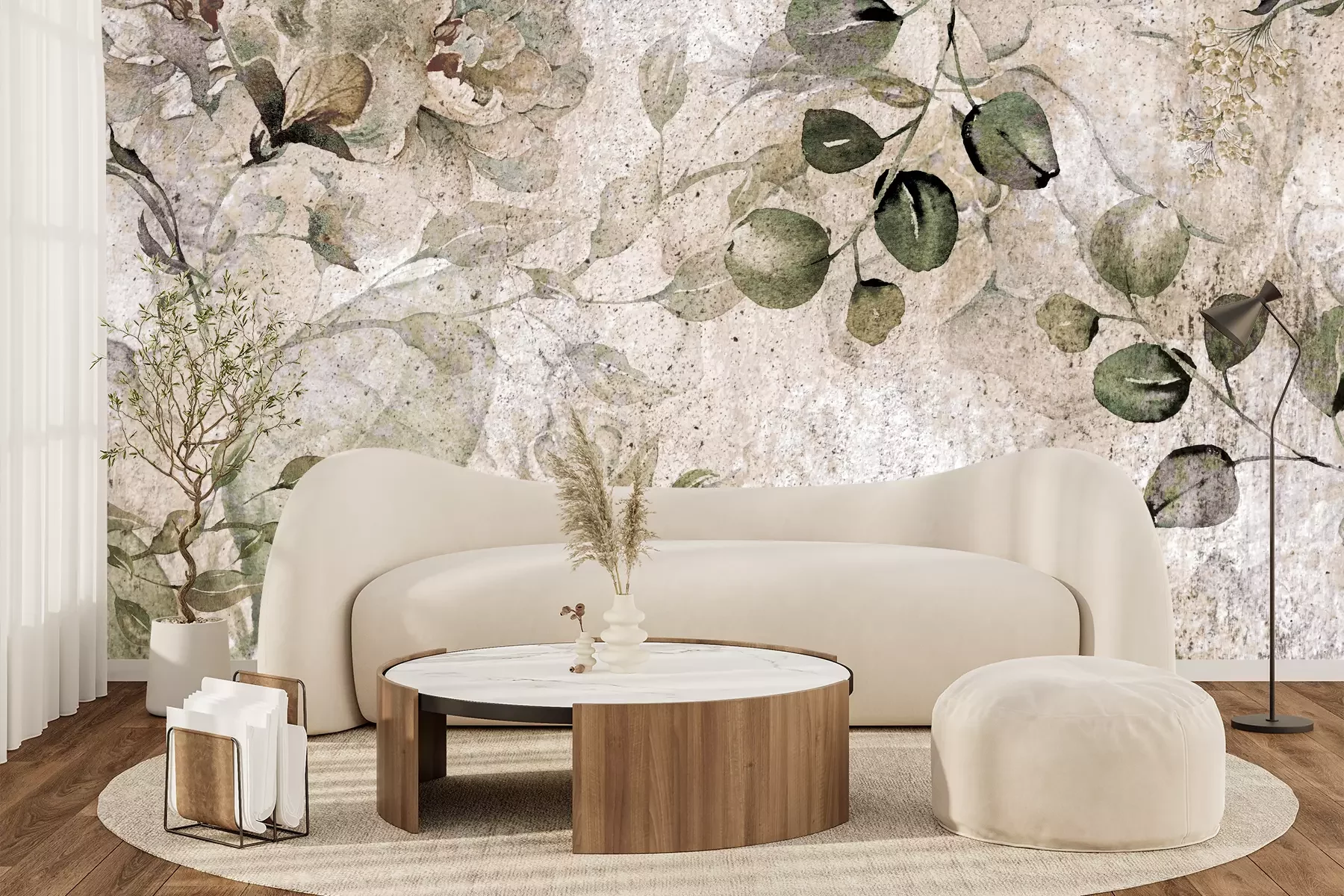 *Der Rabatt gilt nicht für Klebstoffe, Zubehör und Geschenkkarten.Die Fototapete Rustikal aus unserer Kollektion ist ein besonders originelles Beispiel für Wanddekoration, die schon auf den ersten Blick durch ihren künstlerischen Charakter begeistert. Der sorgfältig gealterte Druck vermittelt den Eindruck eines authentischen Freskos auf einer Putzschicht mit unregelmäßiger Struktur. Dieser Effekt verleiht der Komposition Tiefe und lässt das Muster besonders realistisch wirken. Die Fototapete Vintage bringt eine gemütliche, harmonische Atmosphäre in den Raum, während das botanische Motiv mit malerisch gestalteten Zweigen dem Ganzen eine gewisse Leichtigkeit und subtile Eleganz verleiht. Trotz der gealterten Ästhetik überrascht dieses Design durch seine Vielseitigkeit – es passt perfekt zu unterschiedlichsten Einrichtungsstilen. Es ist eine ideale Lösung für Räume im rustikalen oder Boho-Stil, die nach wie vor sehr beliebt sind, aber auch für Wabi-Sabi-Interieurs, inspiriert von der japanischen Philosophie der Schönheit natürlicher Alterung. Erwähnenswert ist auch, dass sich dieses Muster hervorragend für den beliebten industriellen Stil eignet – besonders als Fototapete. Betonoptik, verziert mit zarten grünen Blättern, bringt Abwechslung in den Raum und fügt eine warme, natürliche Note hinzu. Da von der Natur inspirierte Motive zeitlos sind, wird dieses Design über viele Jahre hinweg Freude bereiten – unabhängig von wechselnden Trends. Dank der hervorragenden Materialqualität passt sie in jeden Raum des Hauses – unsere Fototapete. Blätter verschönern sowohl ein elegantes Wohnzimmer oder ein gemütliches Schlafzimmer als auch den Flur, die Küche oder sogar das Badezimmer und schaffen überall eine warme, entspannte Atmosphäre.