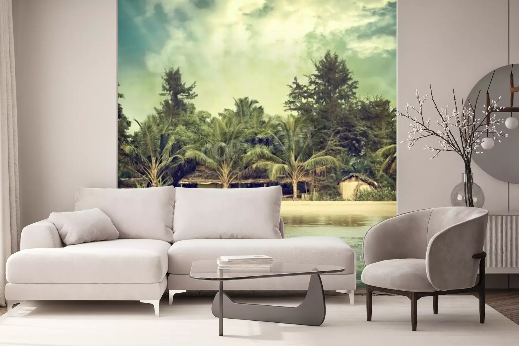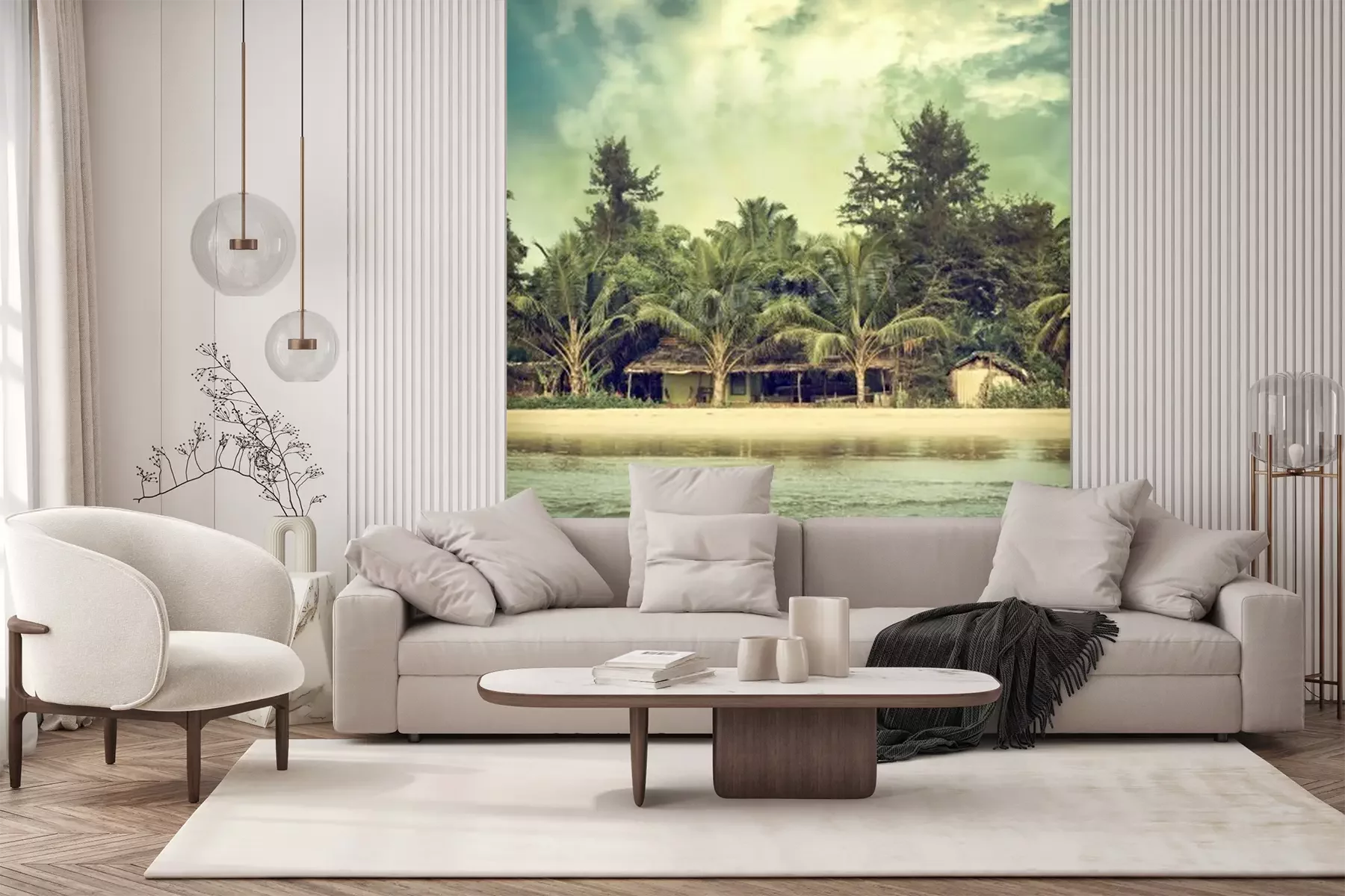 Fototapete Vintage-Blick vom Meer auf den Strand