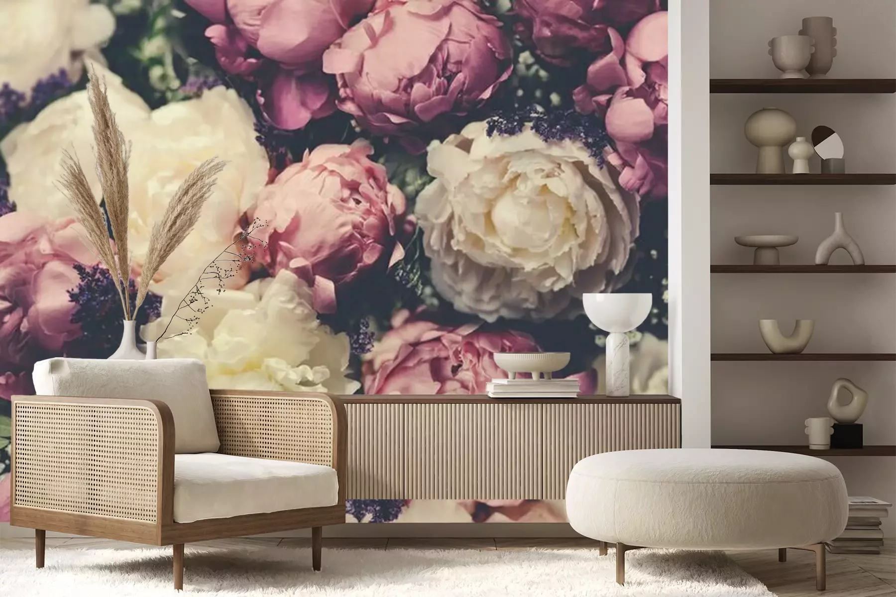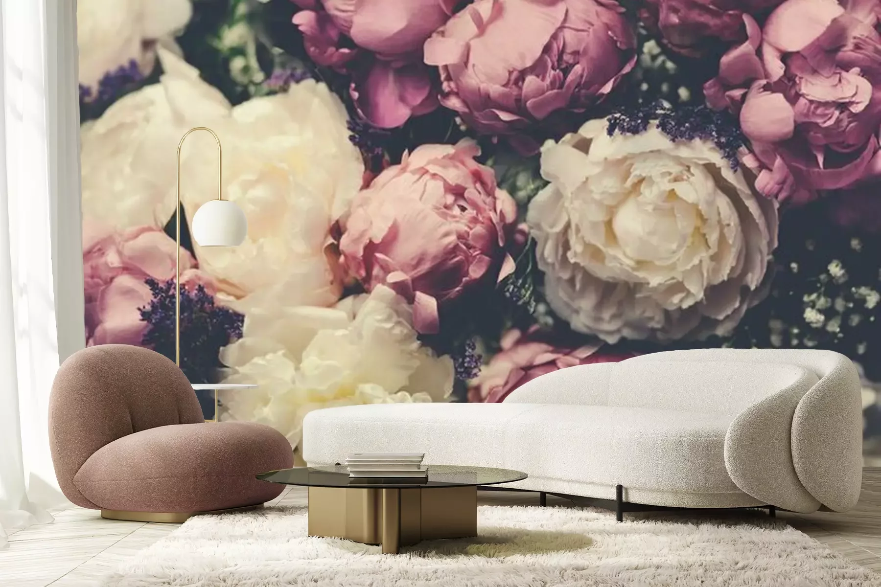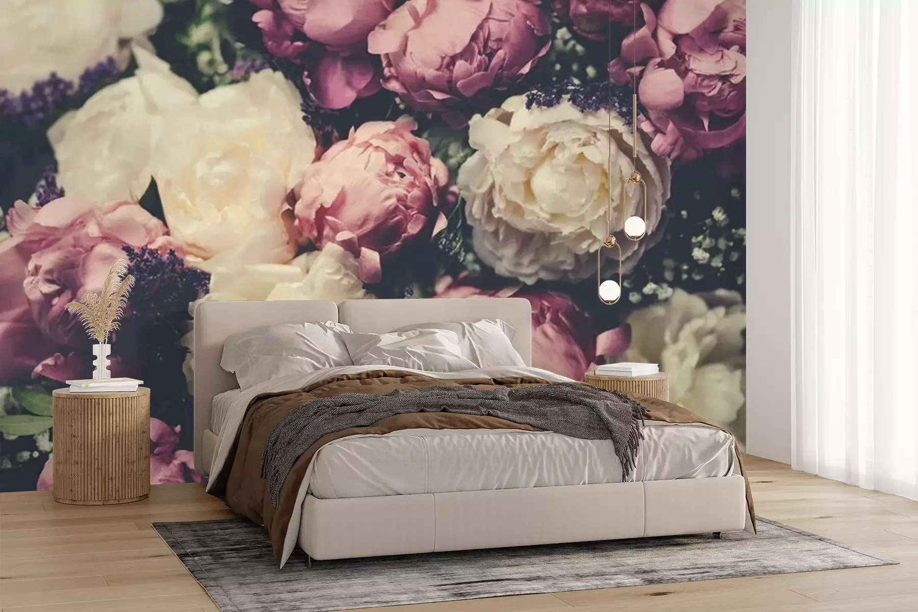 Vintage-Pfingstrosen und SchleierkrautProblemlose Lieferung durch vertrauenswürdige Spediteure