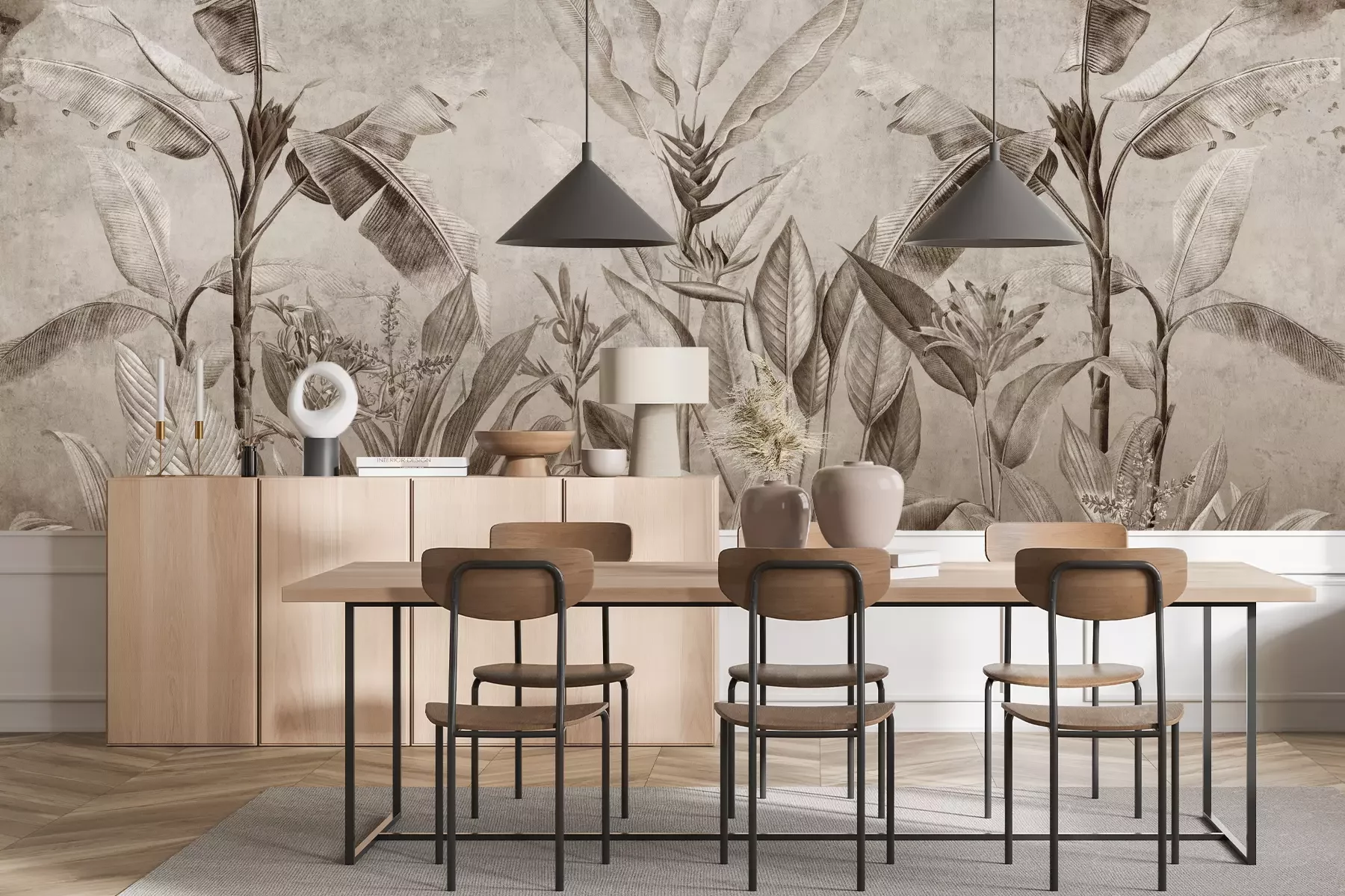 Das Material Premium+ besteht aus einer strukturierten Vinyl-Oberschicht und einem Trägermaterial (Vlies) mit einer Grammatur von 255 g/m², das kleine Unebenheiten der Wand zuverlässig kaschiert. Die feine Sandstruktur verleiht der Oberfläche eine luxuriöse Haptik, während das halbmatte Finish die Tiefe der Farben betont. Das Material ist dampfdurchlässig – so kann diese Fototapete auch in Küchen und Badezimmern eingesetzt werden. Die maximale Breite einer Tapetenbahn beträgt 100 cm. Bei größeren Abmessungen besteht die Fototapete aus mehreren gleich großen Bahnen. Der Kleber wird direkt auf die Wand aufgetragen, und die Fototapete wird auf Stoß angebracht, was für einen ästhetischen Effekt ohne sichtbare Fugen sorgt. Die Oberfläche ist pflegeleicht und kann bei Bedarf sanft mit einem feuchten Tuch abgewischt werden.