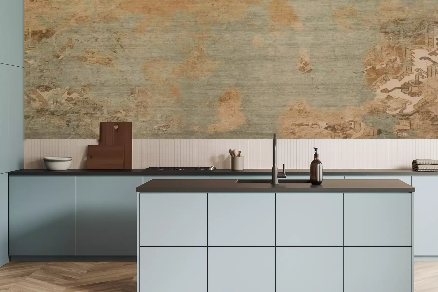Das Material Premium+ besteht aus einer strukturierten Vinyl-Oberschicht und einem Trägermaterial (Vlies) mit einer Grammatur von 255 g/m², das kleine Unebenheiten der Wand zuverlässig kaschiert. Die feine Sandstruktur verleiht der Oberfläche eine luxuriöse Haptik, während das halbmatte Finish die Tiefe der Farben betont. Das Material ist dampfdurchlässig – so kann diese Fototapete auch in Küchen und Badezimmern eingesetzt werden. Die maximale Breite einer Tapetenbahn beträgt 100 cm. Bei größeren Abmessungen besteht die Fototapete aus mehreren gleich großen Bahnen. Der Kleber wird direkt auf die Wand aufgetragen, und die Fototapete wird auf Stoß angebracht, was für einen ästhetischen Effekt ohne sichtbare Fugen sorgt. Die Oberfläche ist pflegeleicht und kann bei Bedarf sanft mit einem feuchten Tuch abgewischt werden.