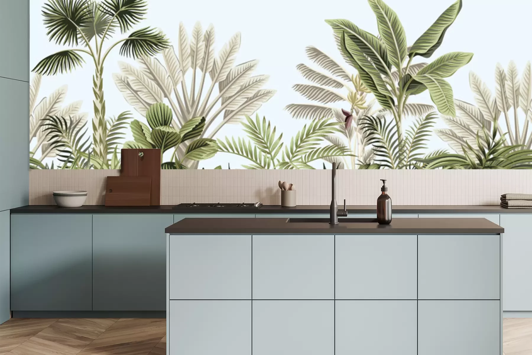 Fototapete Vintagepflanzen auf blauem Hintergrund