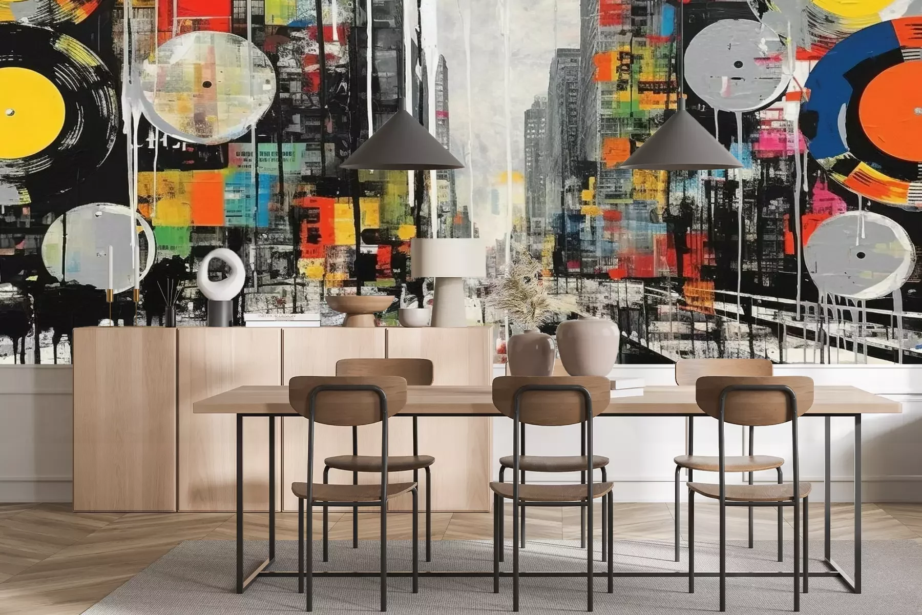 Graffiti mit Schallplatten im Pop-Art-StilFototapete