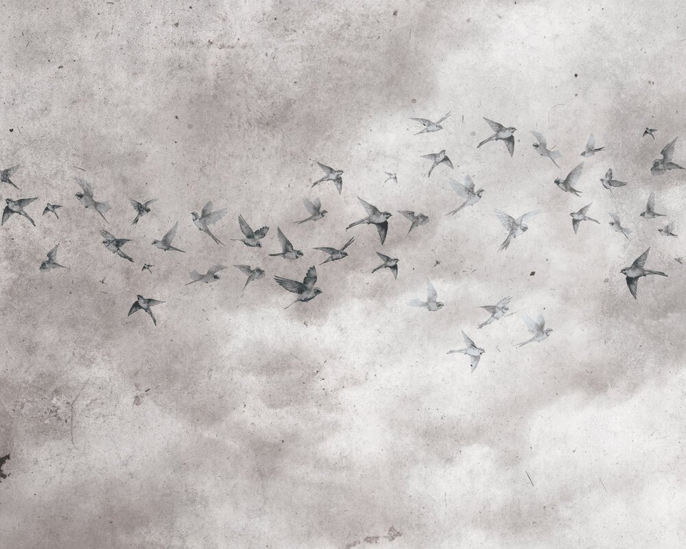 Fototapete: Vögel am Himmel mit einer Betonstruktur