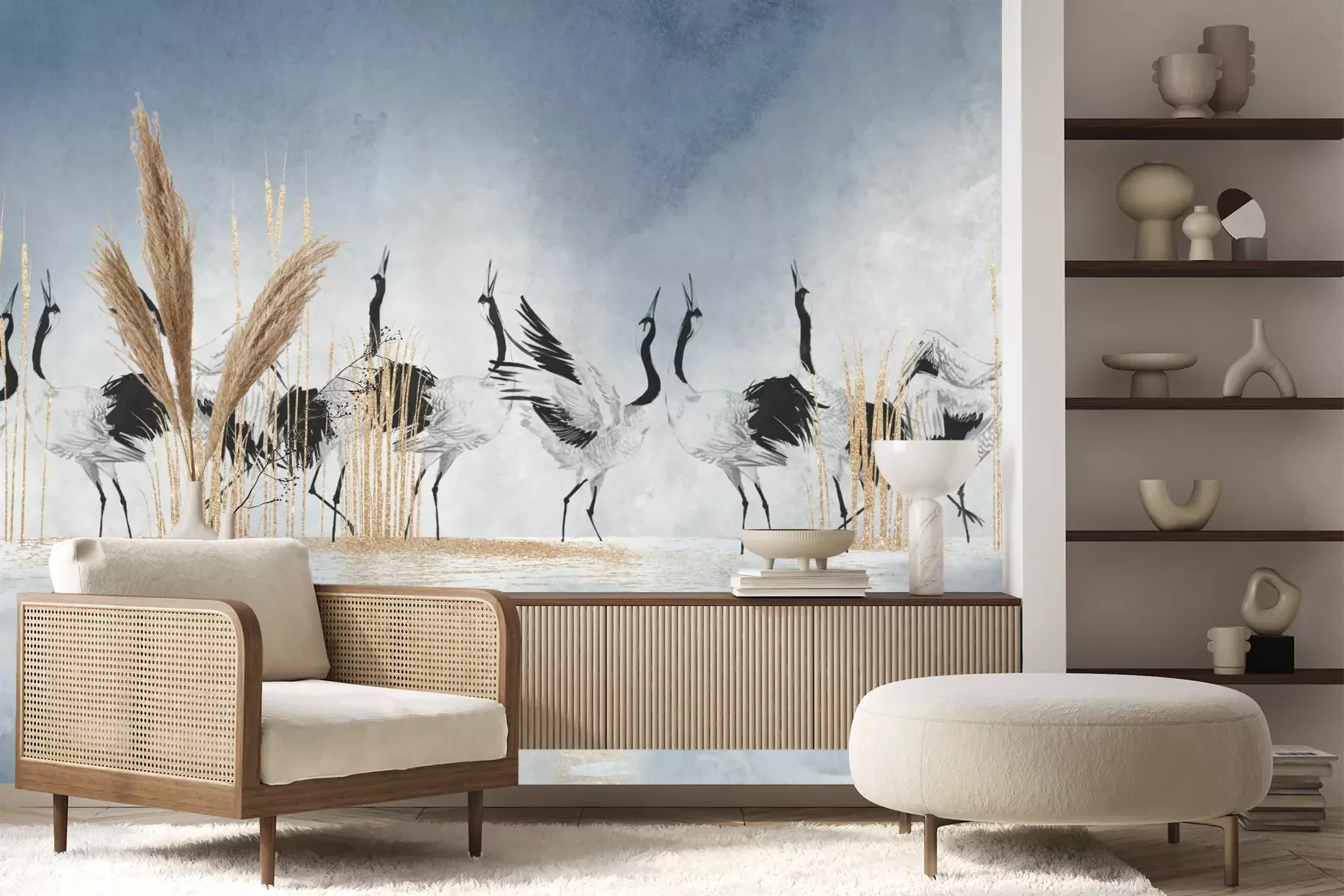 Das Material Premium+ besteht aus einer strukturierten Vinyl-Oberschicht und einem Trägermaterial (Vlies) mit einer Grammatur von 255 g/m², das kleine Unebenheiten der Wand zuverlässig kaschiert. Die feine Sandstruktur verleiht der Oberfläche eine luxuriöse Haptik, während das halbmatte Finish die Tiefe der Farben betont. Das Material ist dampfdurchlässig – so kann diese Fototapete auch in Küchen und Badezimmern eingesetzt werden. Die maximale Breite einer Tapetenbahn beträgt 100 cm. Bei größeren Abmessungen besteht die Fototapete aus mehreren gleich großen Bahnen. Der Kleber wird direkt auf die Wand aufgetragen, und die Fototapete wird auf Stoß angebracht, was für einen ästhetischen Effekt ohne sichtbare Fugen sorgt. Die Oberfläche ist pflegeleicht und kann bei Bedarf sanft mit einem feuchten Tuch abgewischt werden.