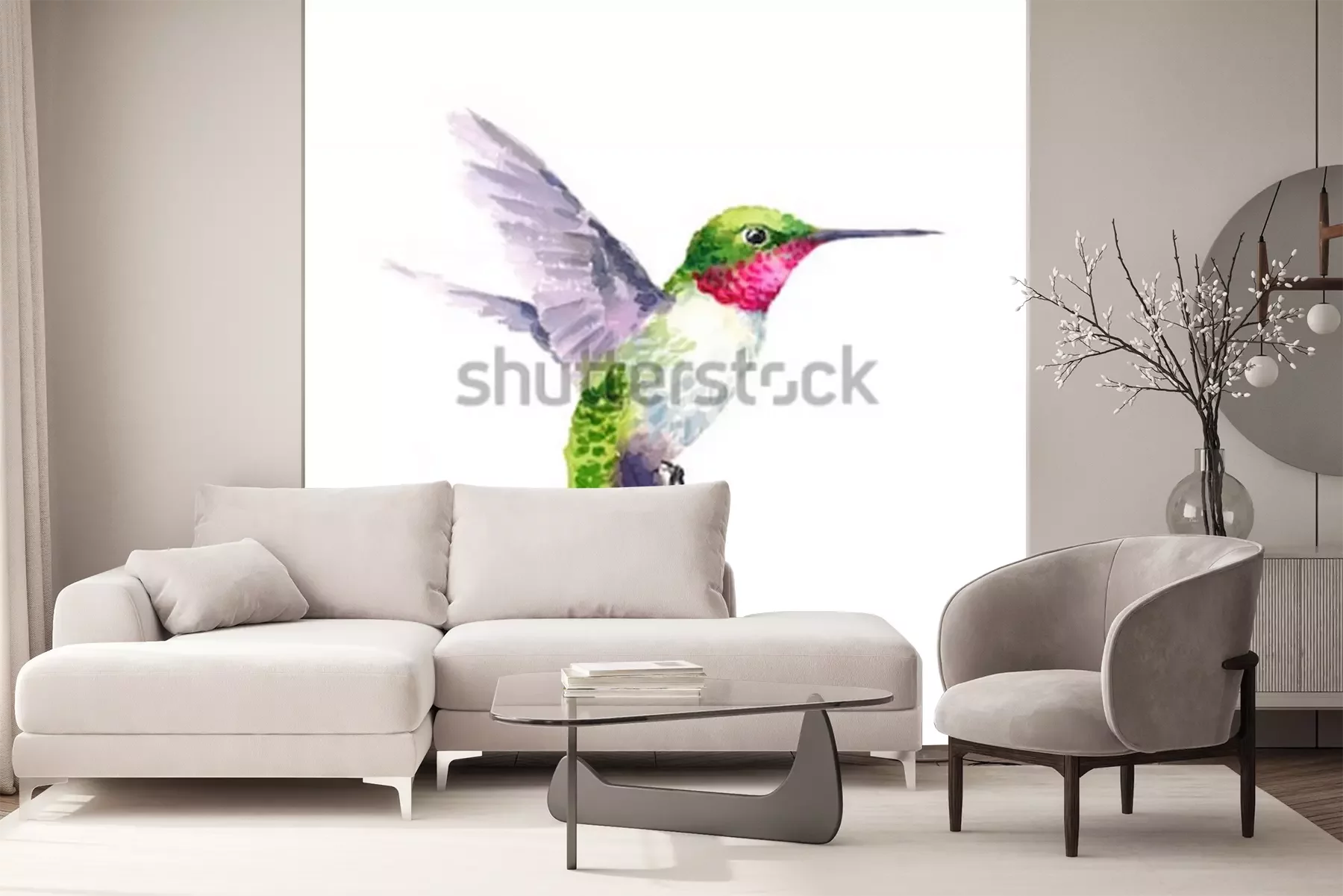 Fototapete Vogel in Bewegung vor einem hellen Hintergrund