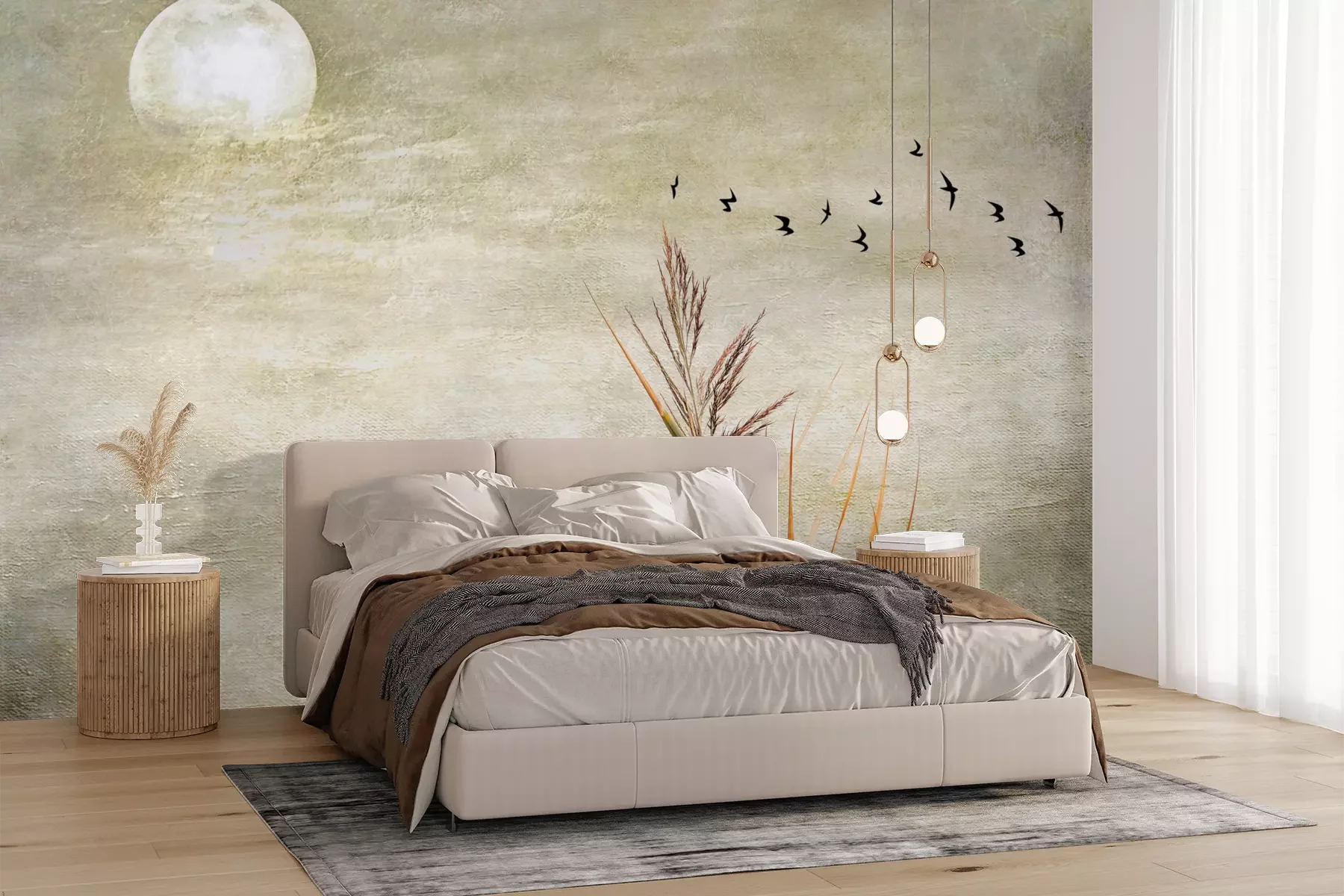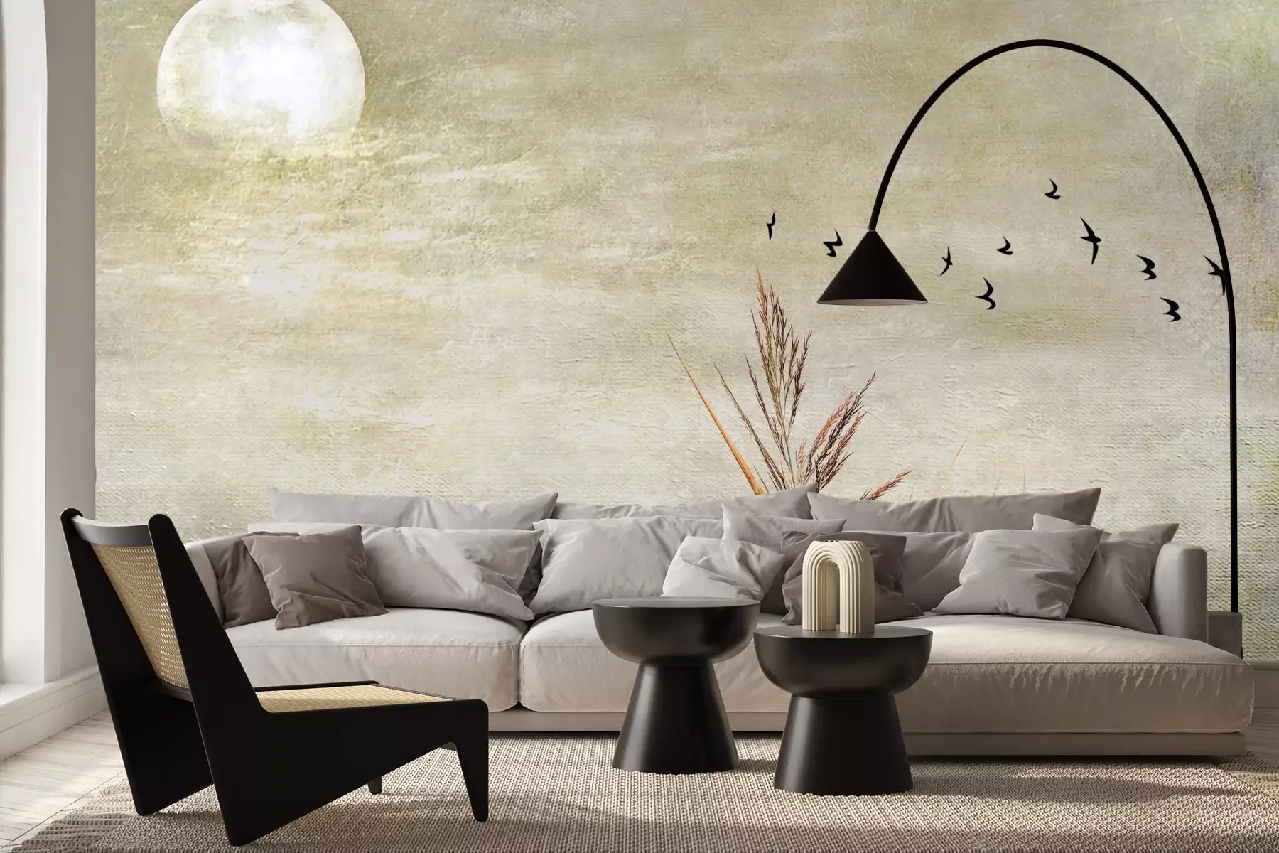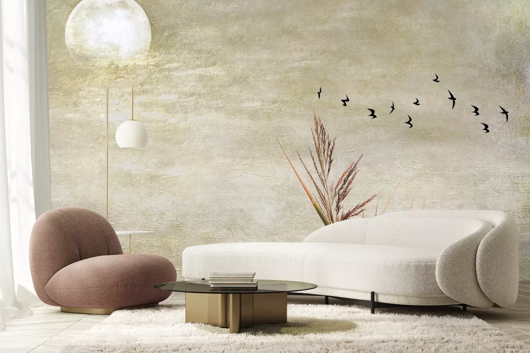 Das Material Premium+ besteht aus einer strukturierten Vinyl-Oberschicht und einem Trägermaterial (Vlies) mit einer Grammatur von 255 g/m², das kleine Unebenheiten der Wand zuverlässig kaschiert. Die feine Sandstruktur verleiht der Oberfläche eine luxuriöse Haptik, während das halbmatte Finish die Tiefe der Farben betont. Das Material ist dampfdurchlässig – so kann diese Fototapete auch in Küchen und Badezimmern eingesetzt werden. Die maximale Breite einer Tapetenbahn beträgt 100 cm. Bei größeren Abmessungen besteht die Fototapete aus mehreren gleich großen Bahnen. Der Kleber wird direkt auf die Wand aufgetragen, und die Fototapete wird auf Stoß angebracht, was für einen ästhetischen Effekt ohne sichtbare Fugen sorgt. Die Oberfläche ist pflegeleicht und kann bei Bedarf sanft mit einem feuchten Tuch abgewischt werden.