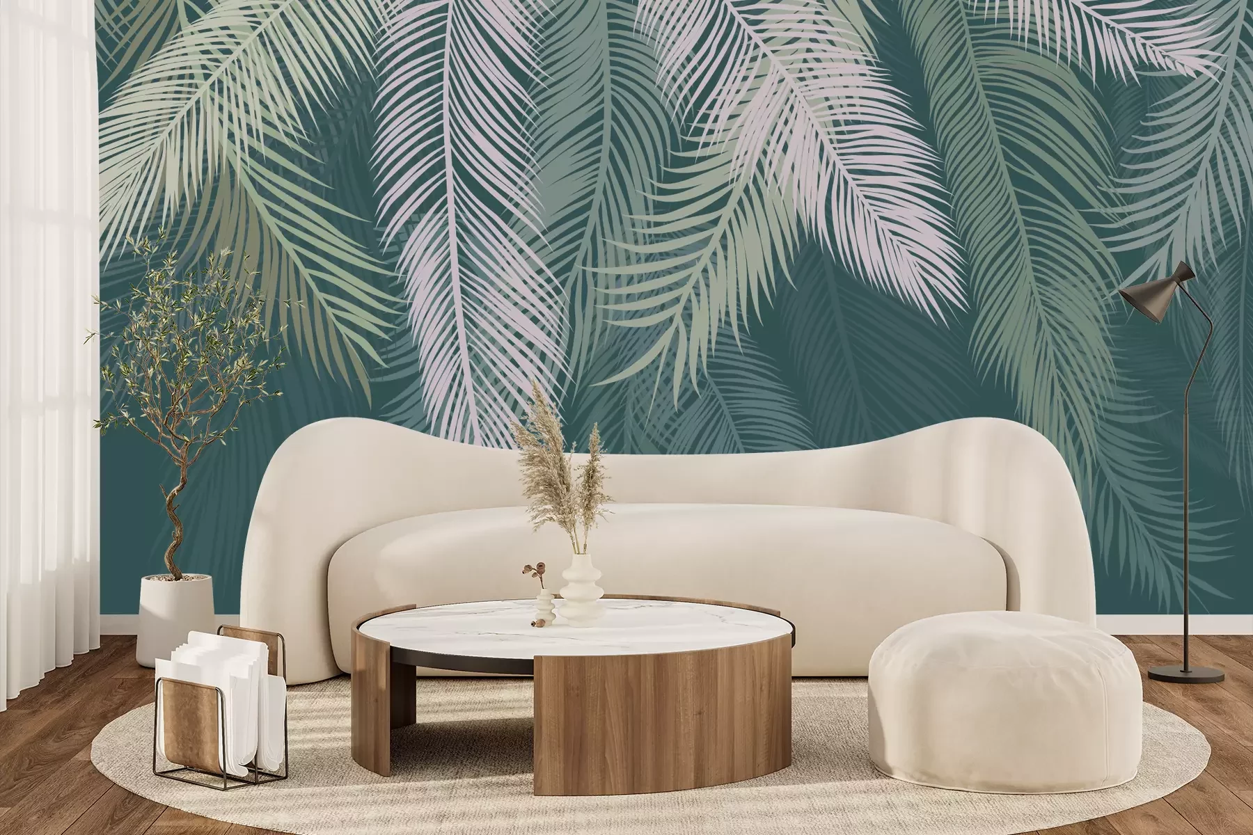 Das Material Premium+ besteht aus einer strukturierten Vinyl-Oberschicht und einem Trägermaterial (Vlies) mit einer Grammatur von 255 g/m², das kleine Unebenheiten der Wand zuverlässig kaschiert. Die feine Sandstruktur verleiht der Oberfläche eine luxuriöse Haptik, während das halbmatte Finish die Tiefe der Farben betont. Das Material ist dampfdurchlässig – so kann diese Fototapete auch in Küchen und Badezimmern eingesetzt werden. Die maximale Breite einer Tapetenbahn beträgt 100 cm. Bei größeren Abmessungen besteht die Fototapete aus mehreren gleich großen Bahnen. Der Kleber wird direkt auf die Wand aufgetragen, und die Fototapete wird auf Stoß angebracht, was für einen ästhetischen Effekt ohne sichtbare Fugen sorgt. Die Oberfläche ist pflegeleicht und kann bei Bedarf sanft mit einem feuchten Tuch abgewischt werden.